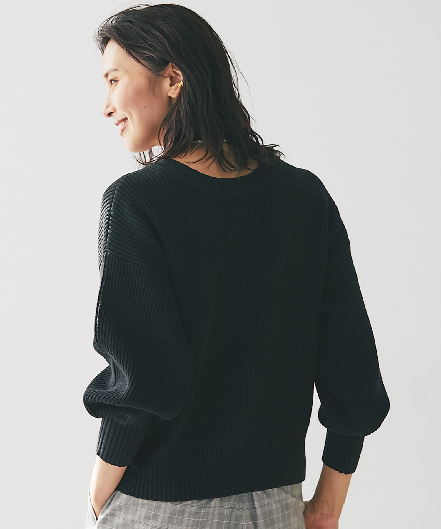 ボリュームをもたせた袖のシルエットがポイントで、身頃やネックラインはコンパクトに仕上げており、上品な印象で着て頂けます。