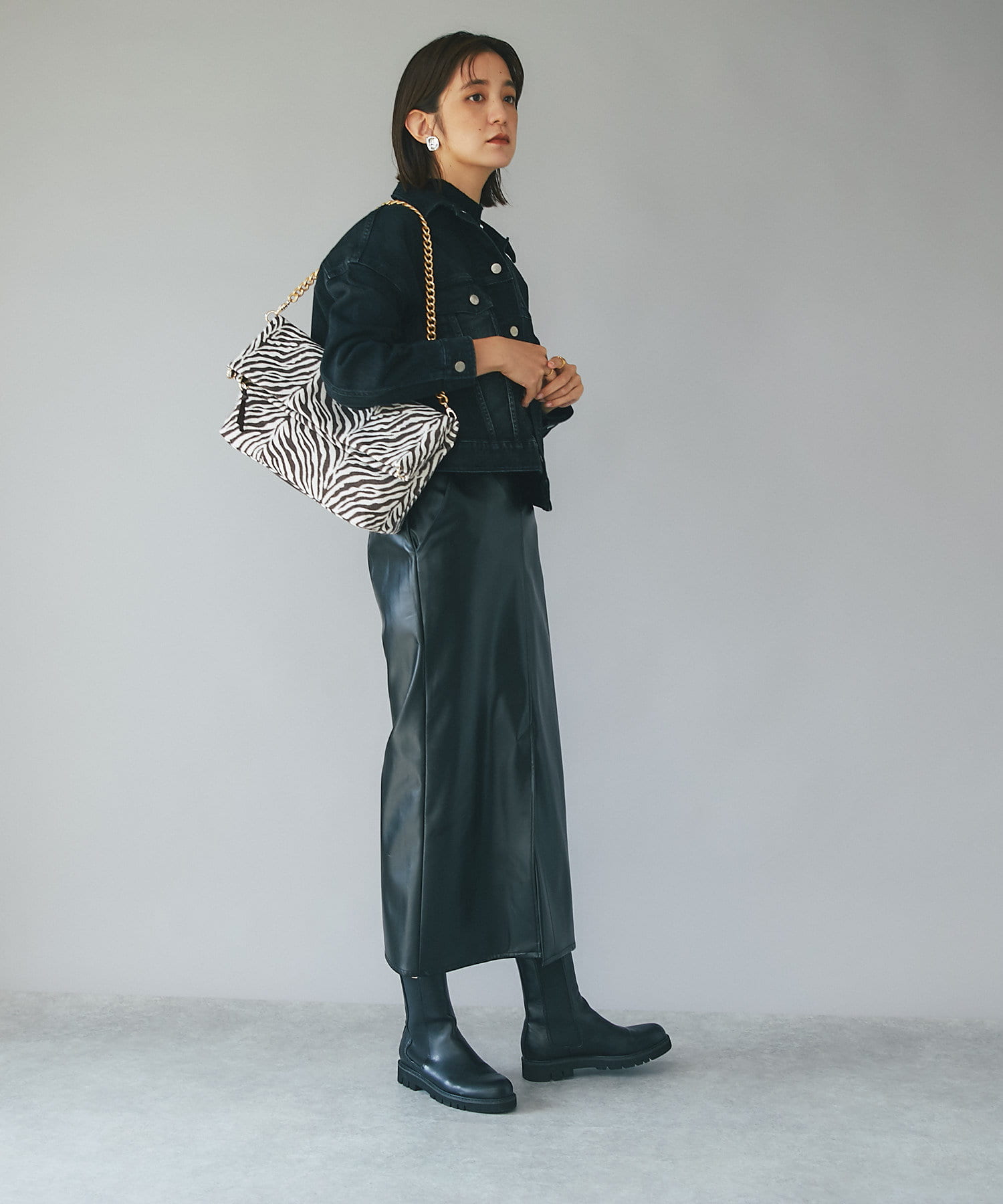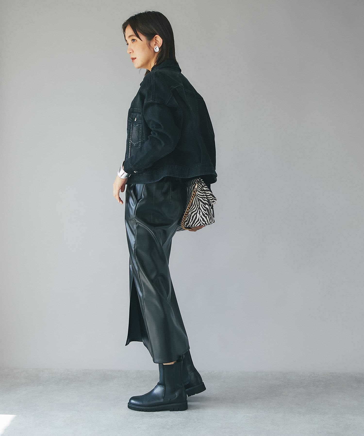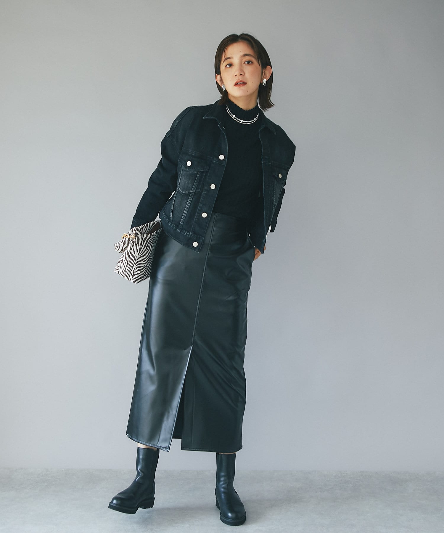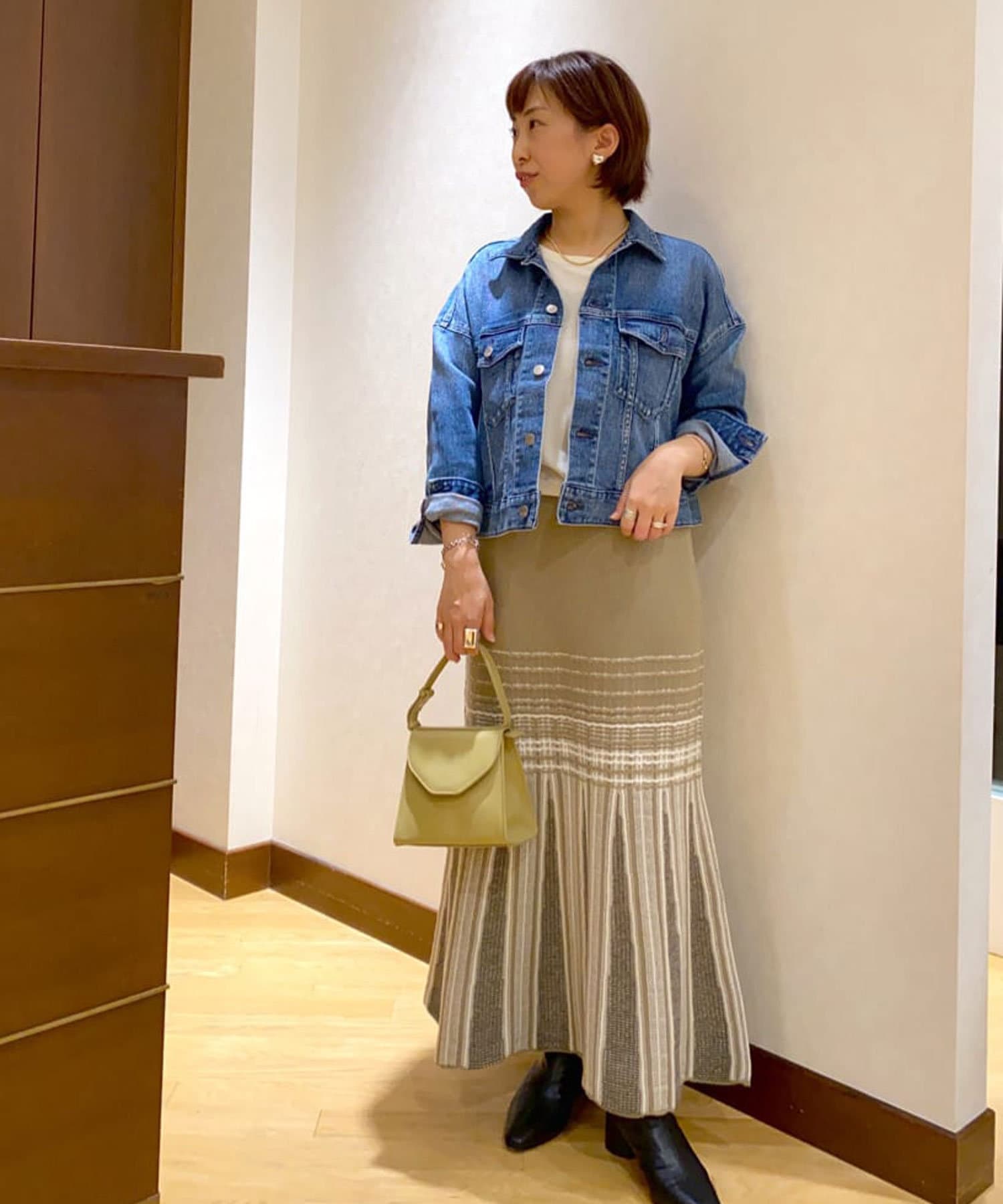 ミドル丈でボトムスを選ばずに着用して頂けます。
