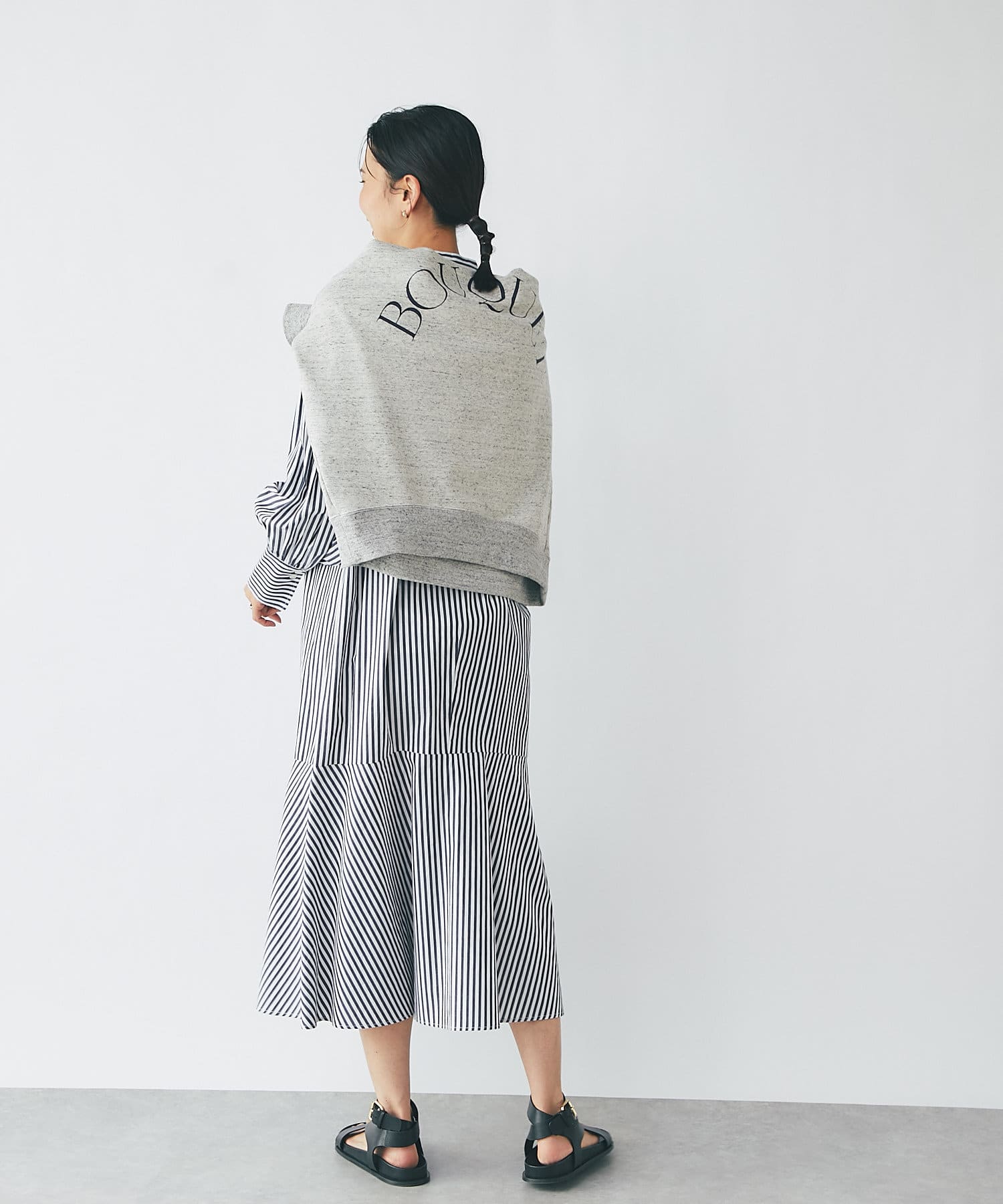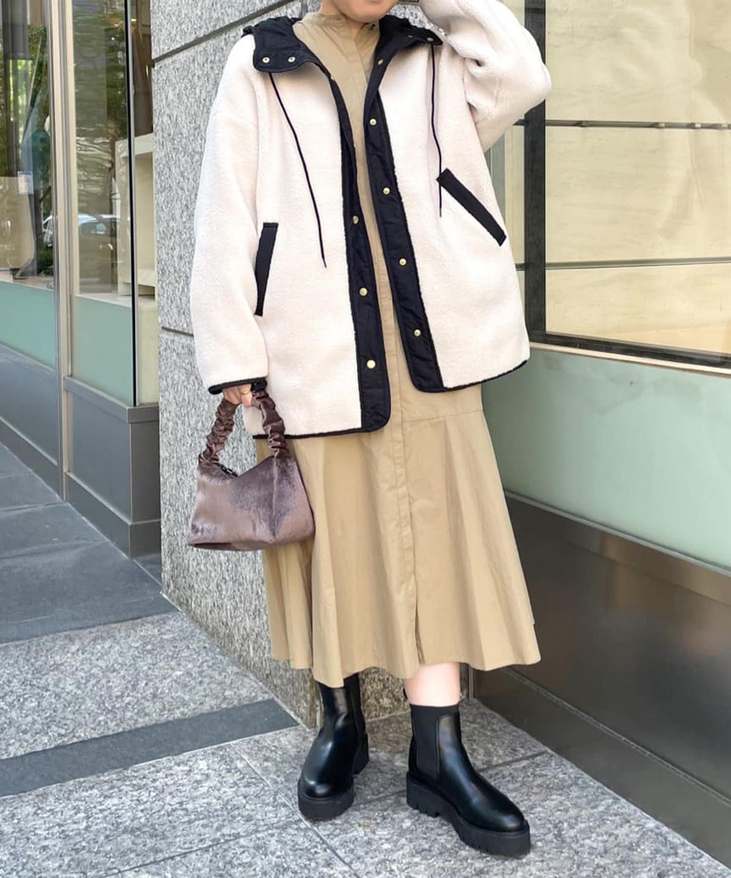 ゆったりとしたシルエットで安心感もあり、裾の切り替えはレイヤードにぴったりのデザイン性があります。