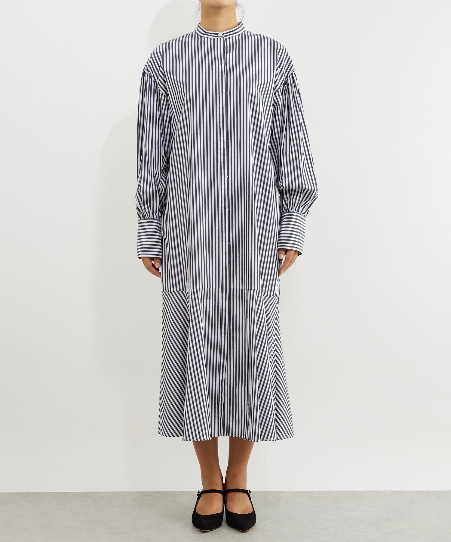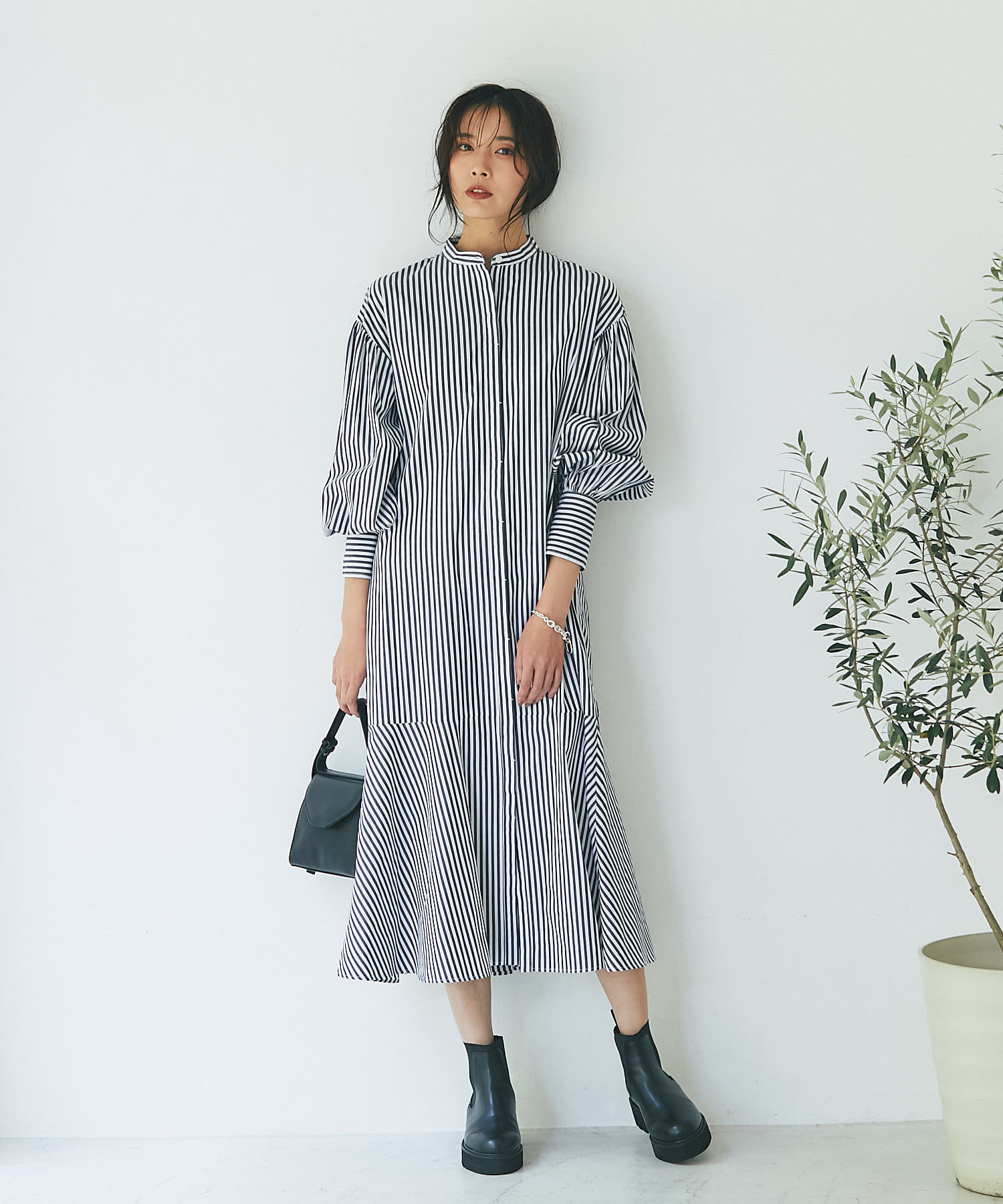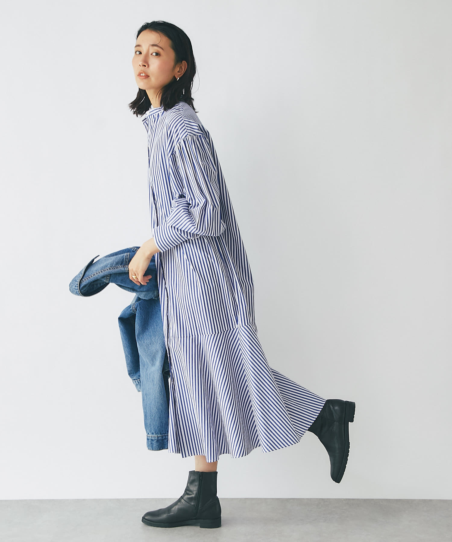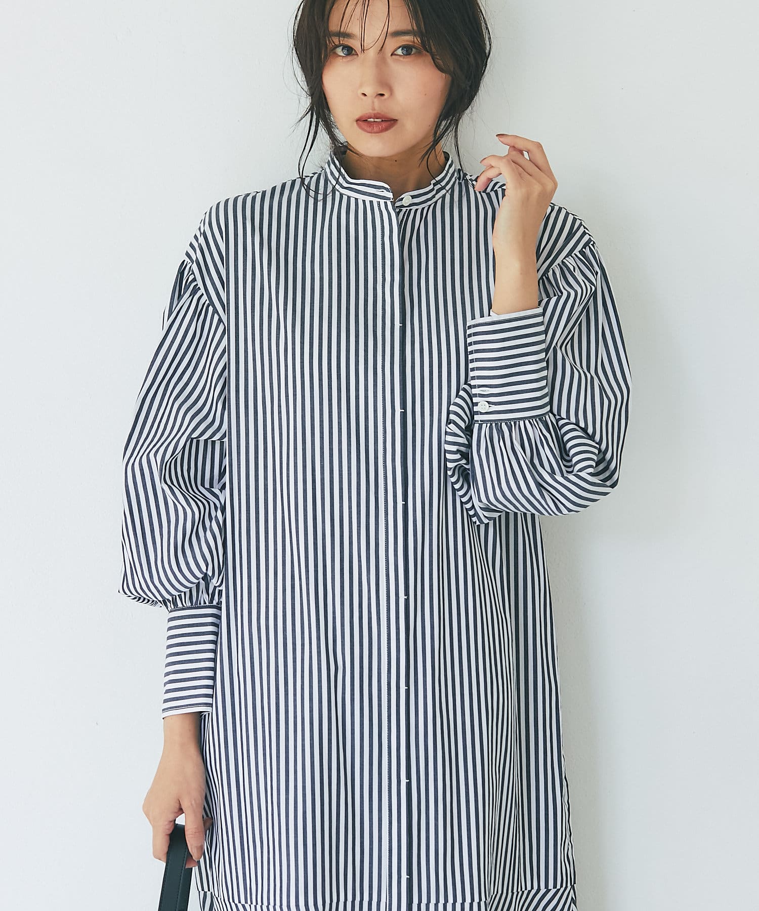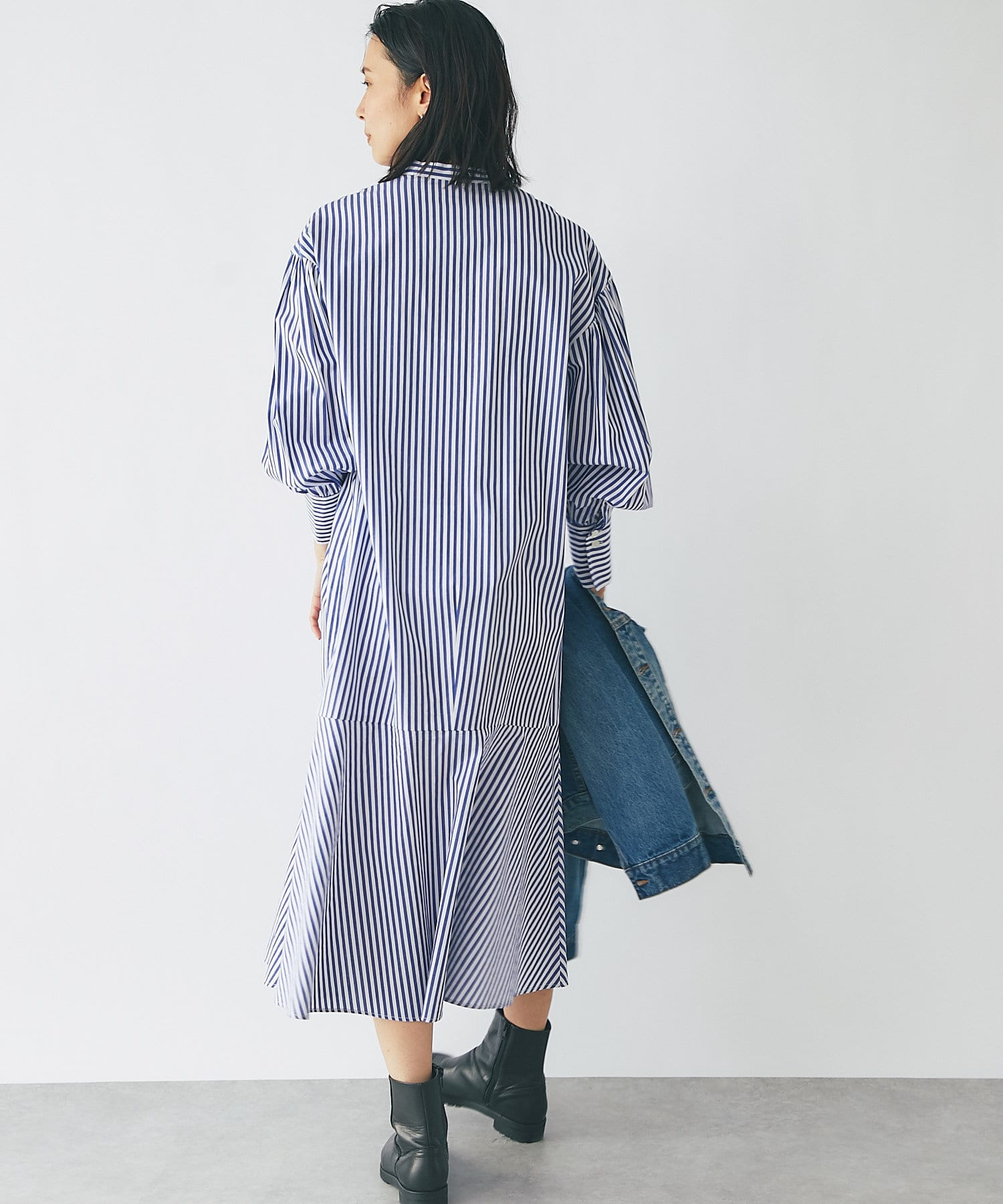 裾を切り替え、シルエットにこだわったシャツワンピース。