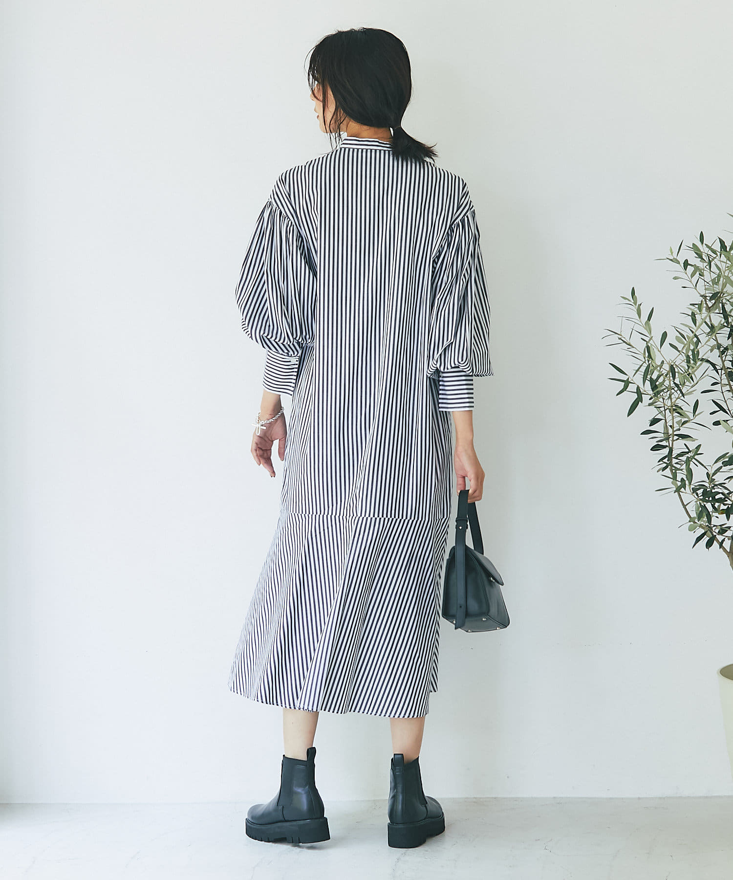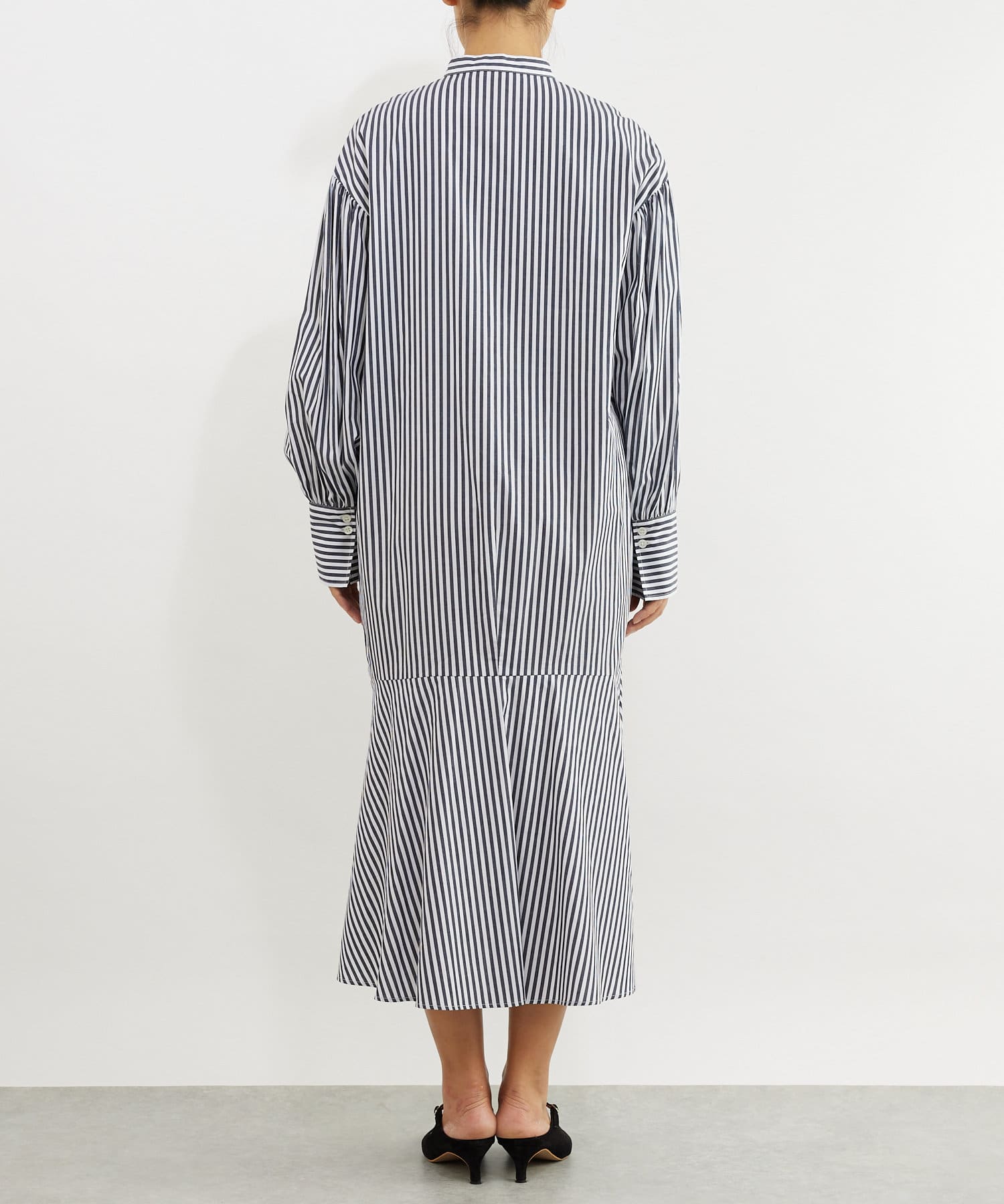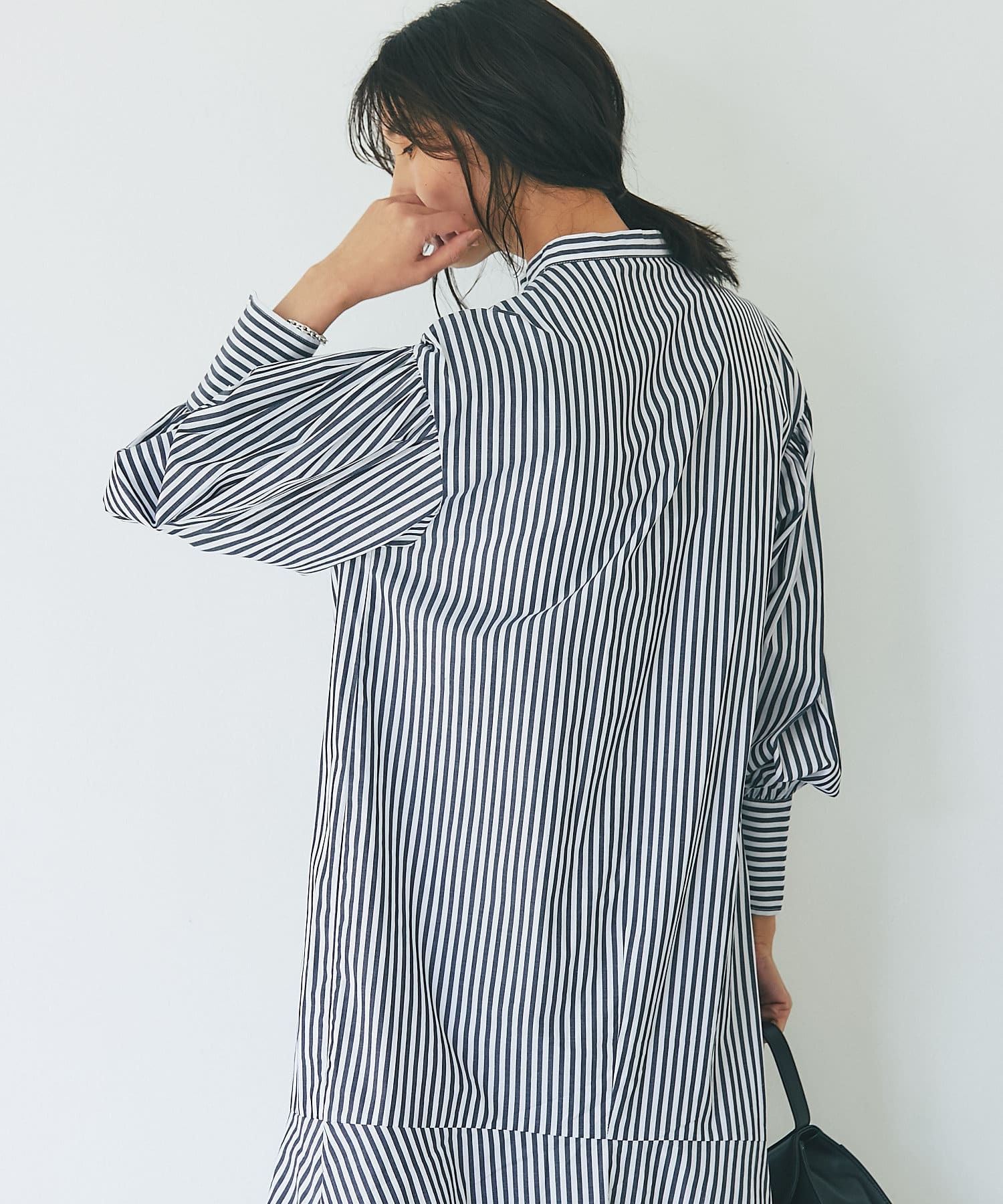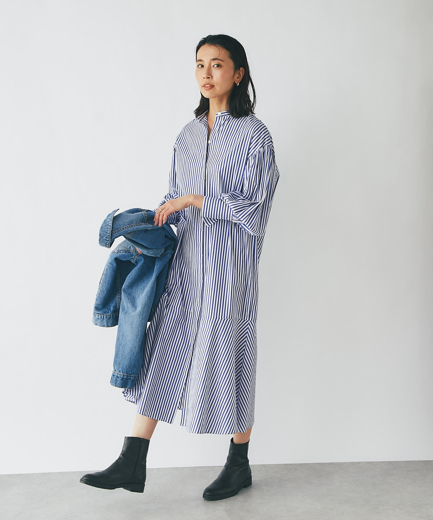 裾を切り替え、シルエットにこだわったシャツワンピース。