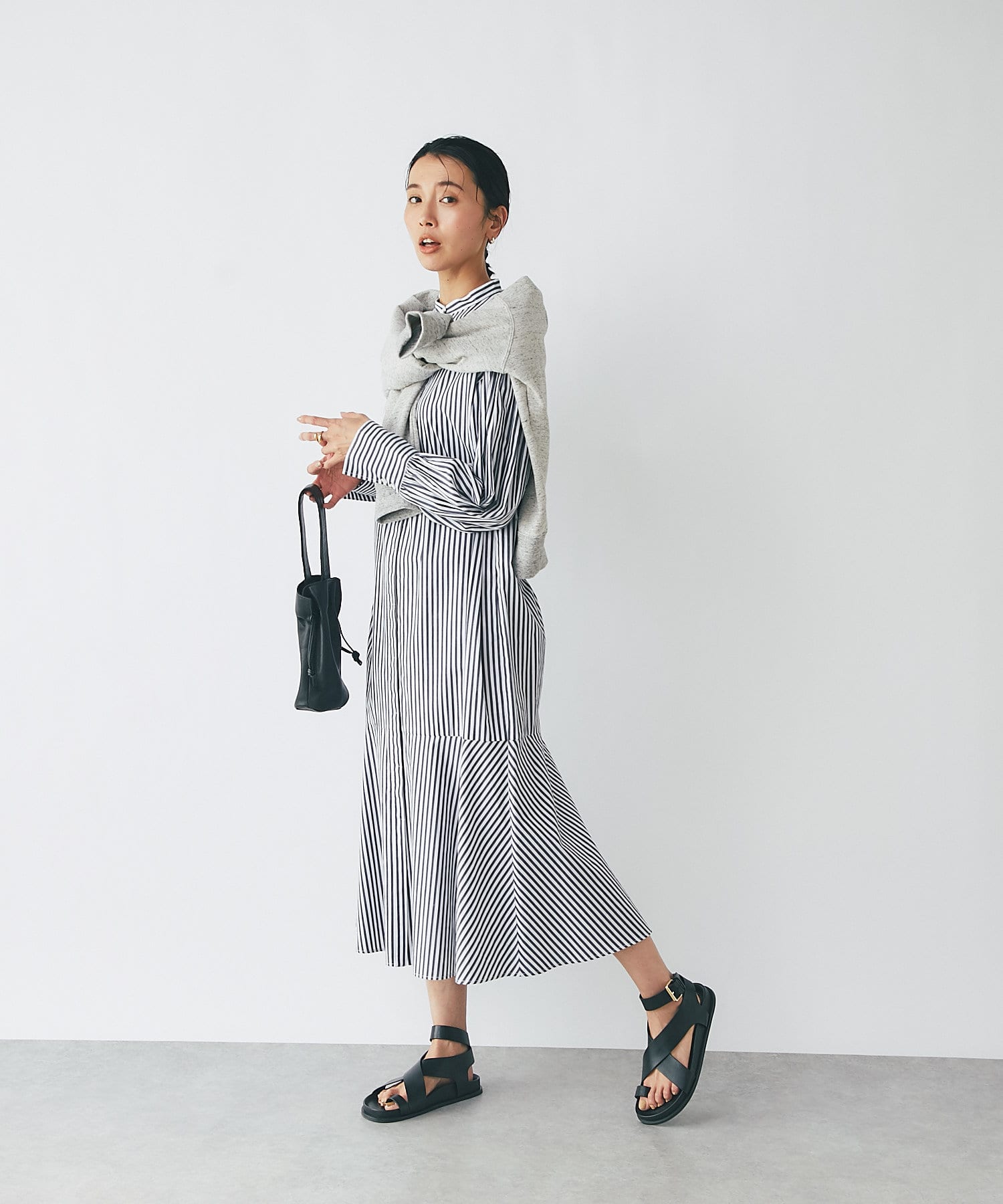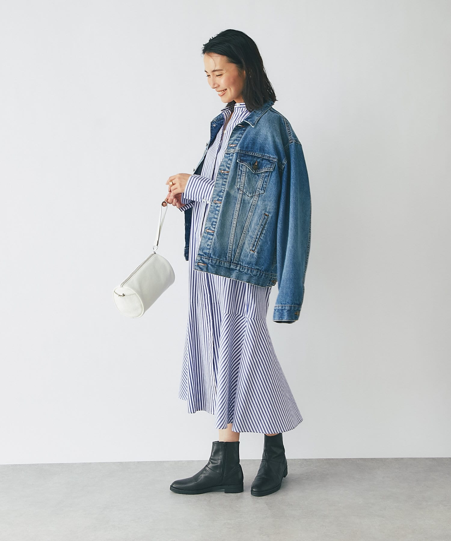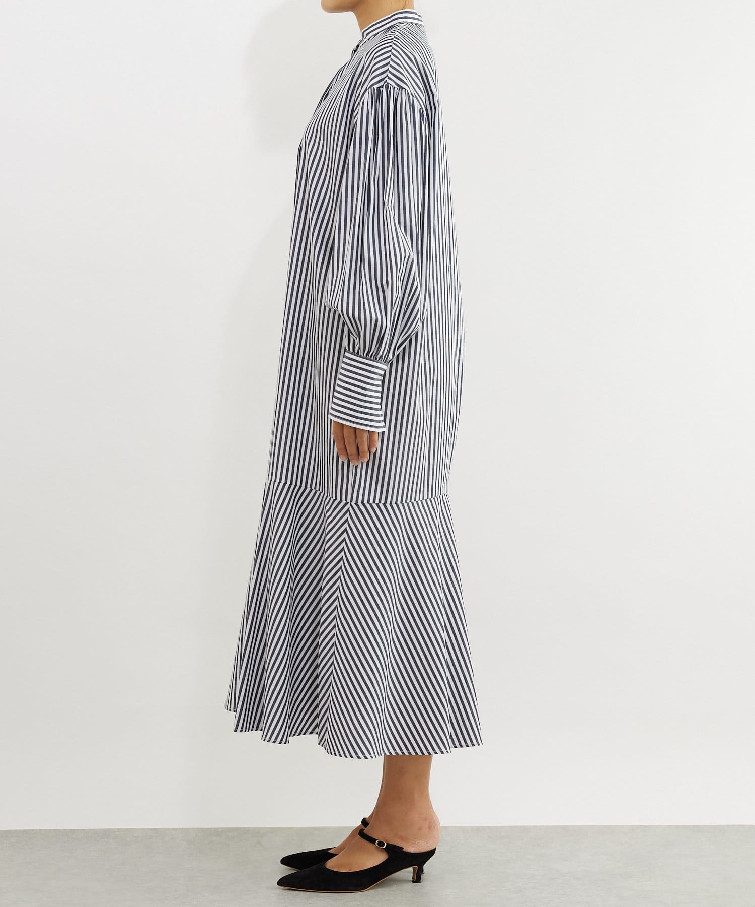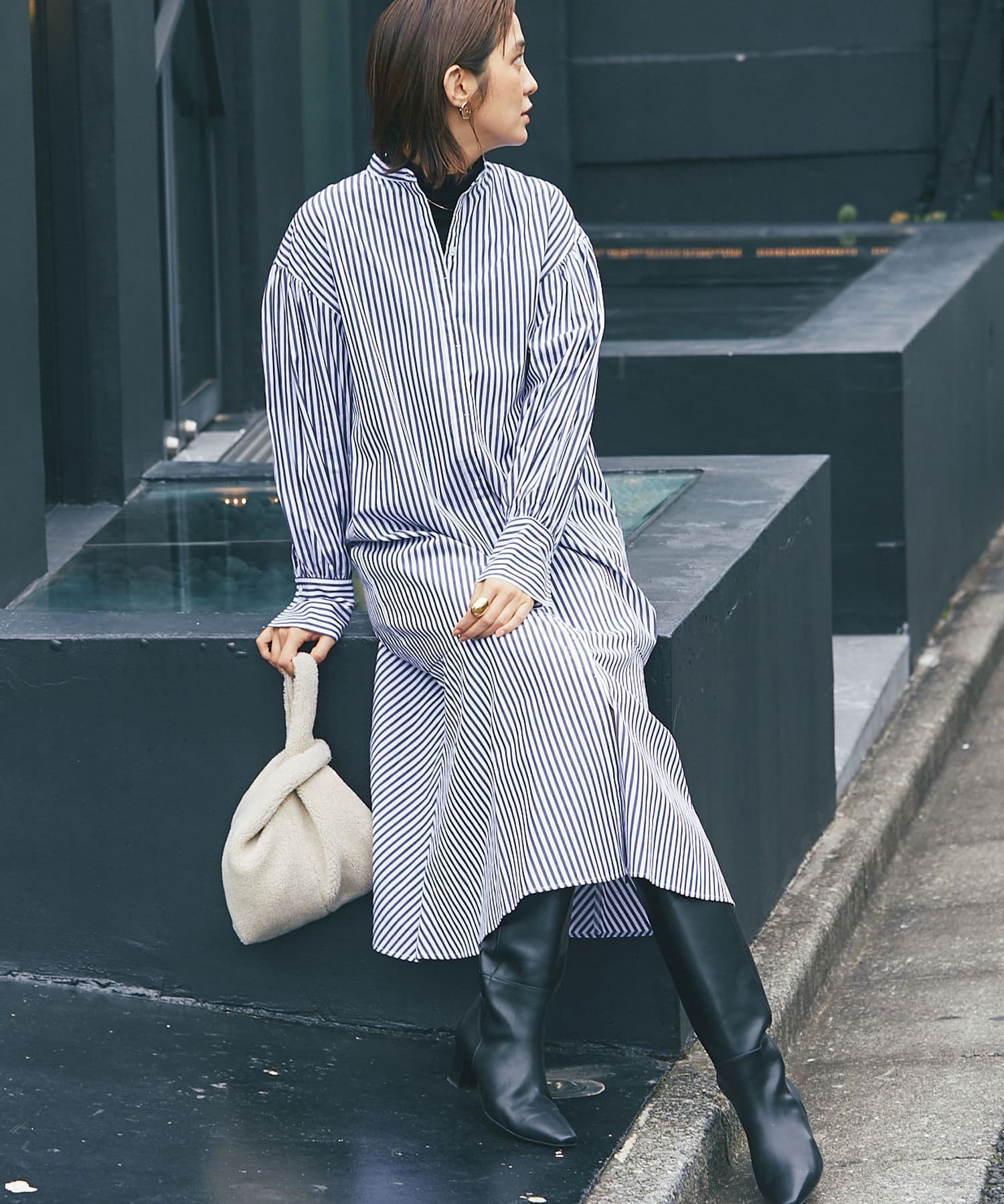 裾を切り替え、シルエットにこだわったシャツワンピース。