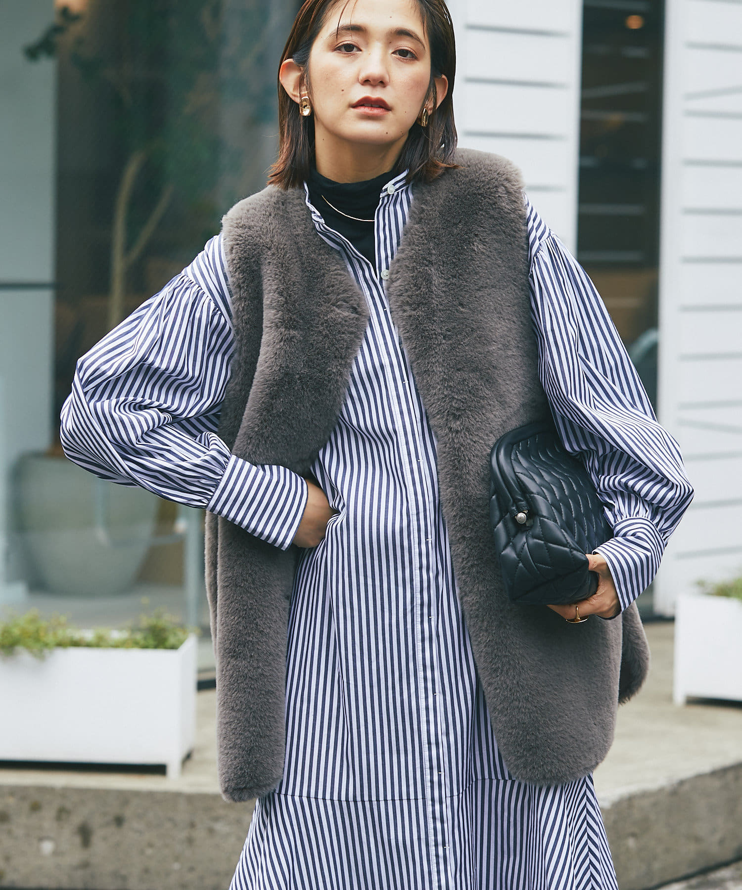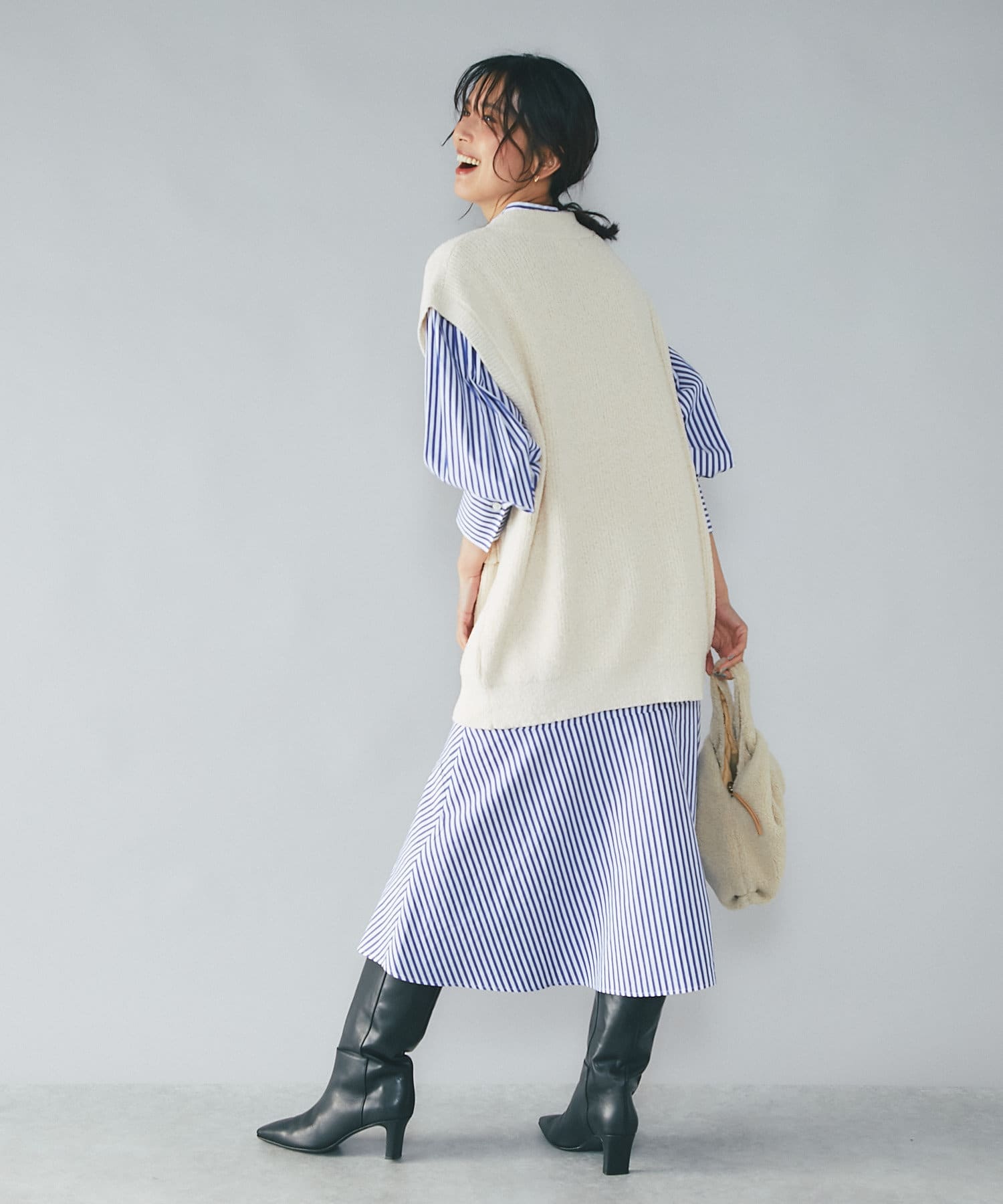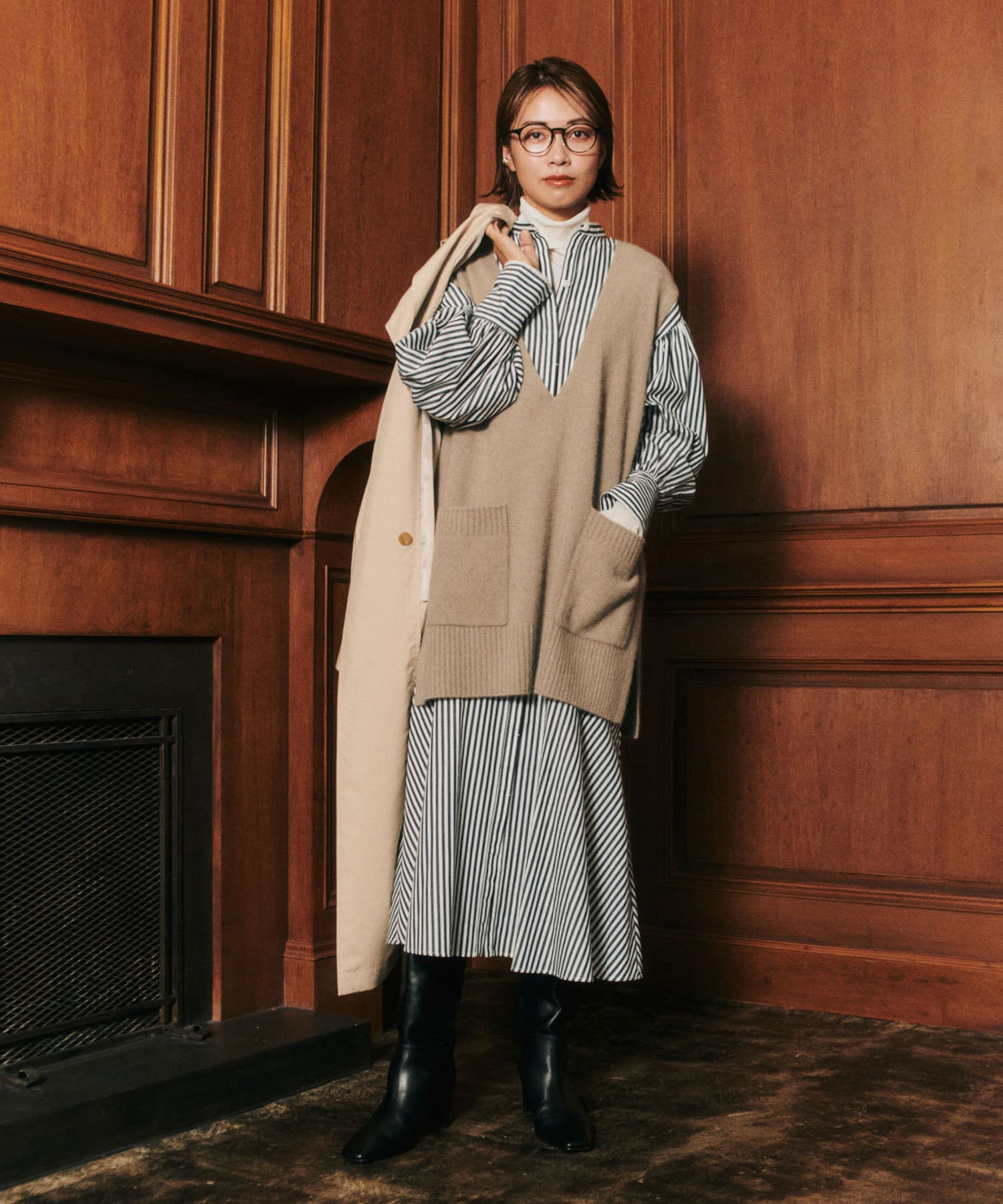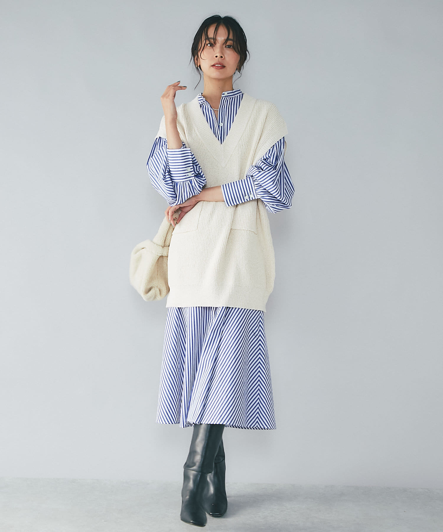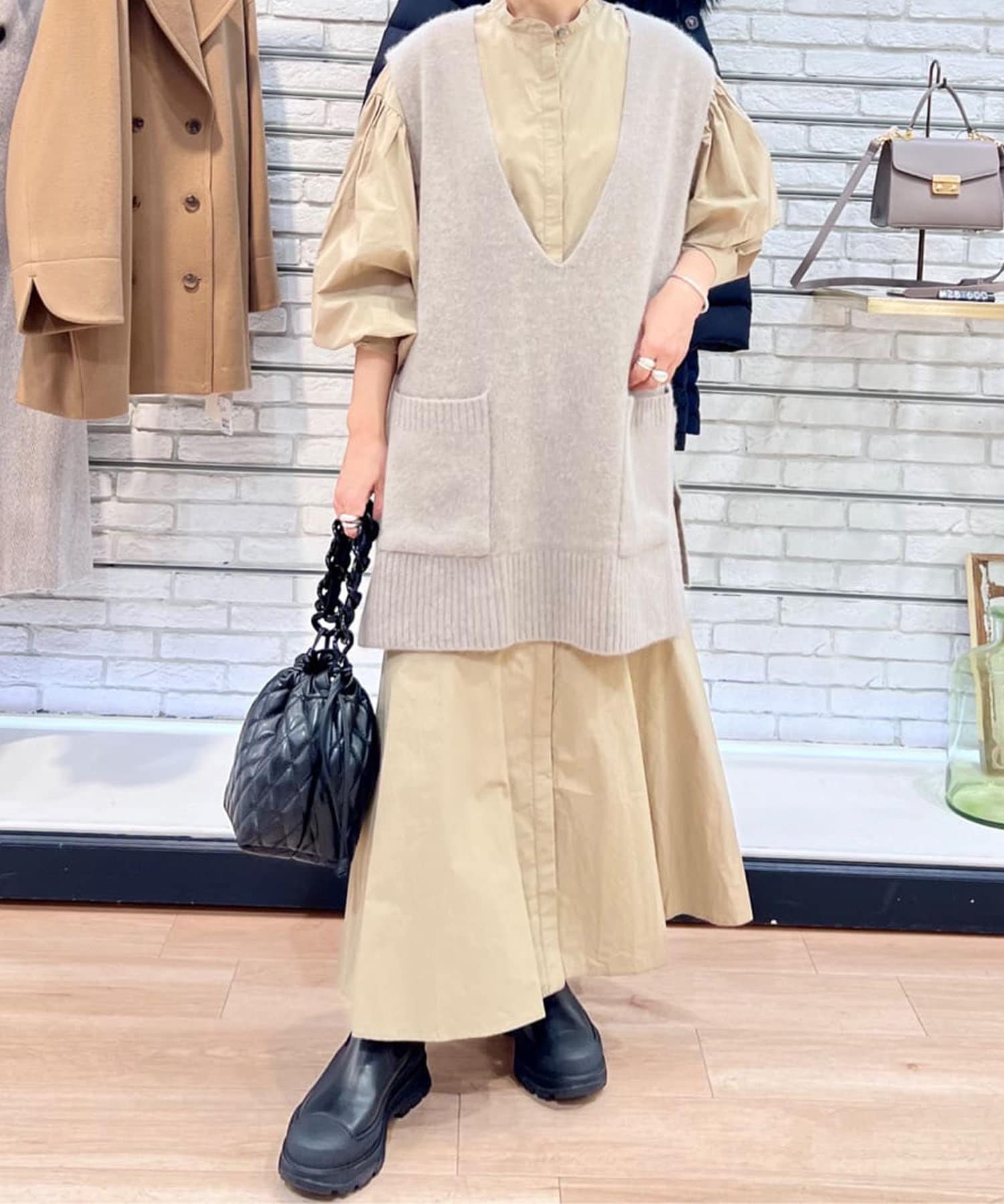 トレンドのベストやジレコーデのINスタイルにも相性がよく、トレンドムード漂う着こなしが楽しめます。