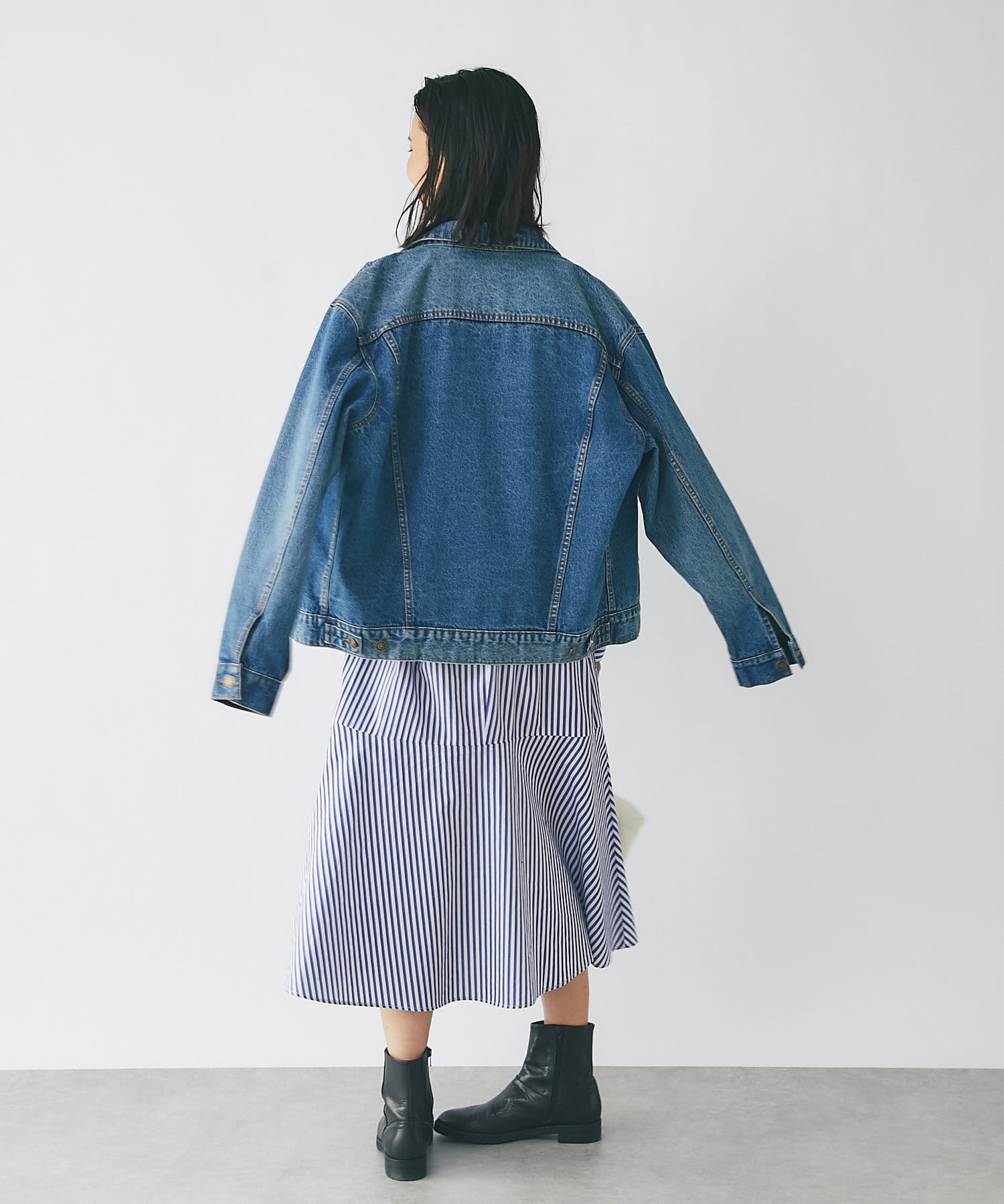 また、裾で切替ているため、スッキリとした印象でお召し頂けます。大きすぎない程よいゆとりですので、普通体型の方であれば問題なく着用して頂けます。
