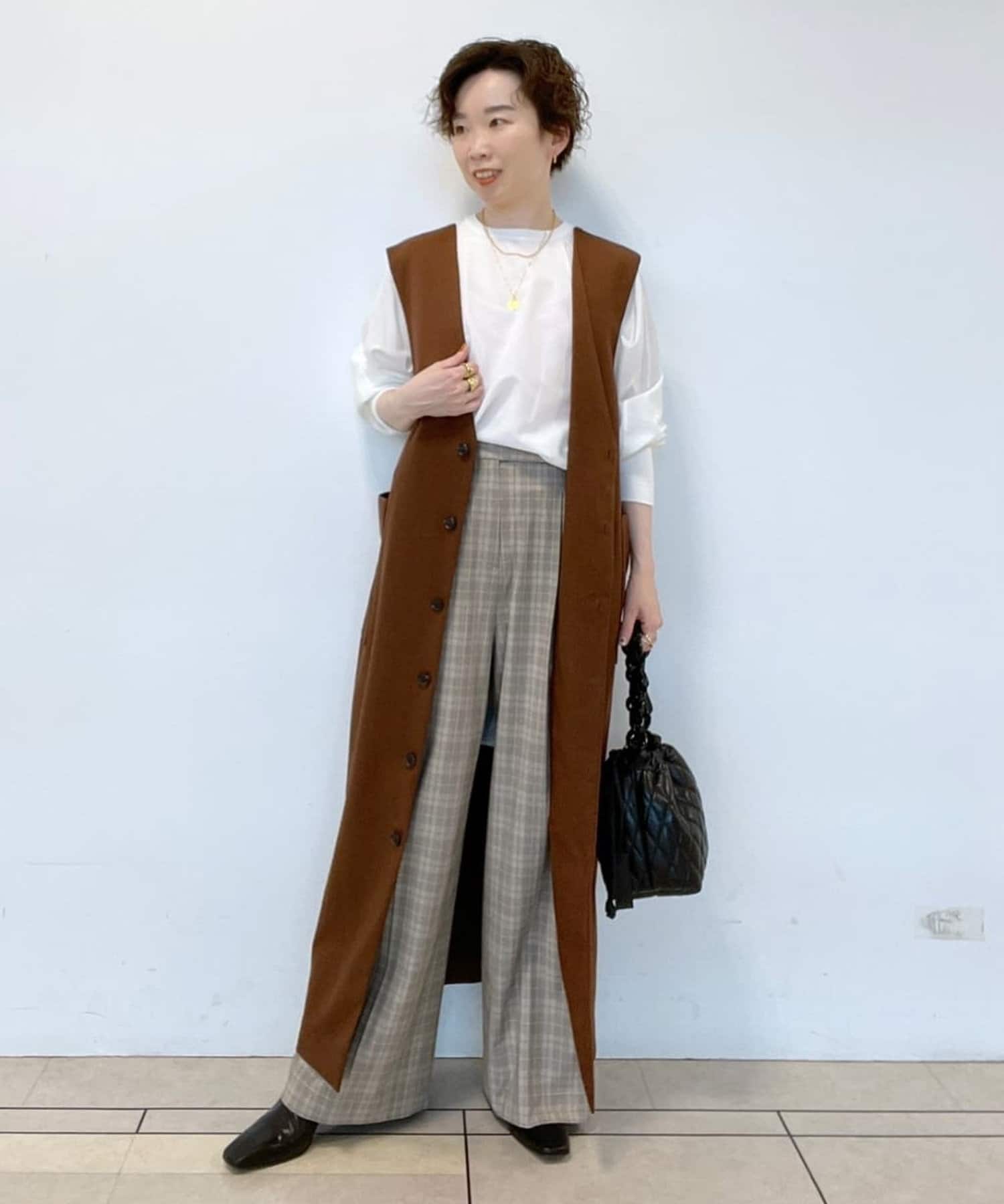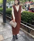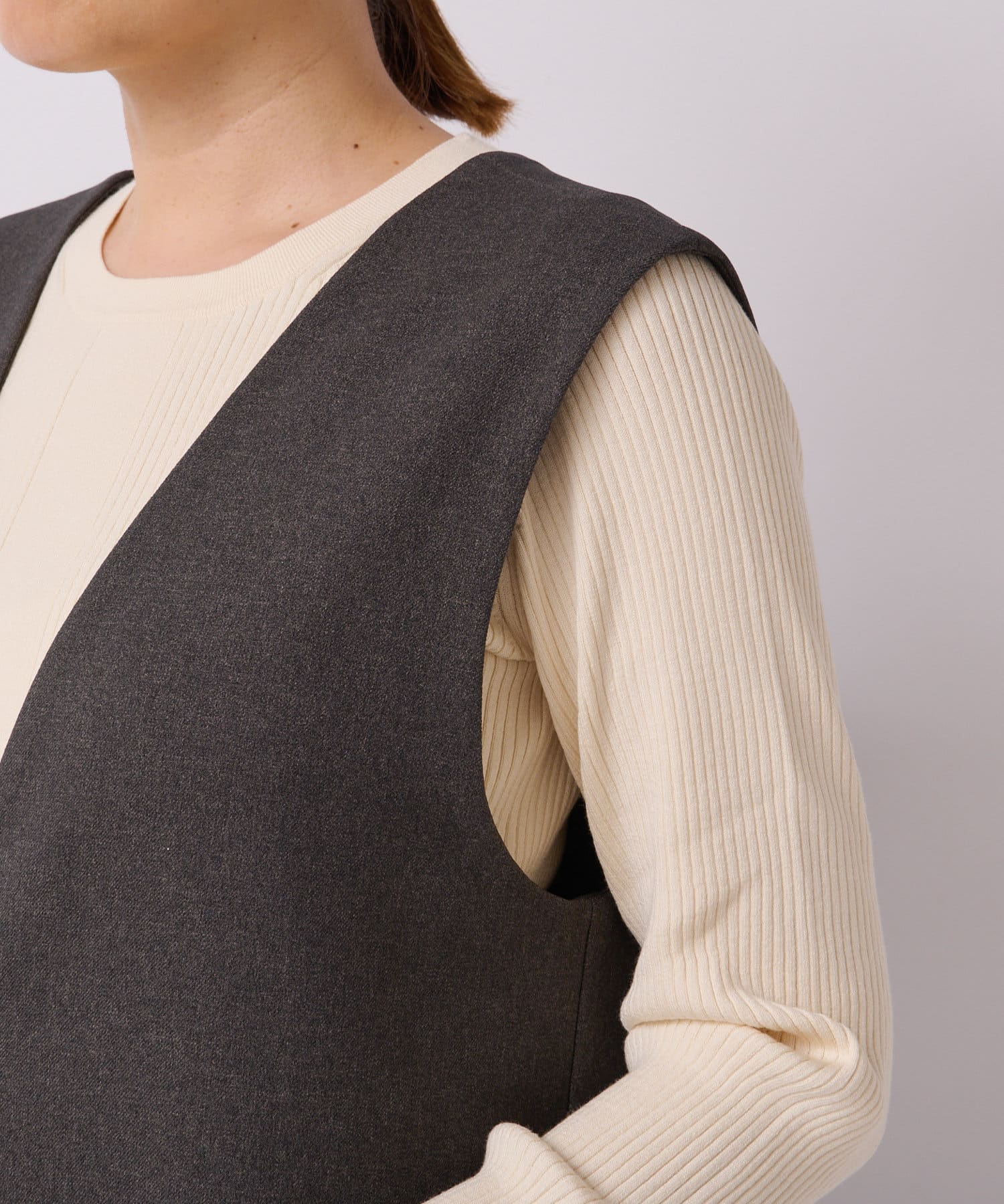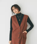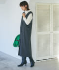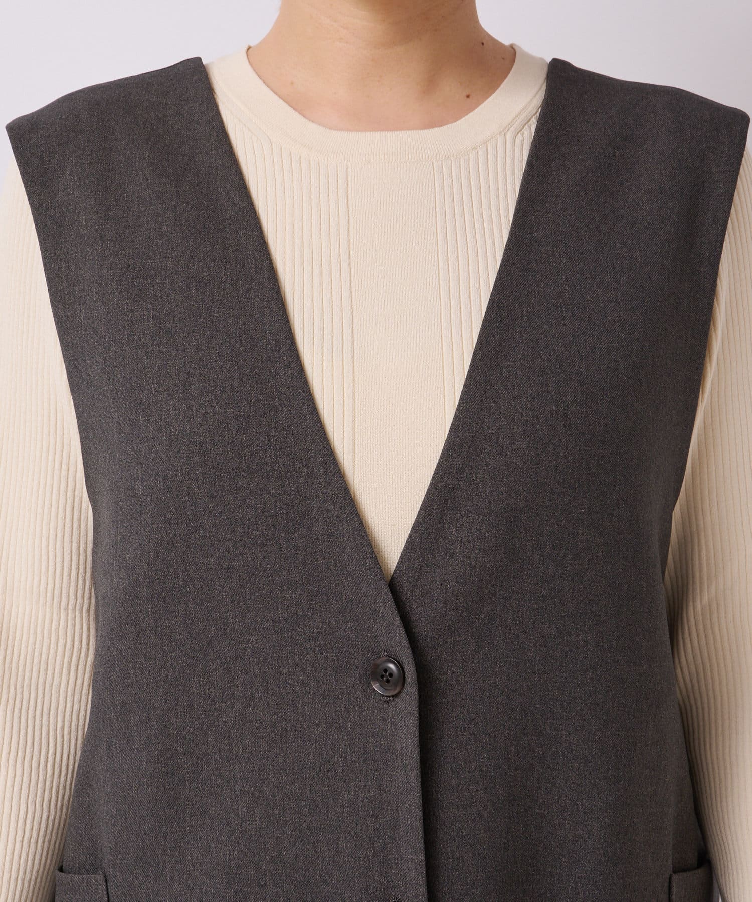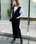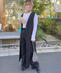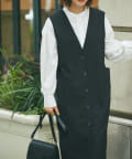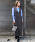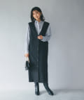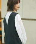 また、ロンTやカジュアルニットなどで合わせると普段使いもしやすく、デザイン性のあるインナーにプラスし、ジレとしても着こなしもオススメです。