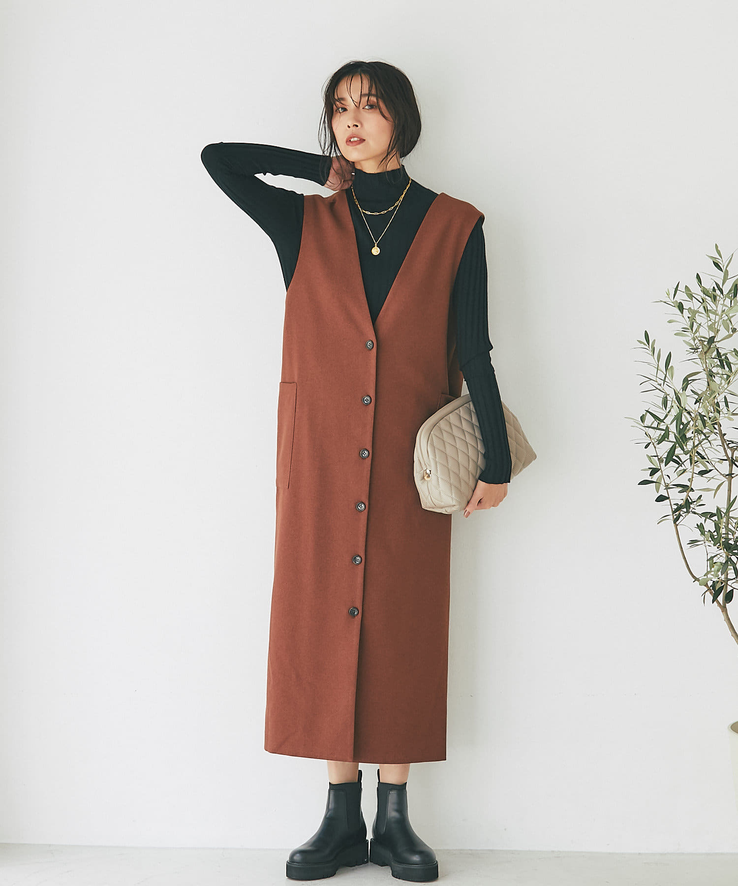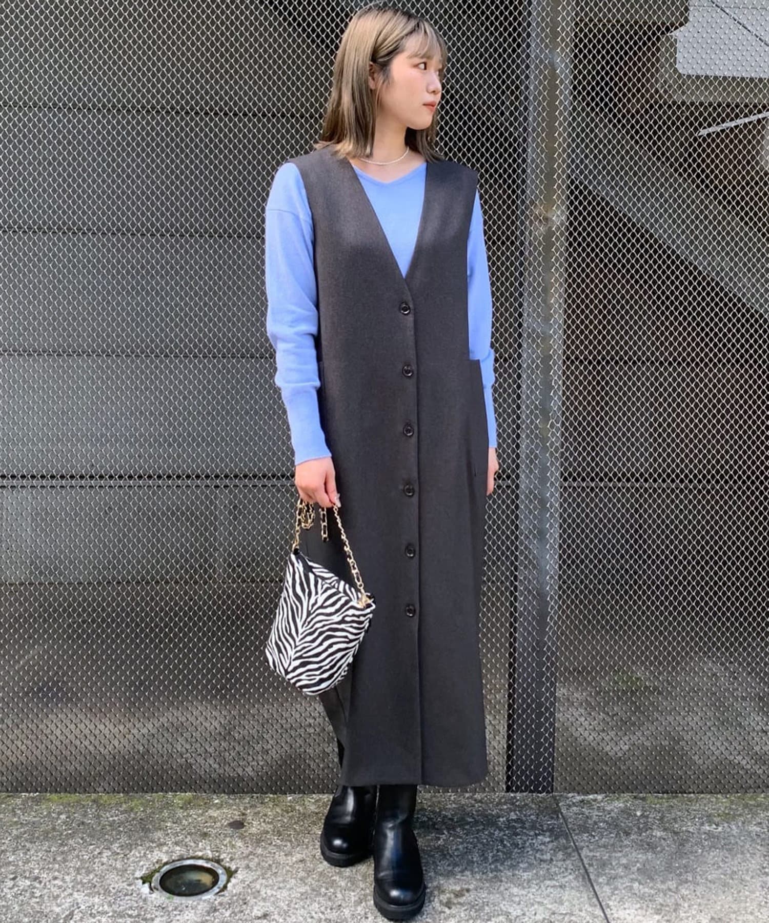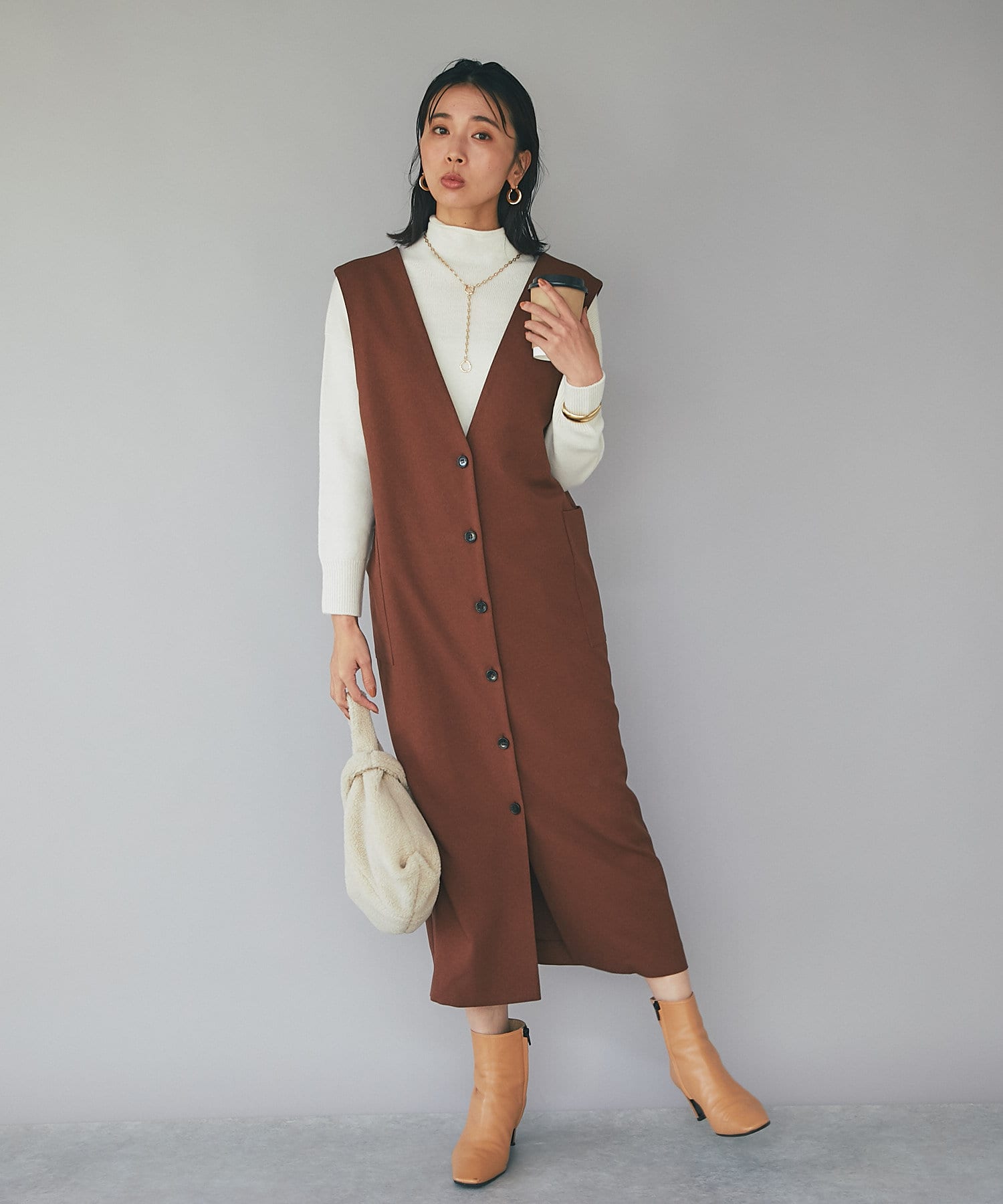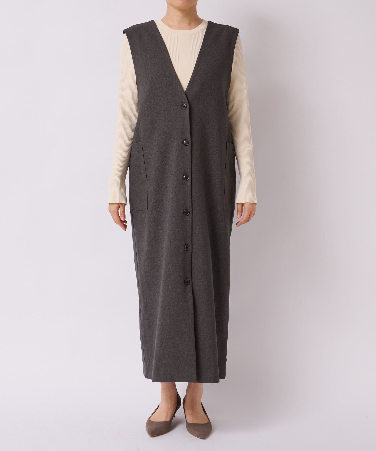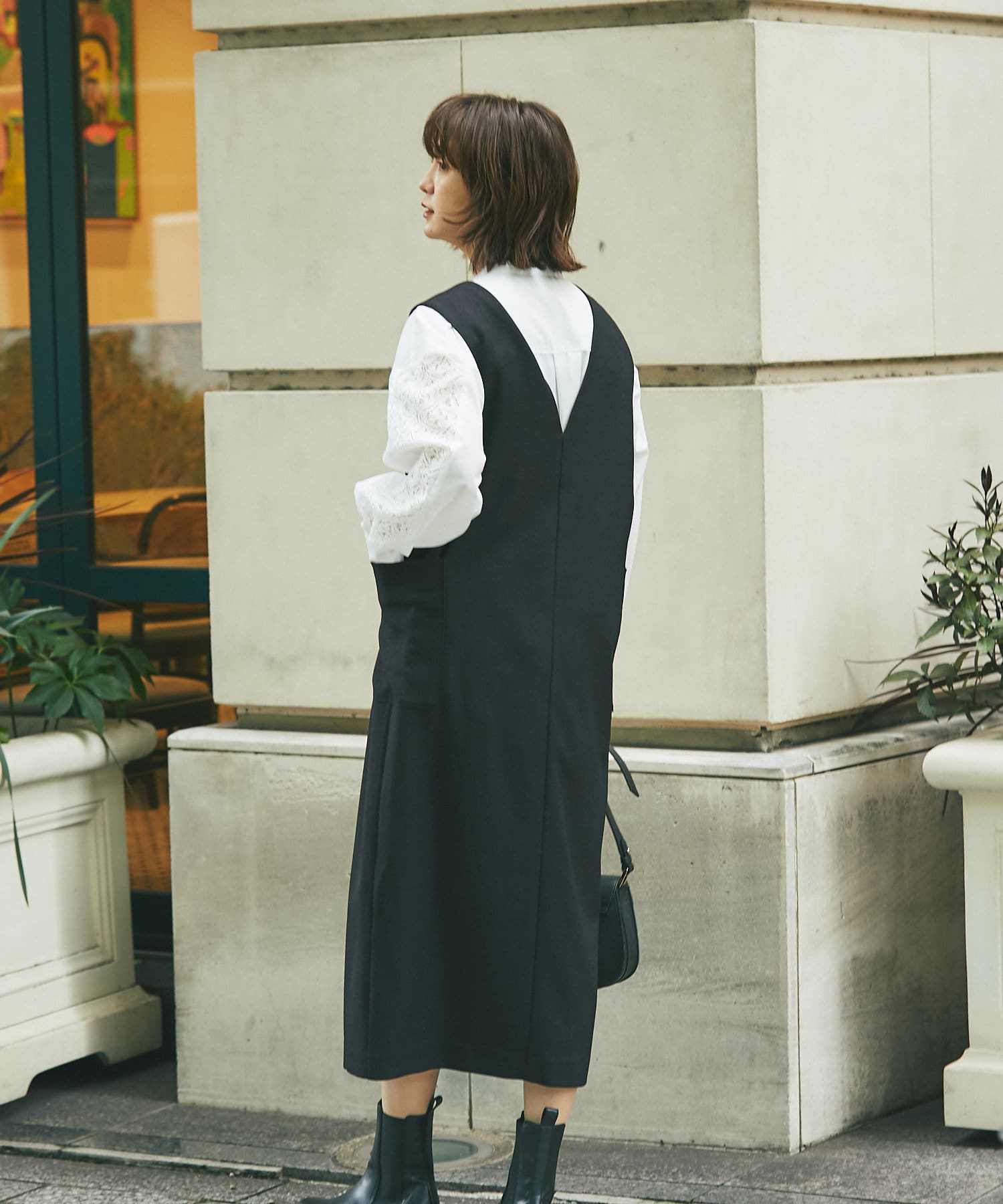 また、マルチWAYになっておりますので、前後で着用できるのはもちろん、今季らしいジレでのコーディネートもオススメ。