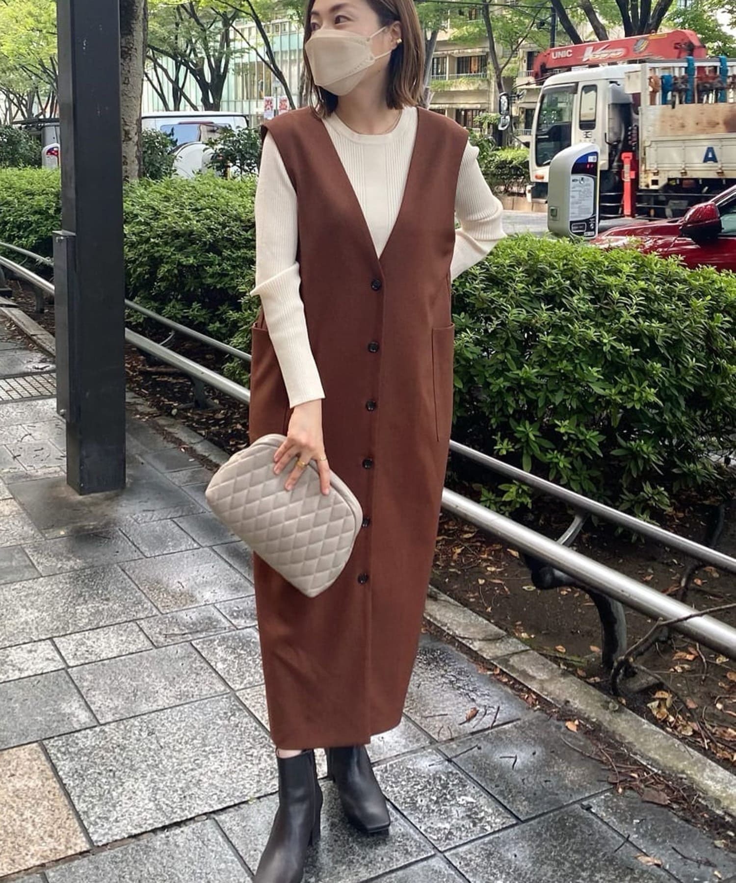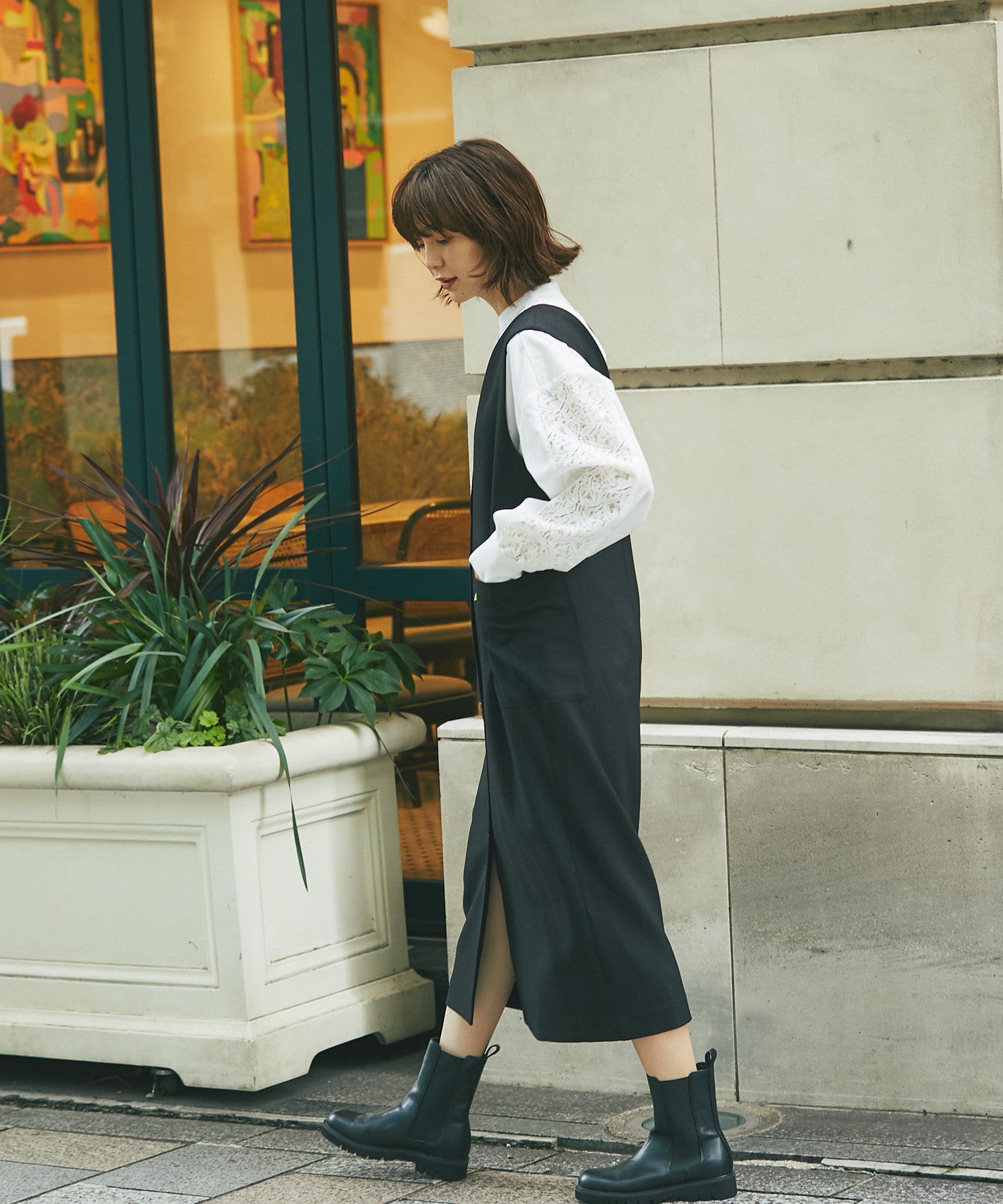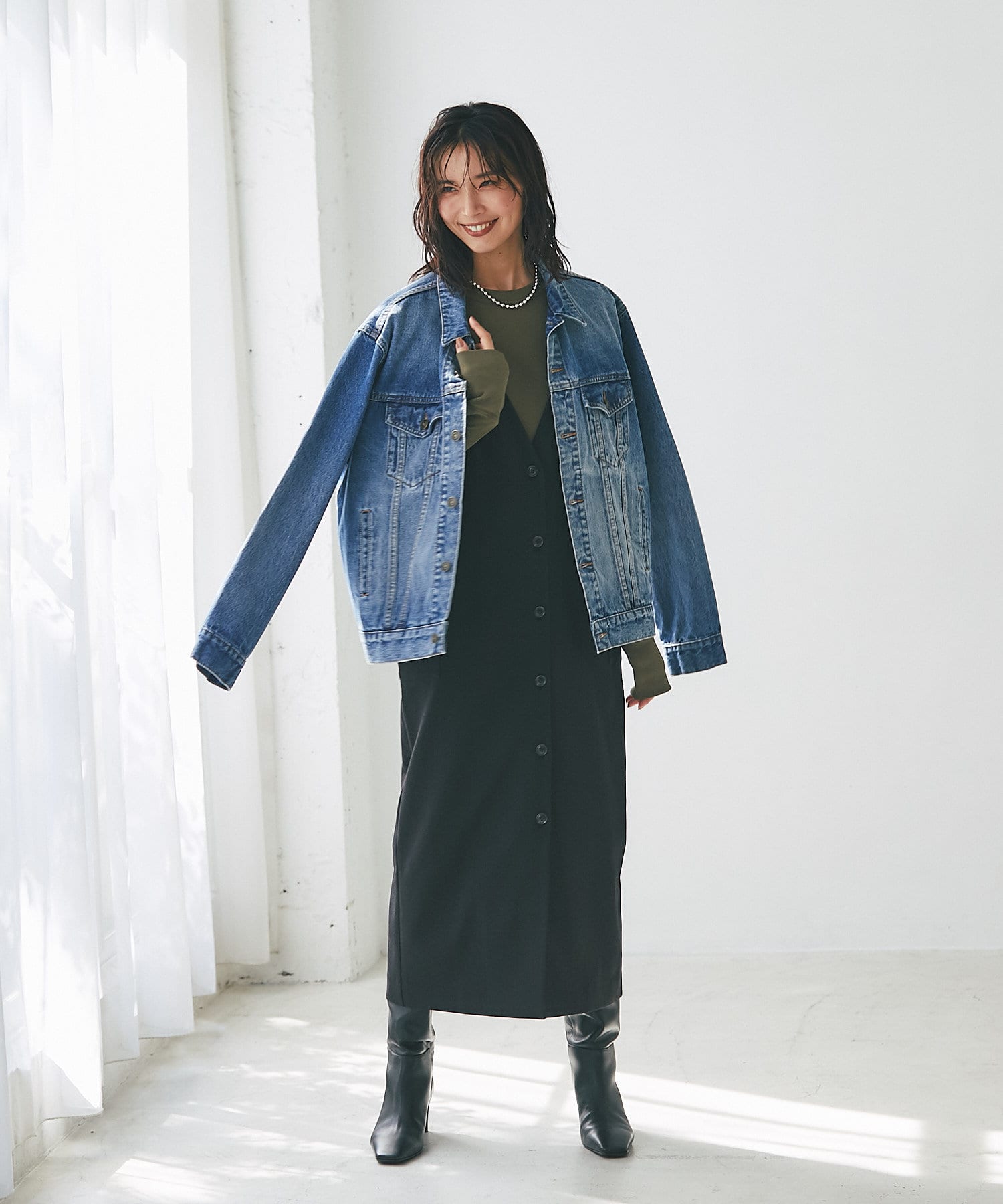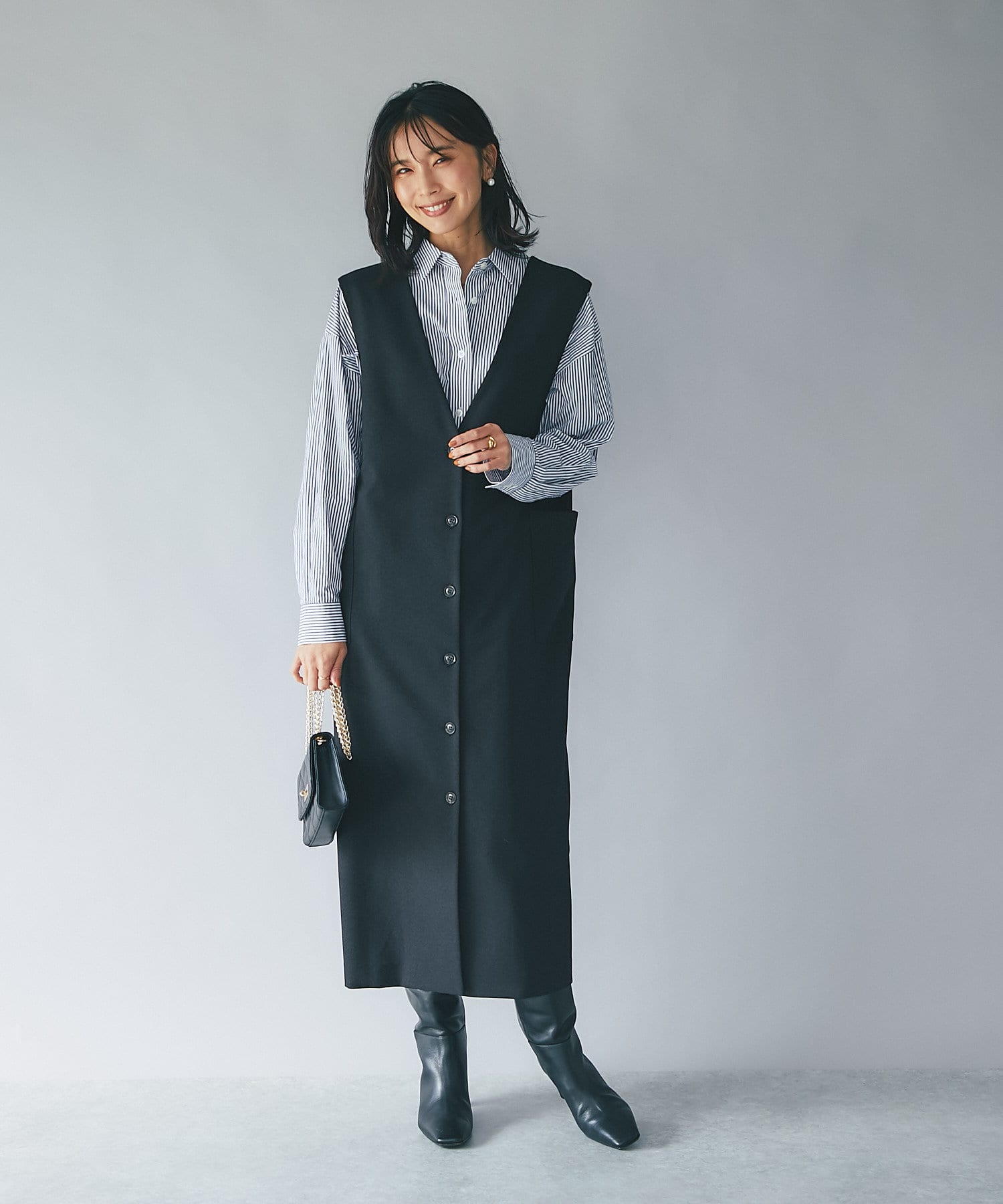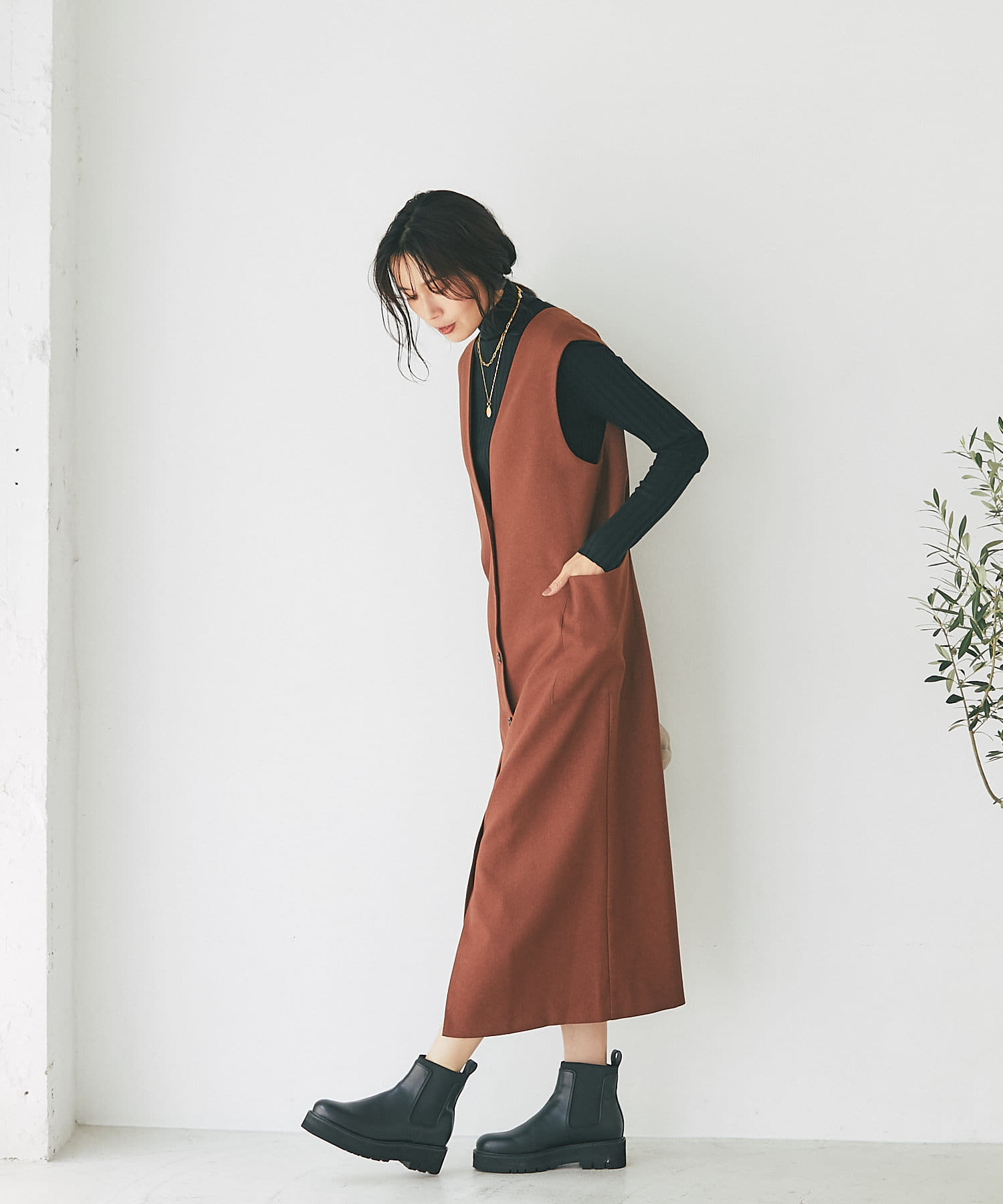また、マルチWAYになっておりますので、前後で着用できるのはもちろん、今季らしいジレでのコーディネートもオススメ。
