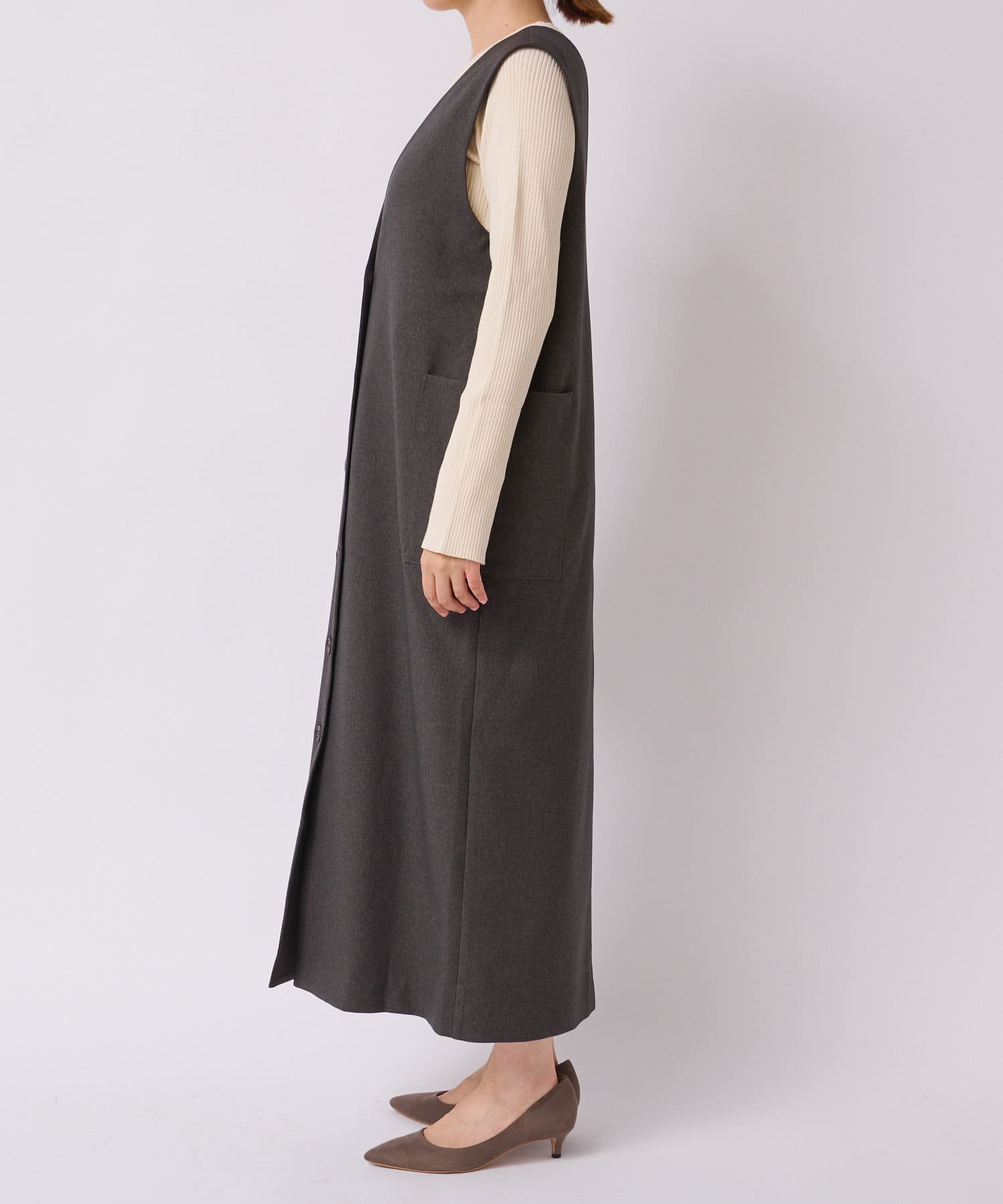 サイドにはポケットもございますので一枚でオシャレ見えするデザインとなっております。