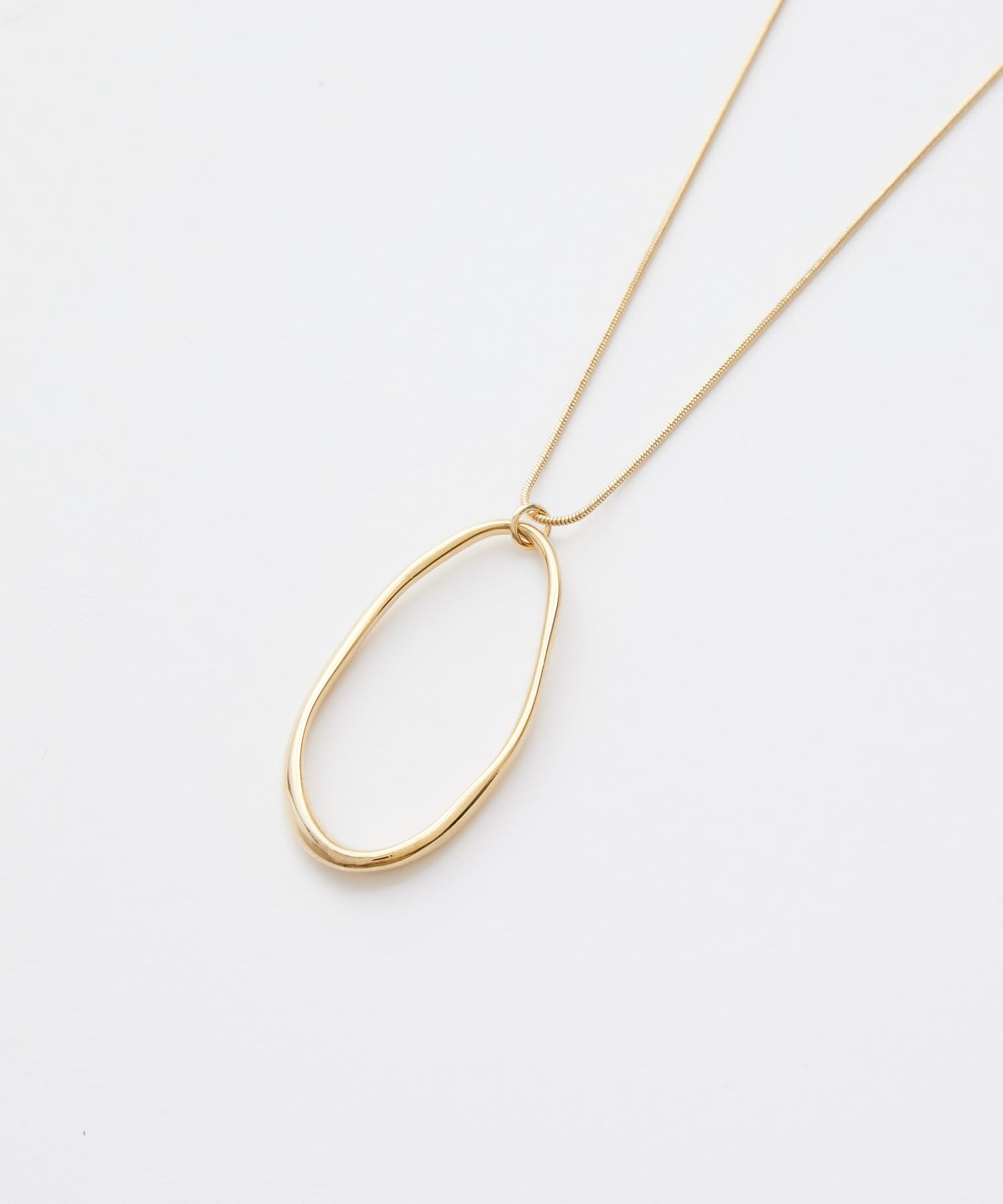 大きめなオーバル型モチーフがスタイリングのポイントになるネックレス。