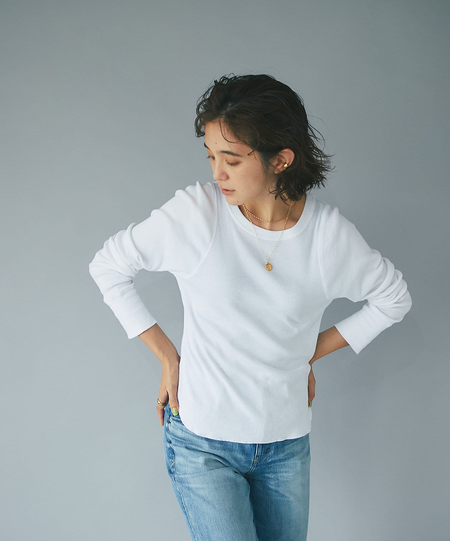 存在感はありつつも、トップスを選ばないデザイン。シーズンレスでお使いいただけるアイテムです。