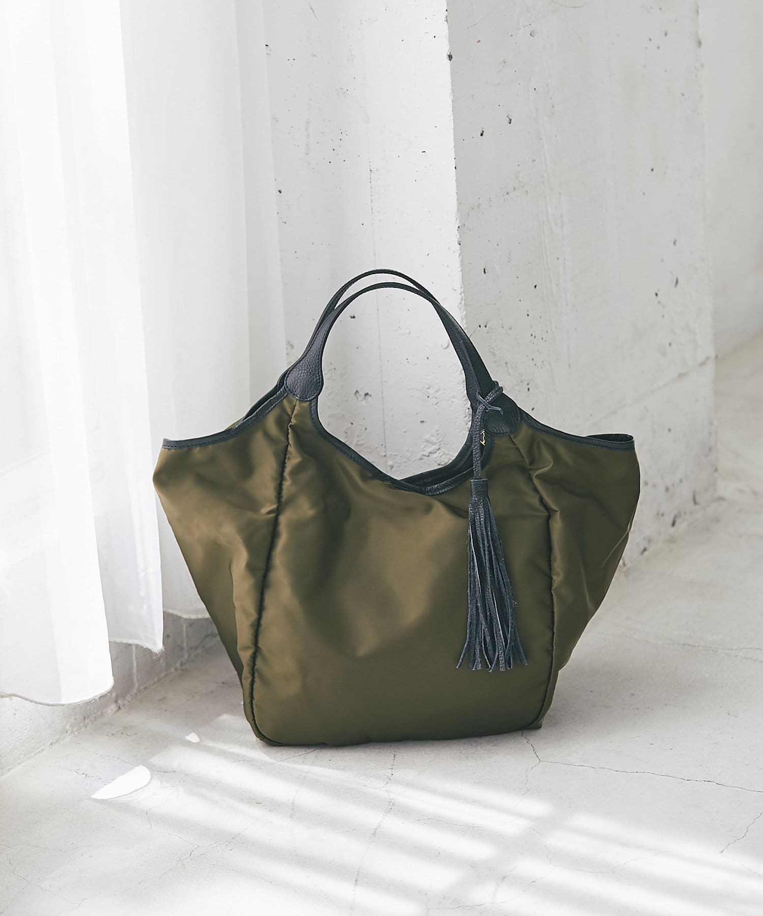 ナイロン素材で気兼ねなく持てるトートバッグ。