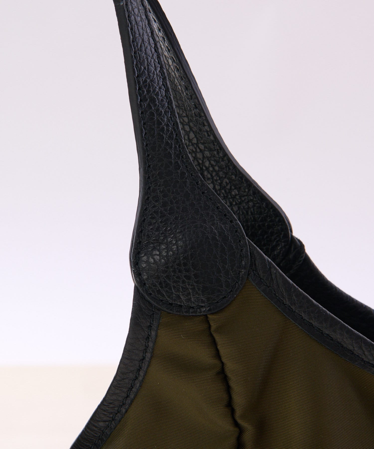 持ち手はレザーになっており、高級感あり。取り出し口にはマグネット付きで安心感も抜群。