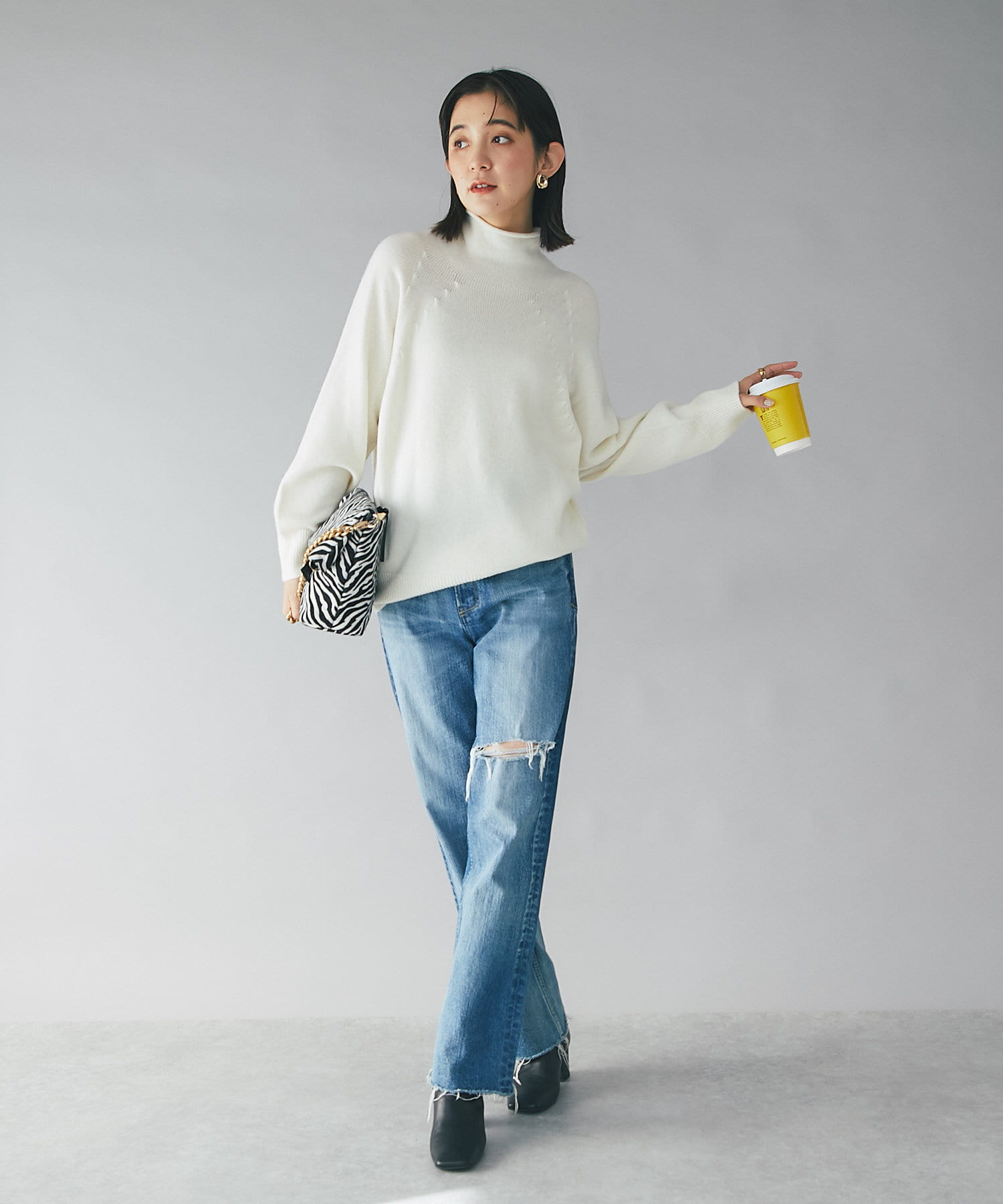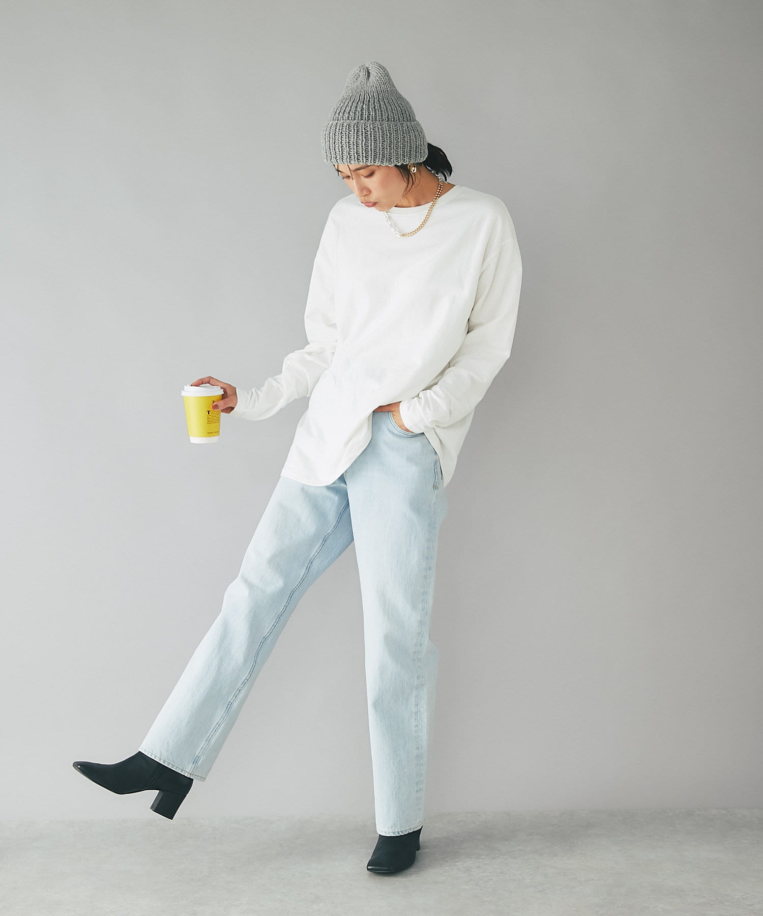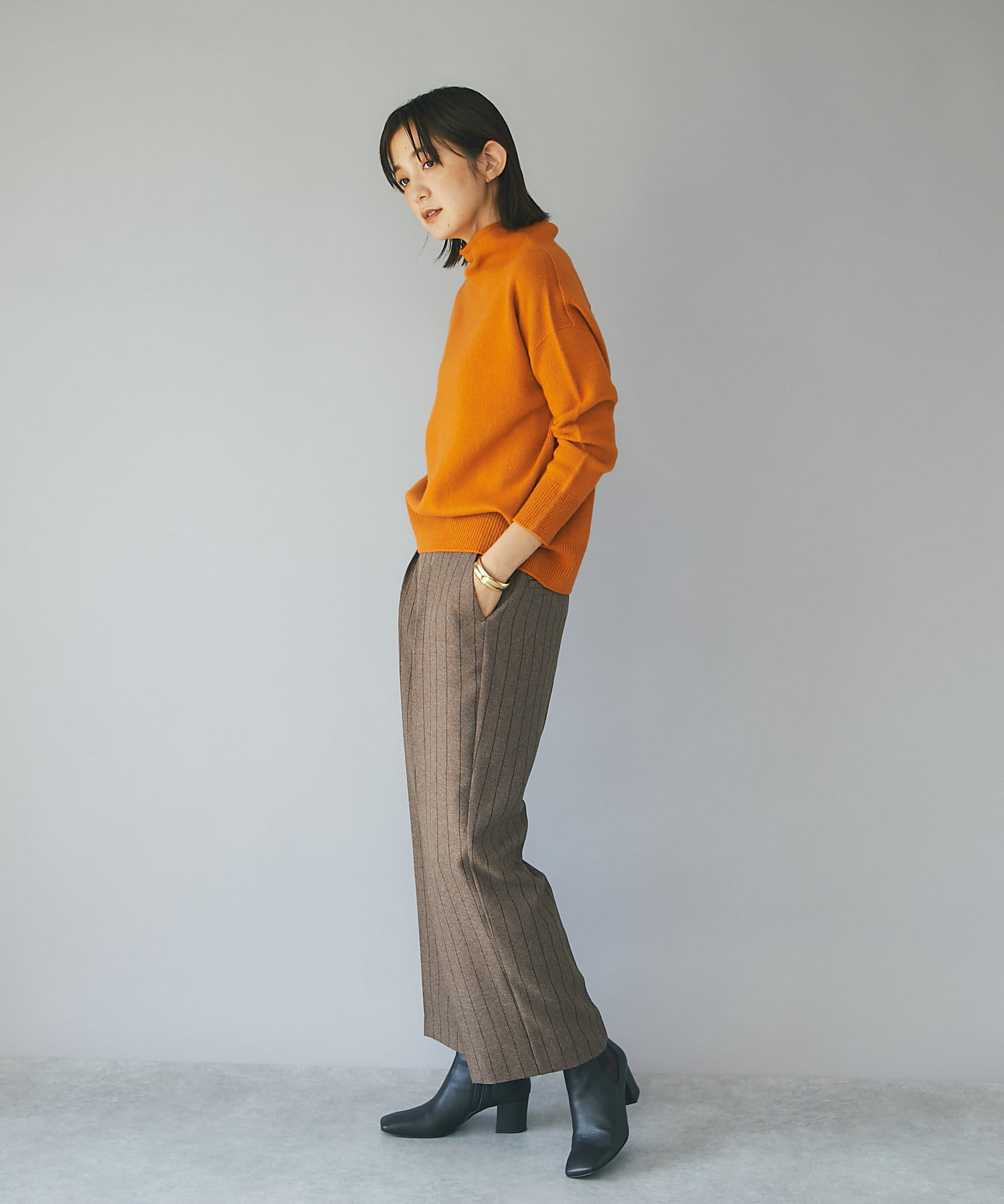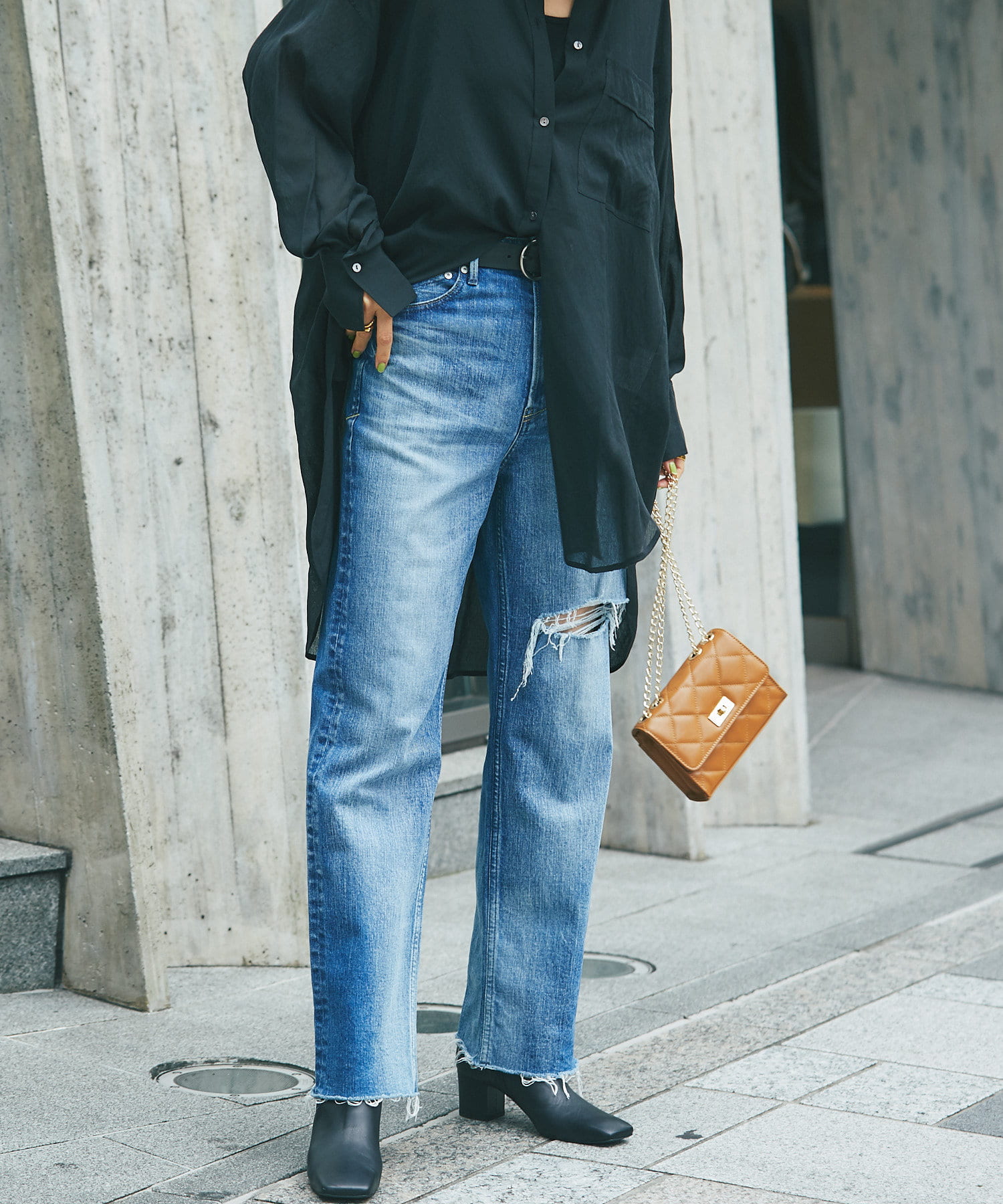 ワイドパンツにつま先だけのぞかせてもかっこいいです。