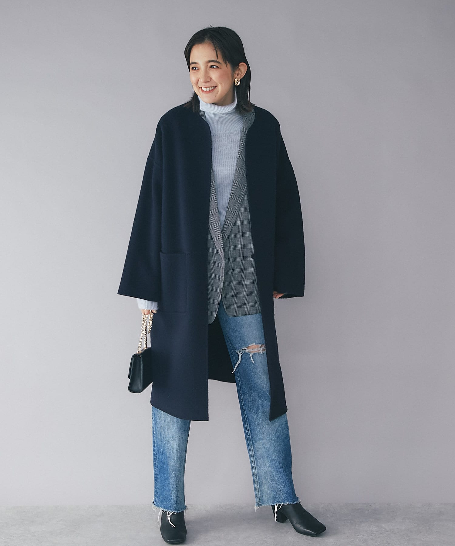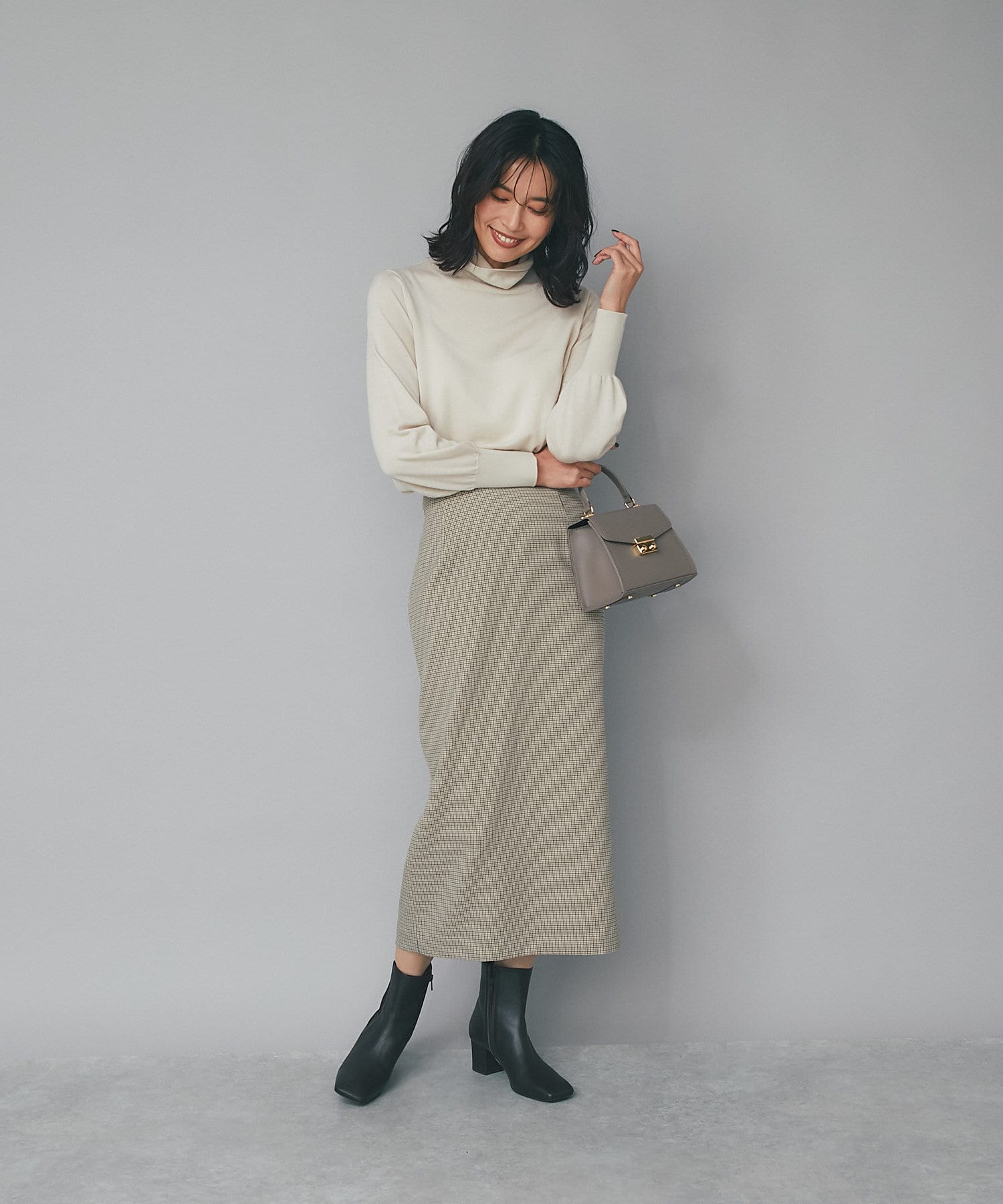 シンプルなコーディネートに合わせても、アクセントになるおススメのショートブーツです。
