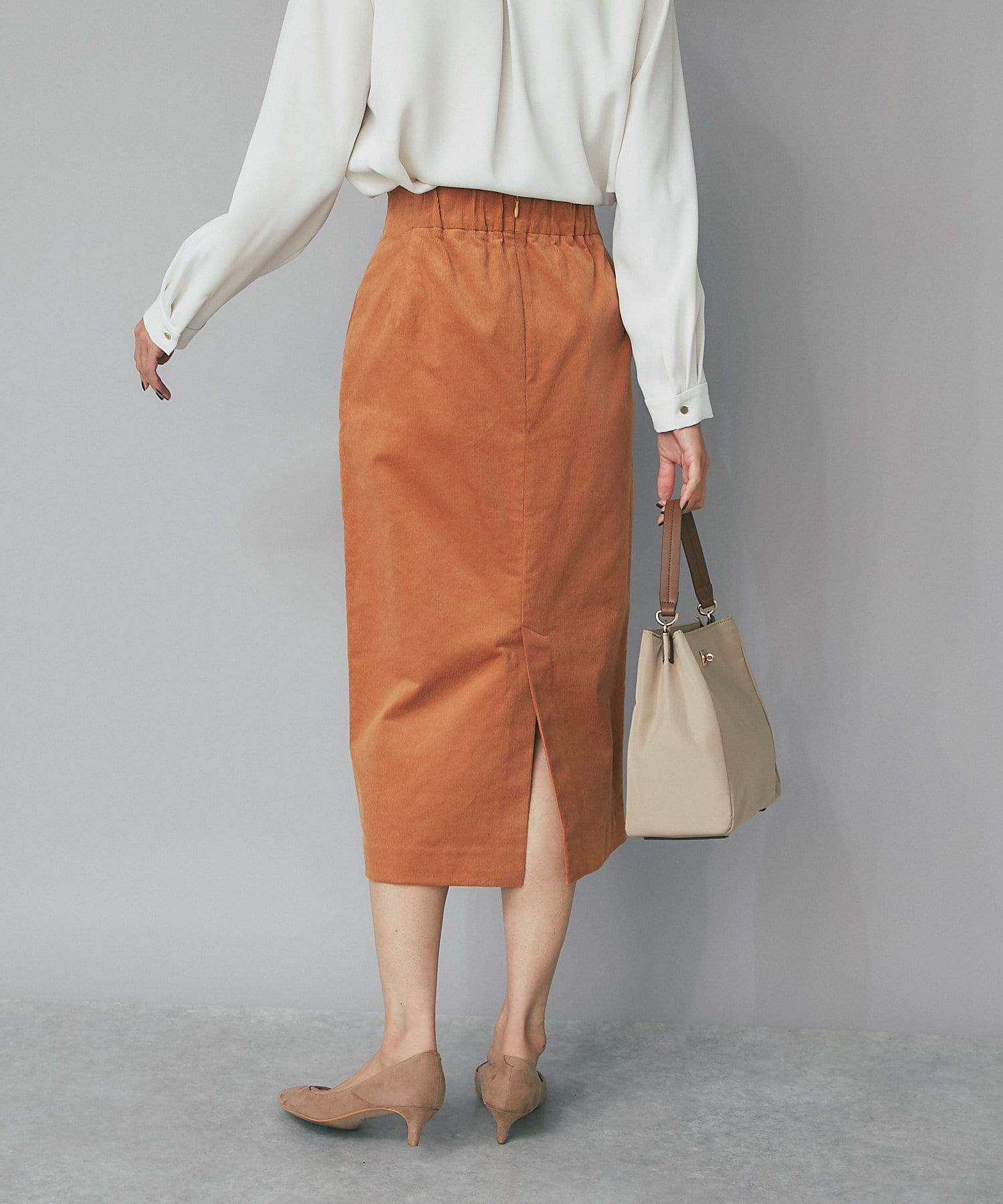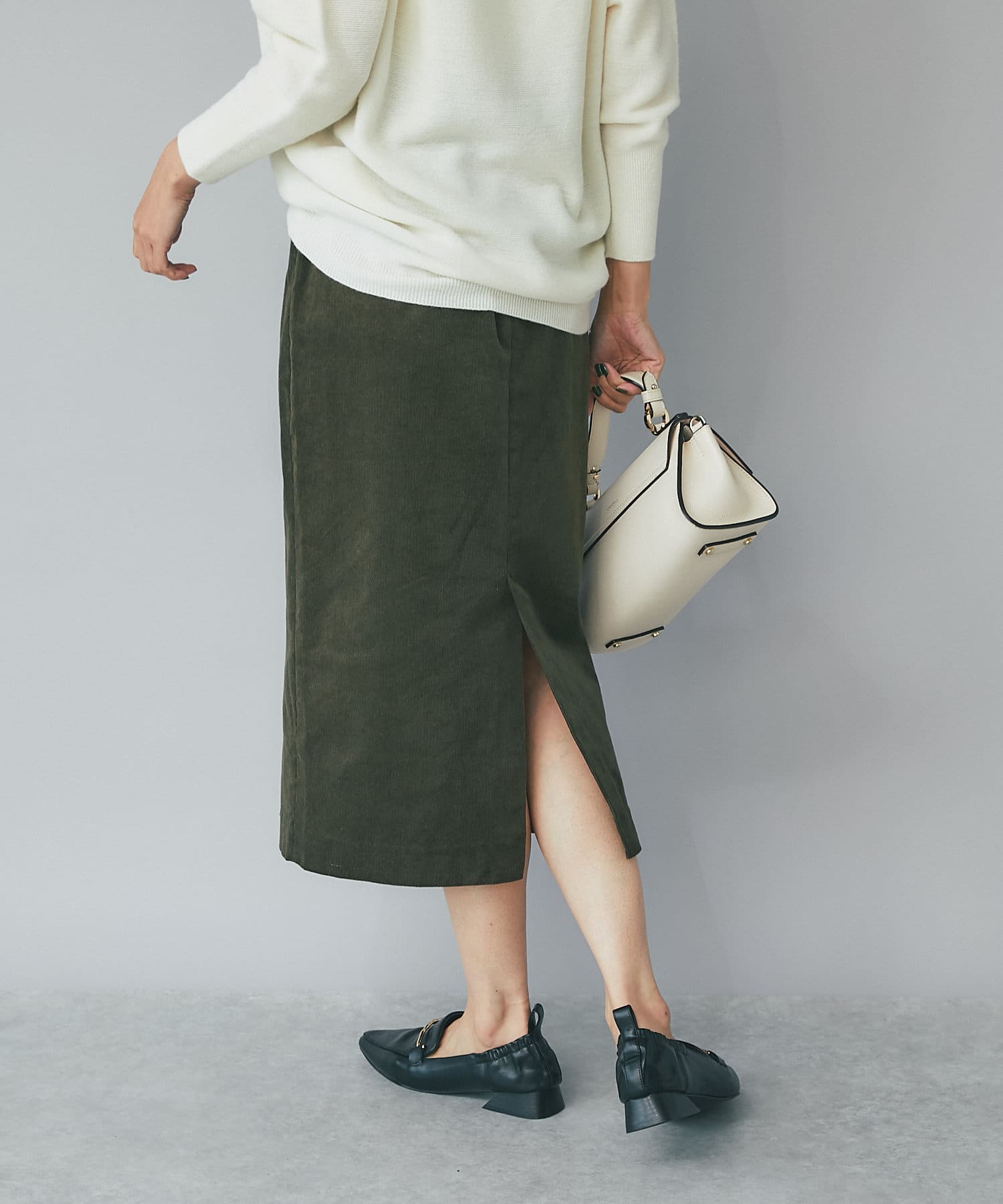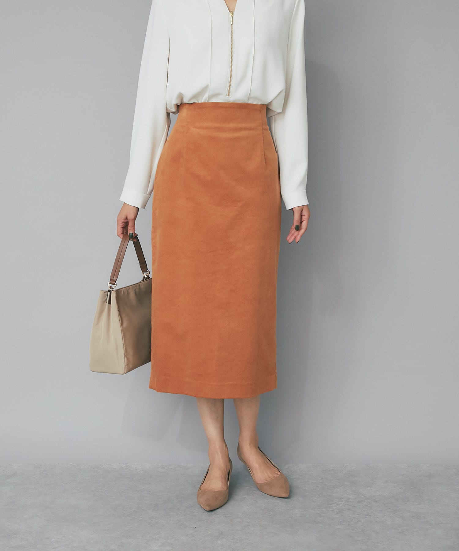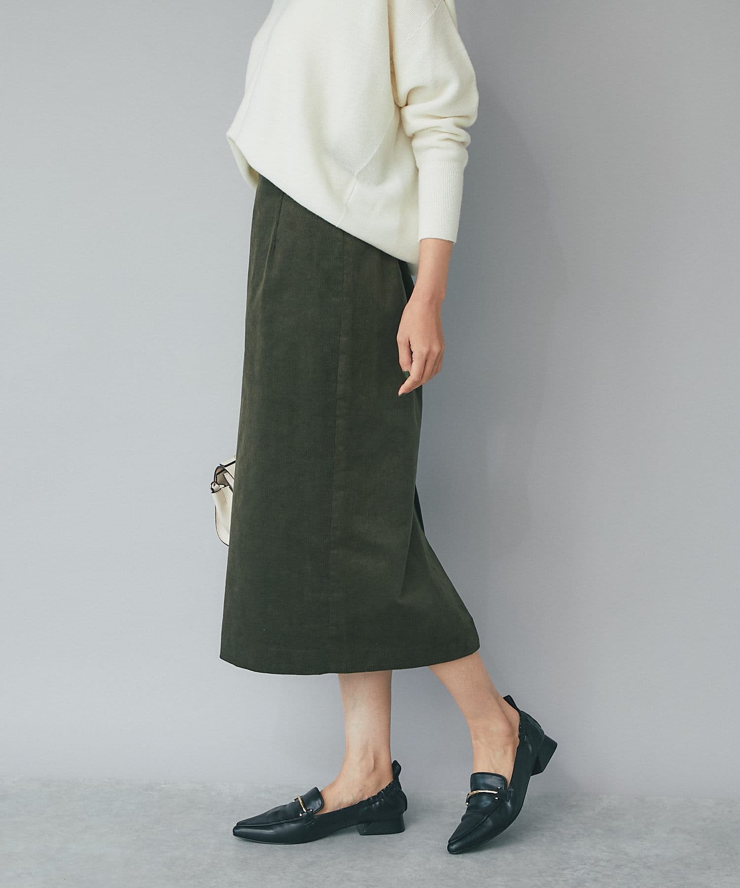 シーズンムードを引き立てる!ミディ丈のコーデュロイナロースカート。