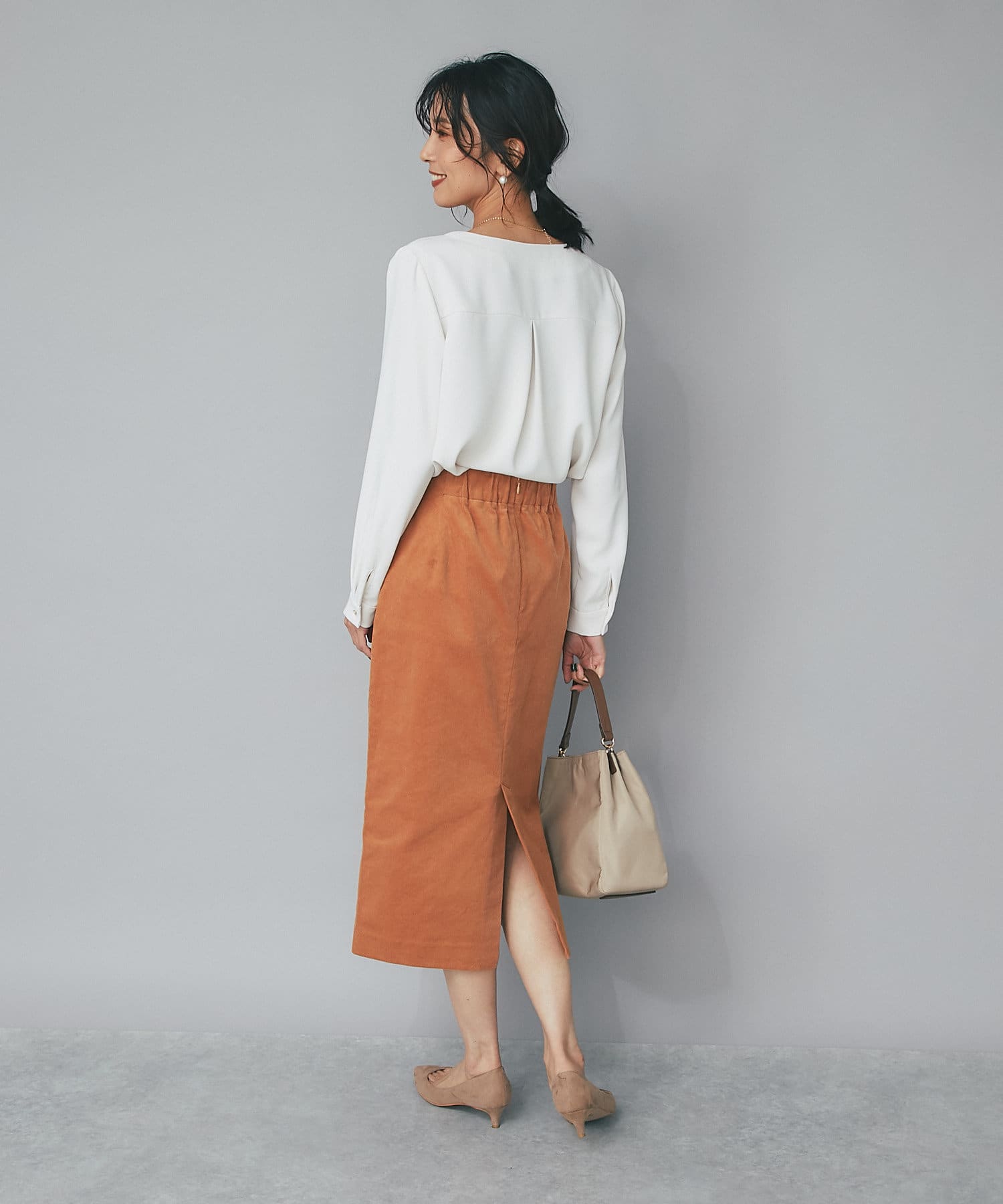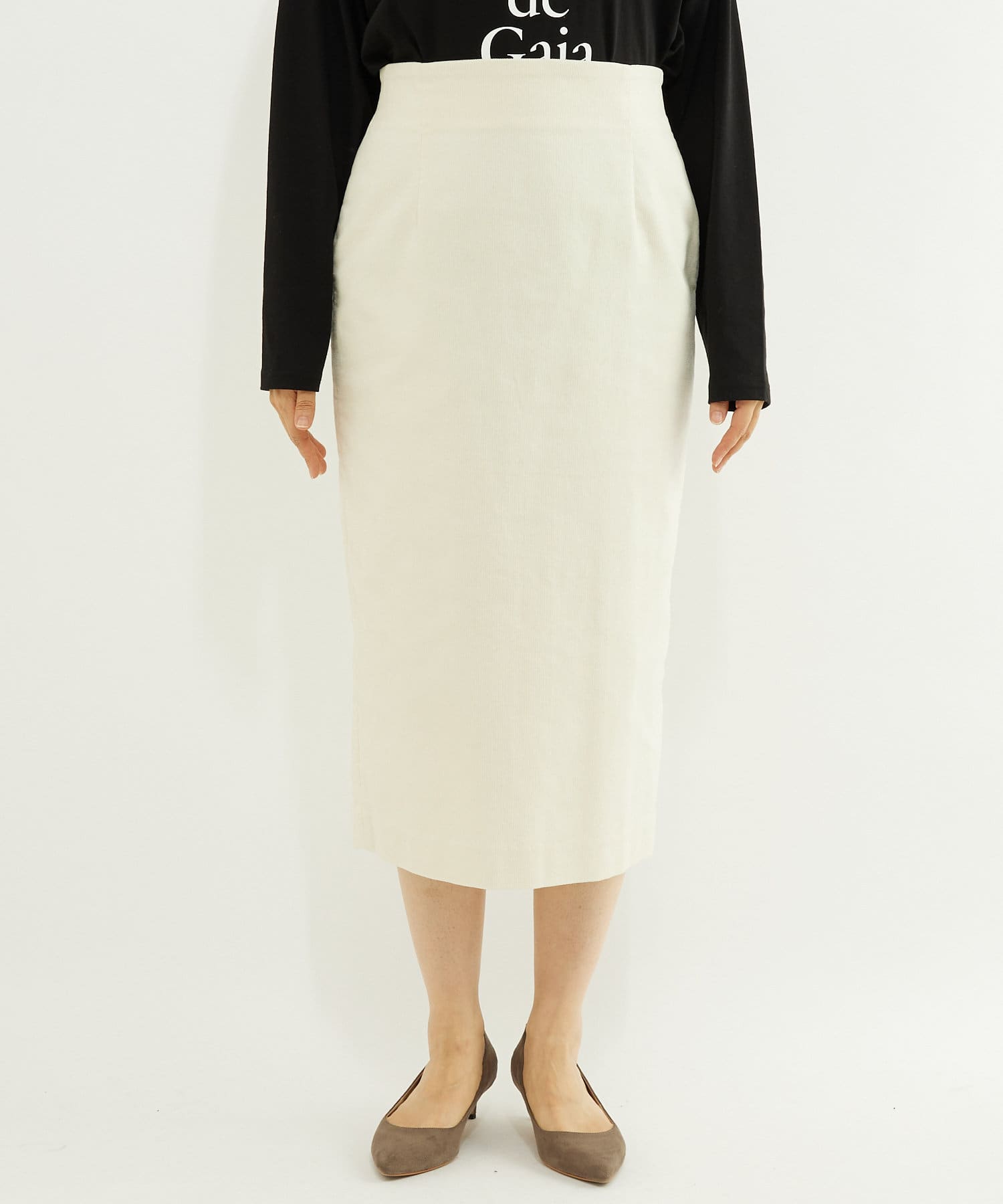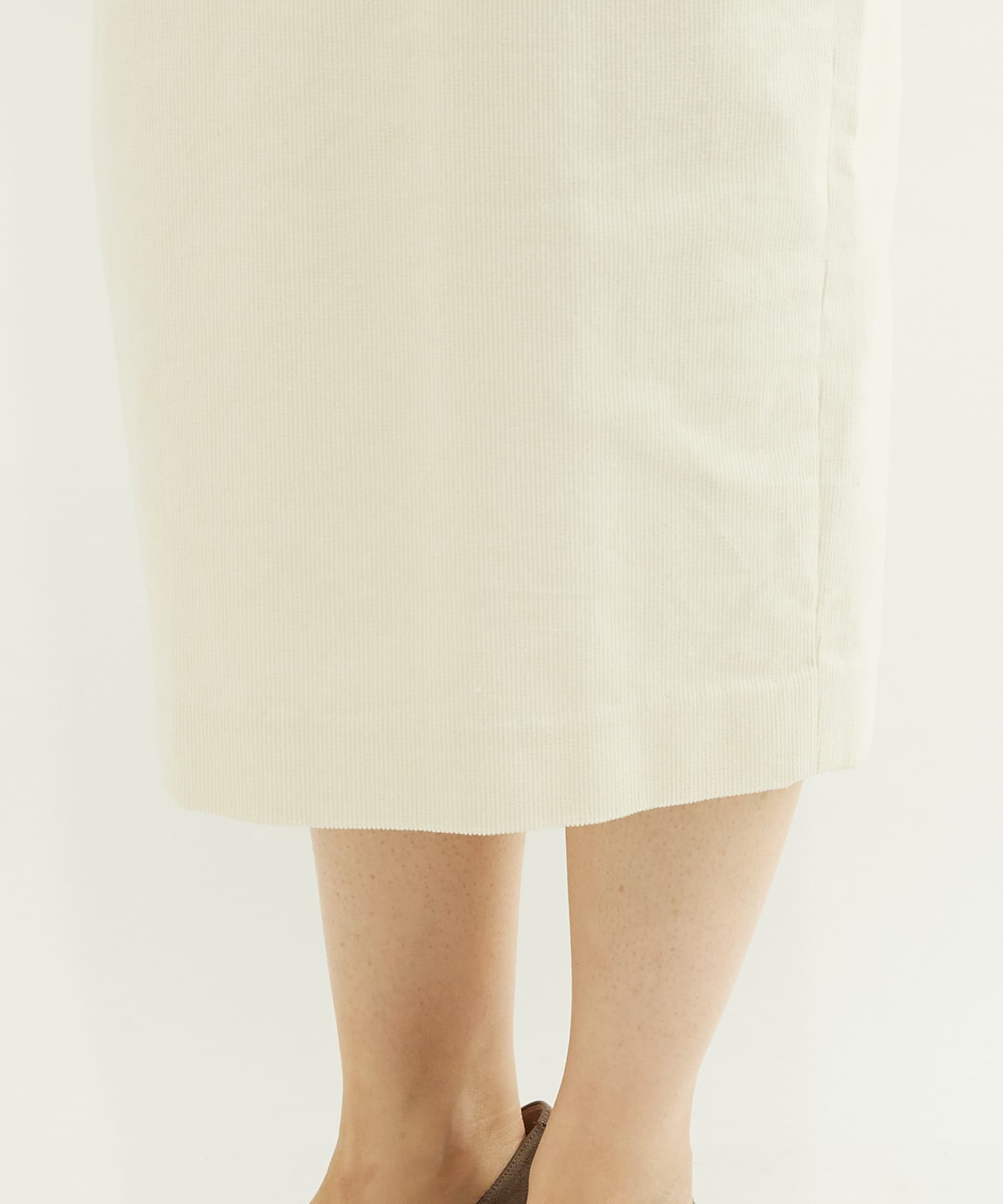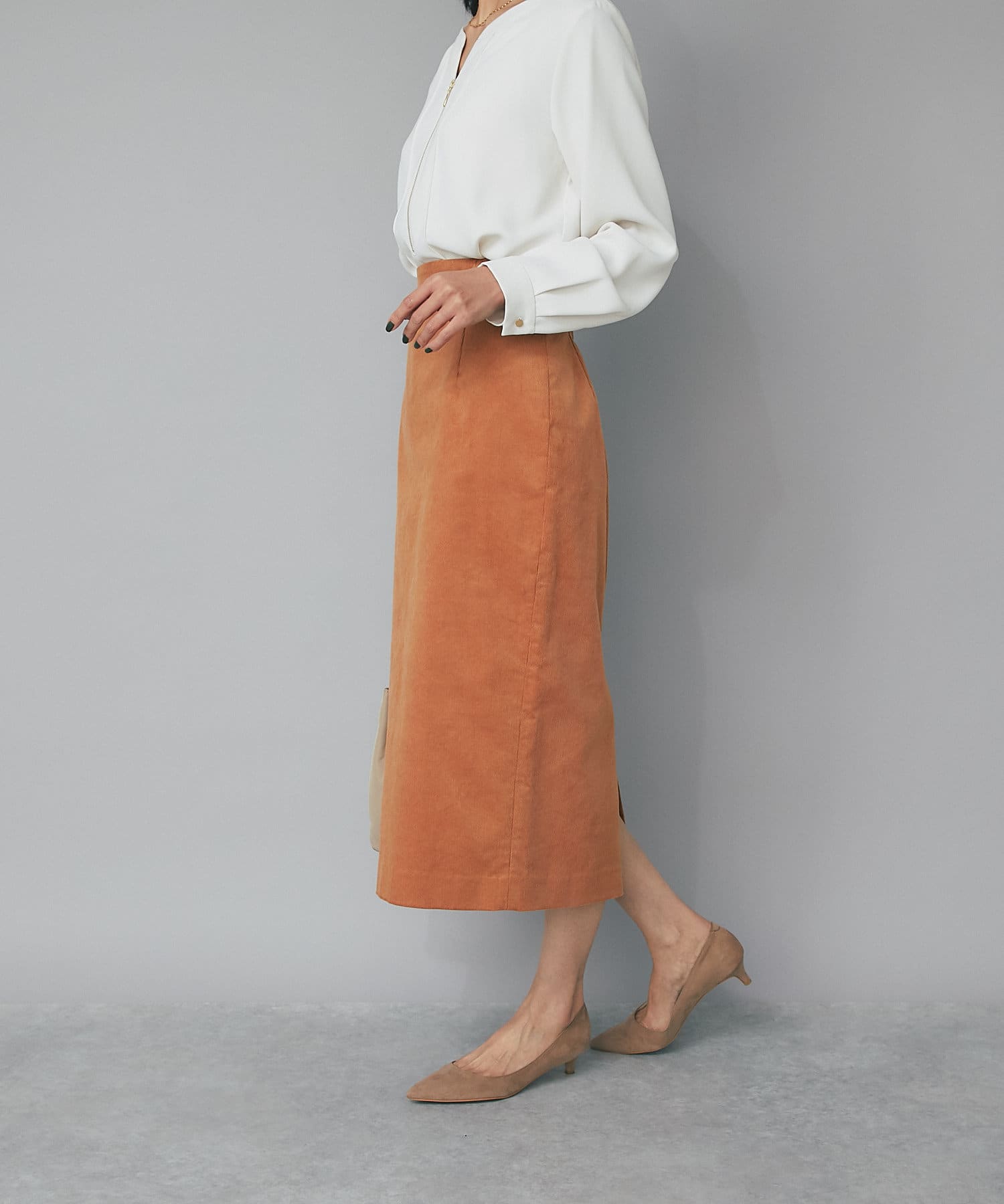 シーズンムードを引き立てる!ミディ丈のコーデュロイナロースカート。