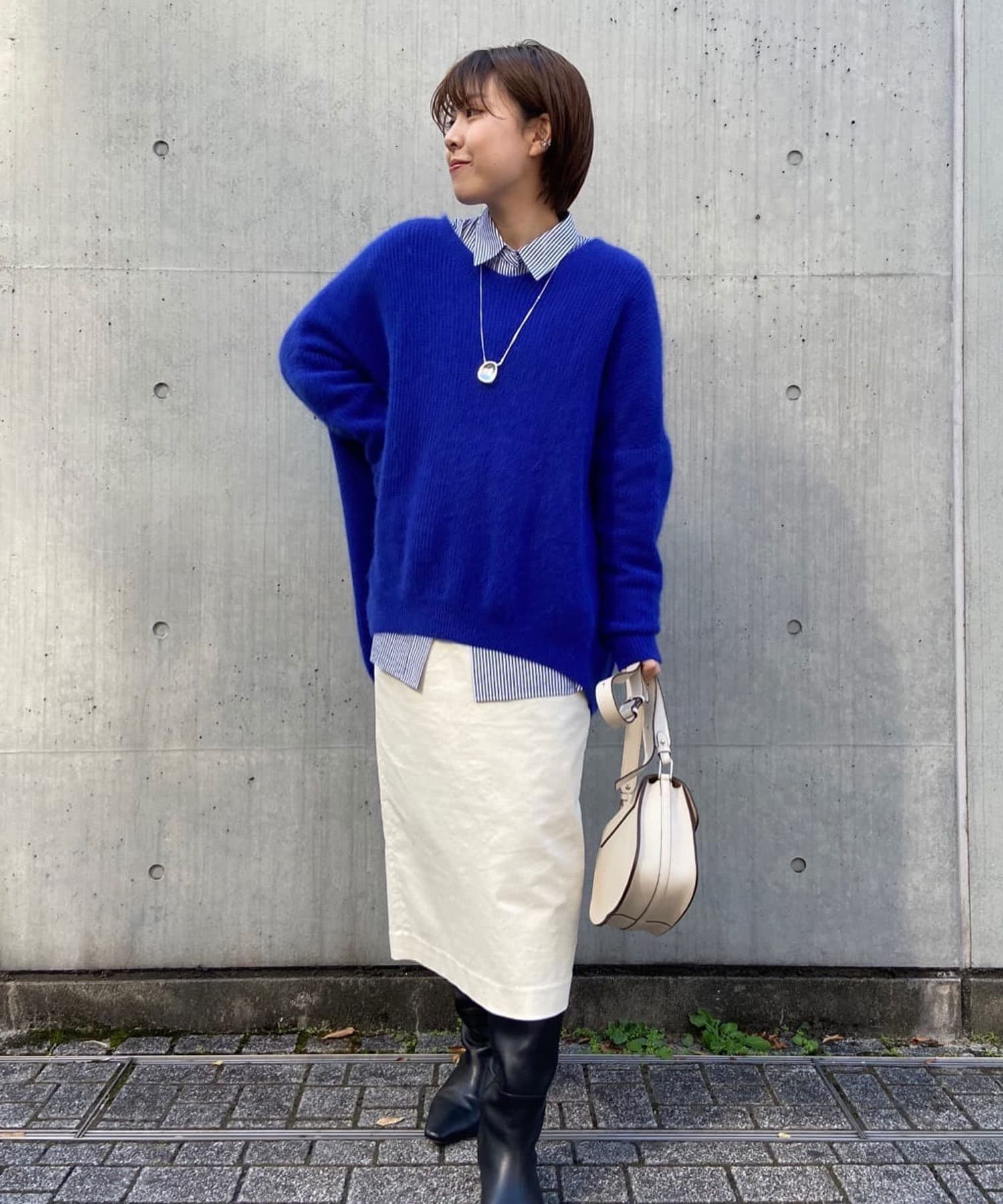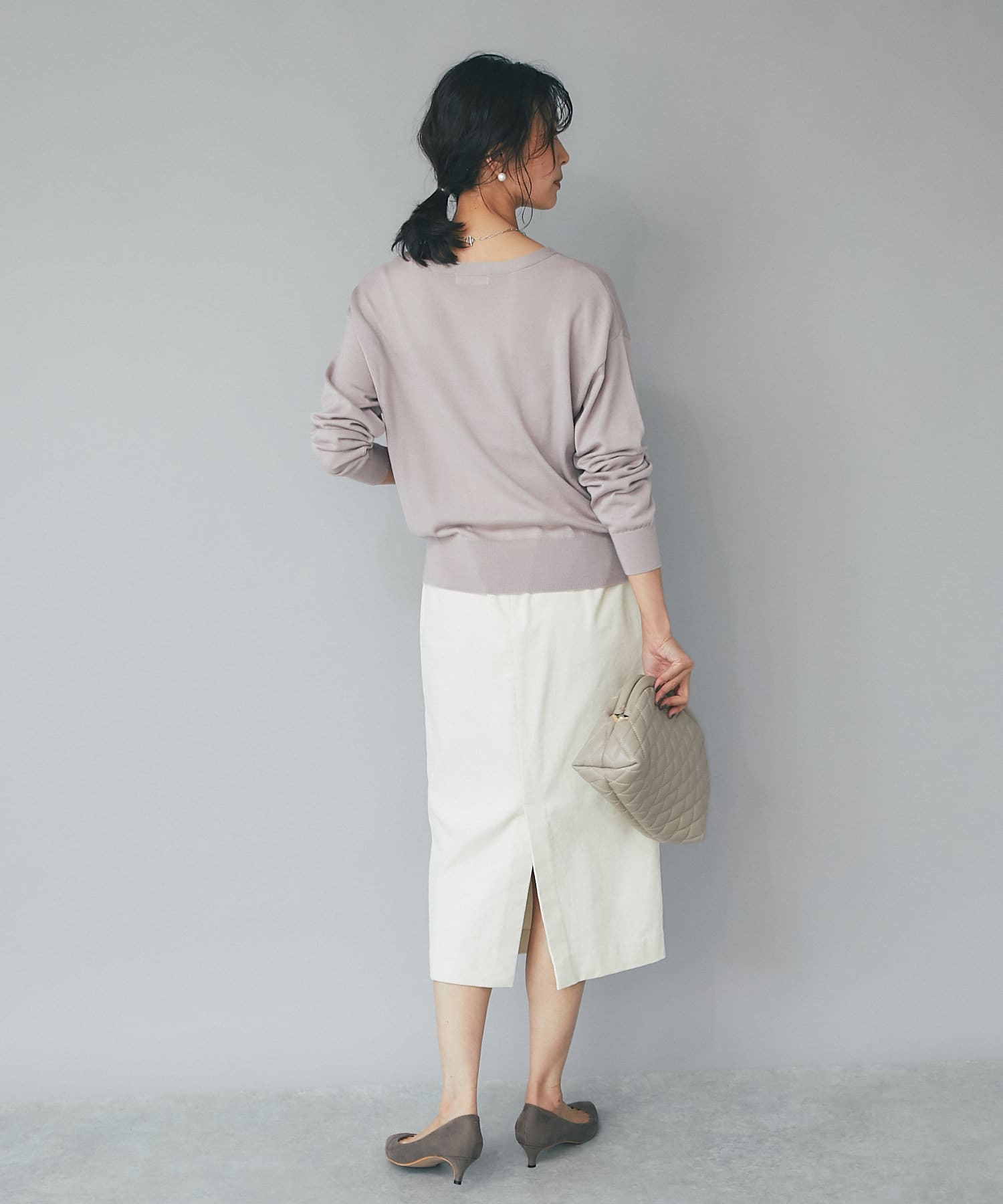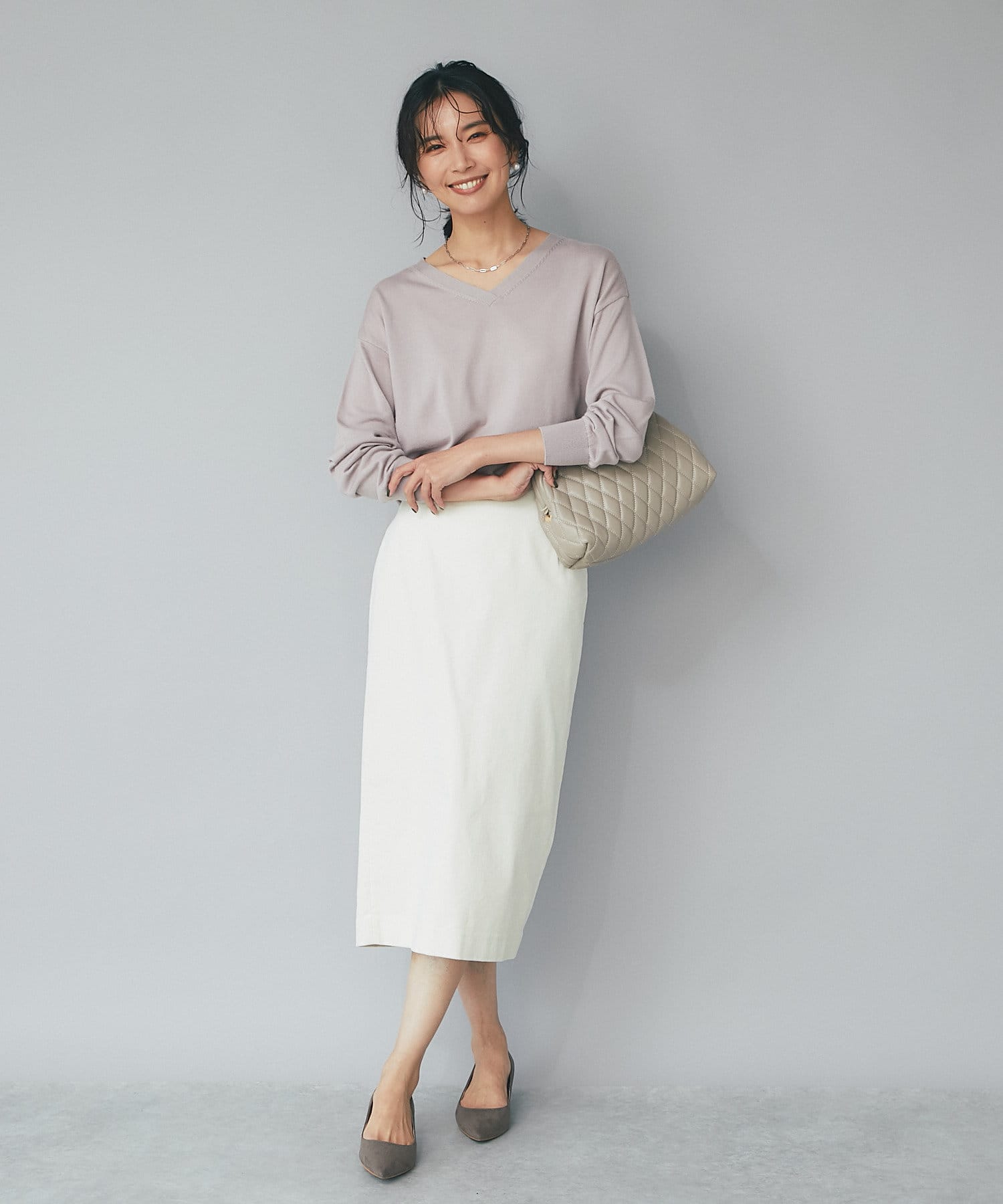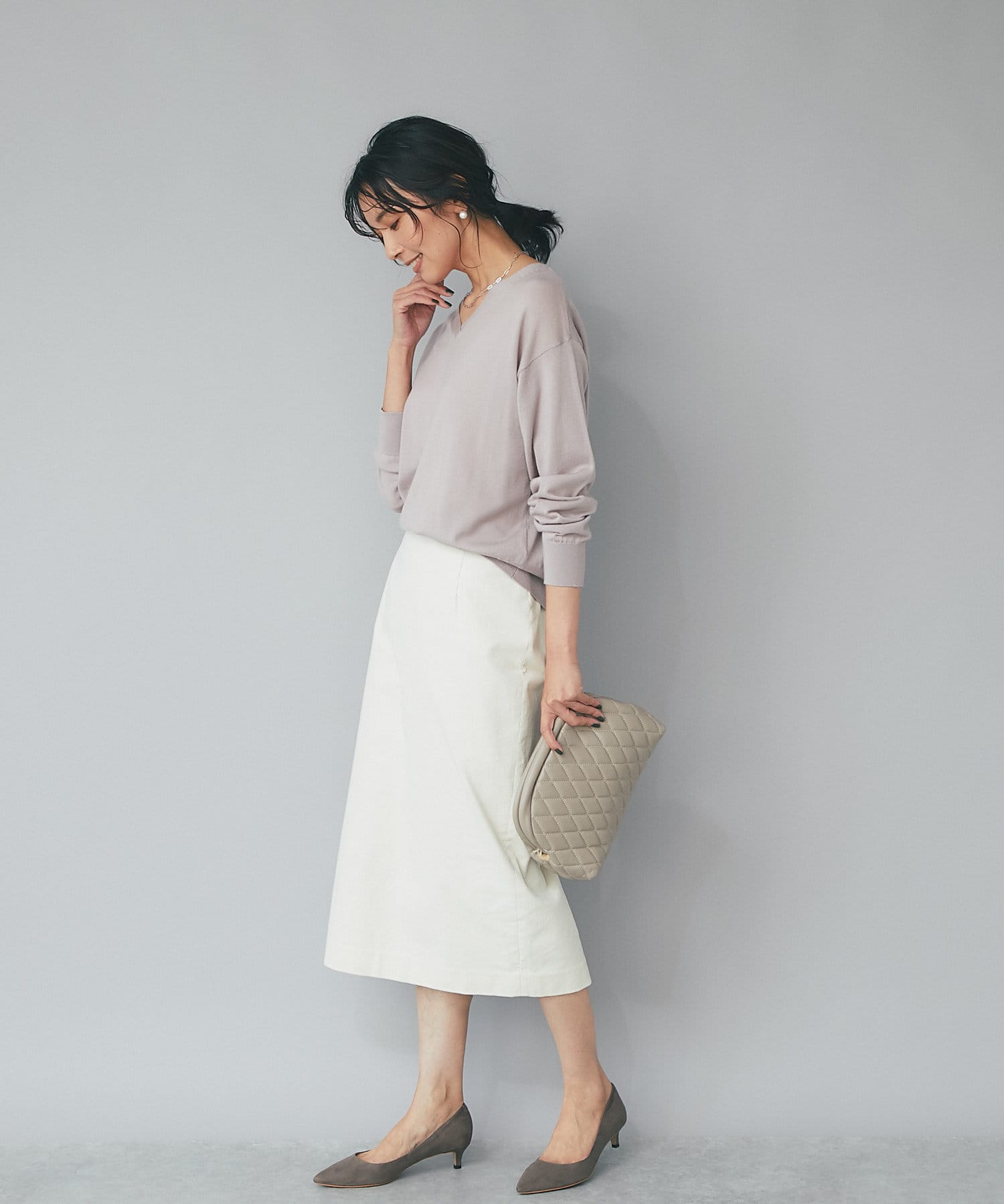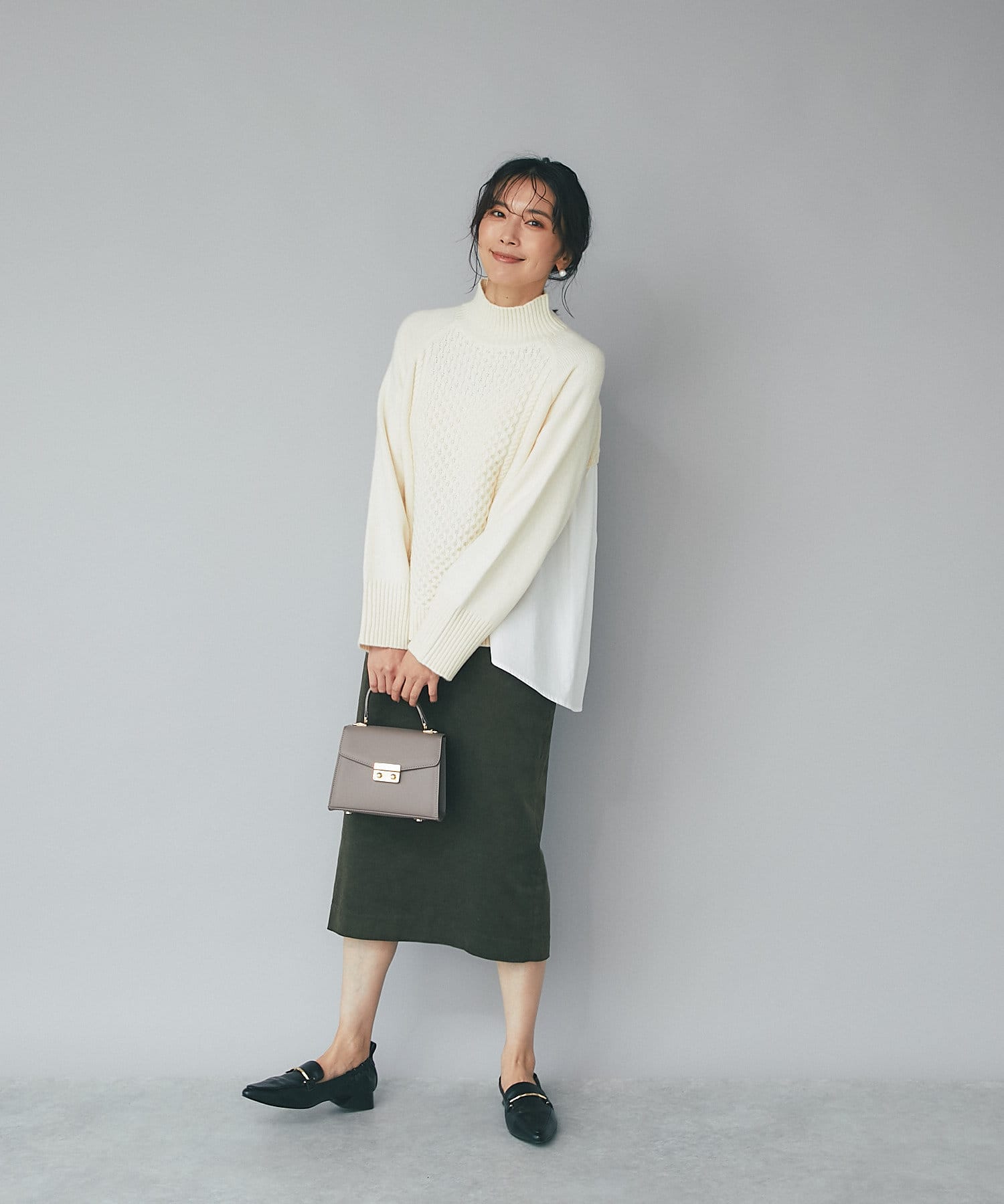 ざっくりなニットで綺麗めカジュアルと、お好みによってコーディネートをお楽しみください。