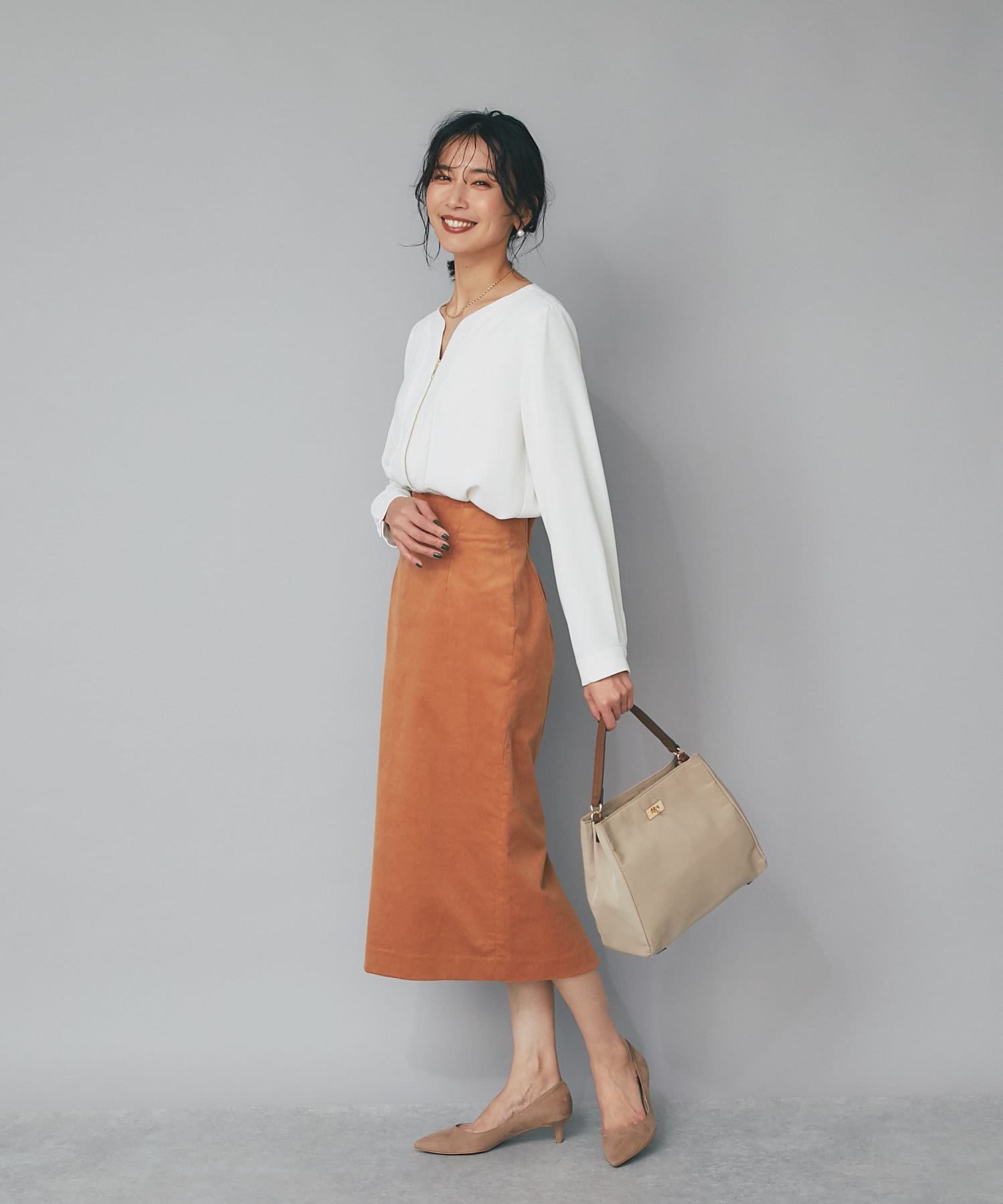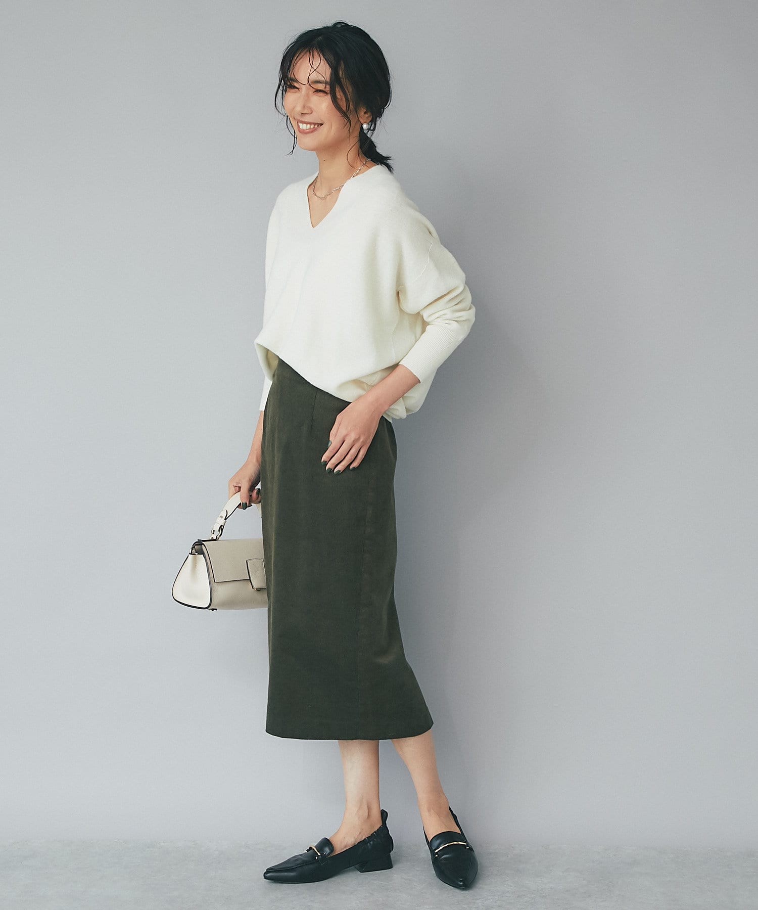 上品さとカジュアルのバランスが絶妙なコーデュロイスカート。