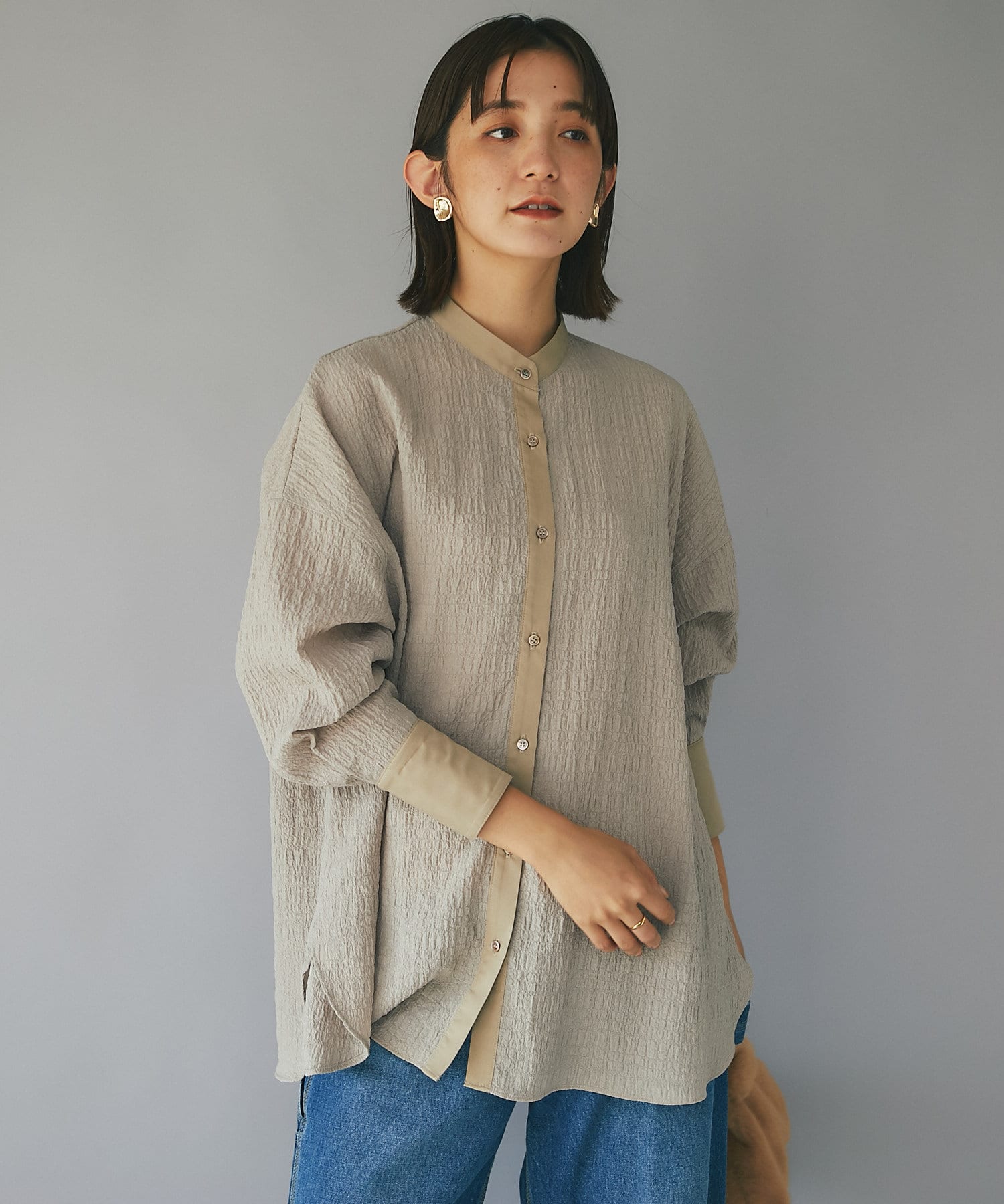 【異素材使いがアクセント!】リップルオーバーシャツ