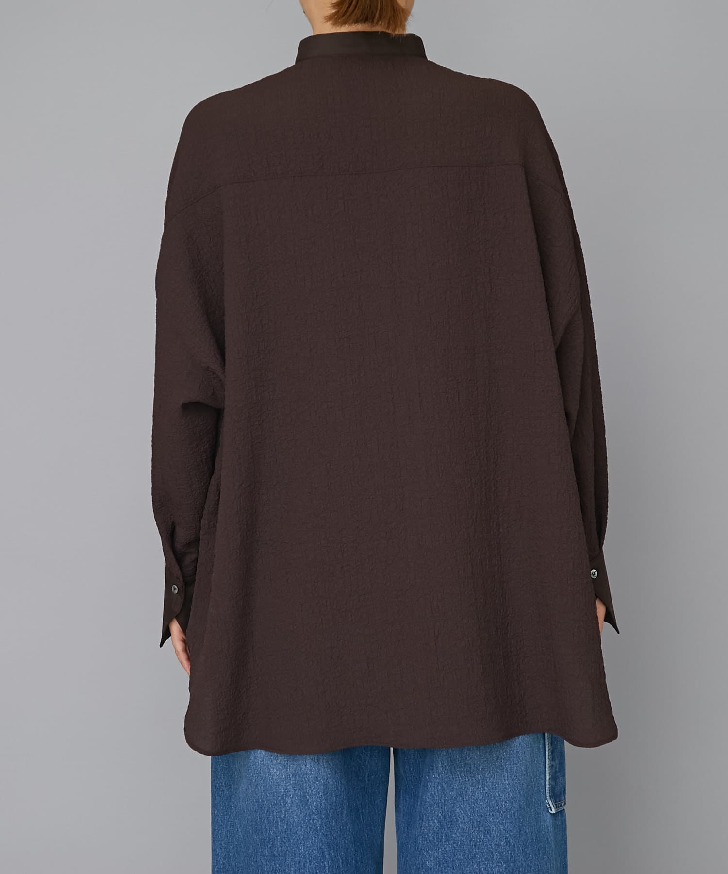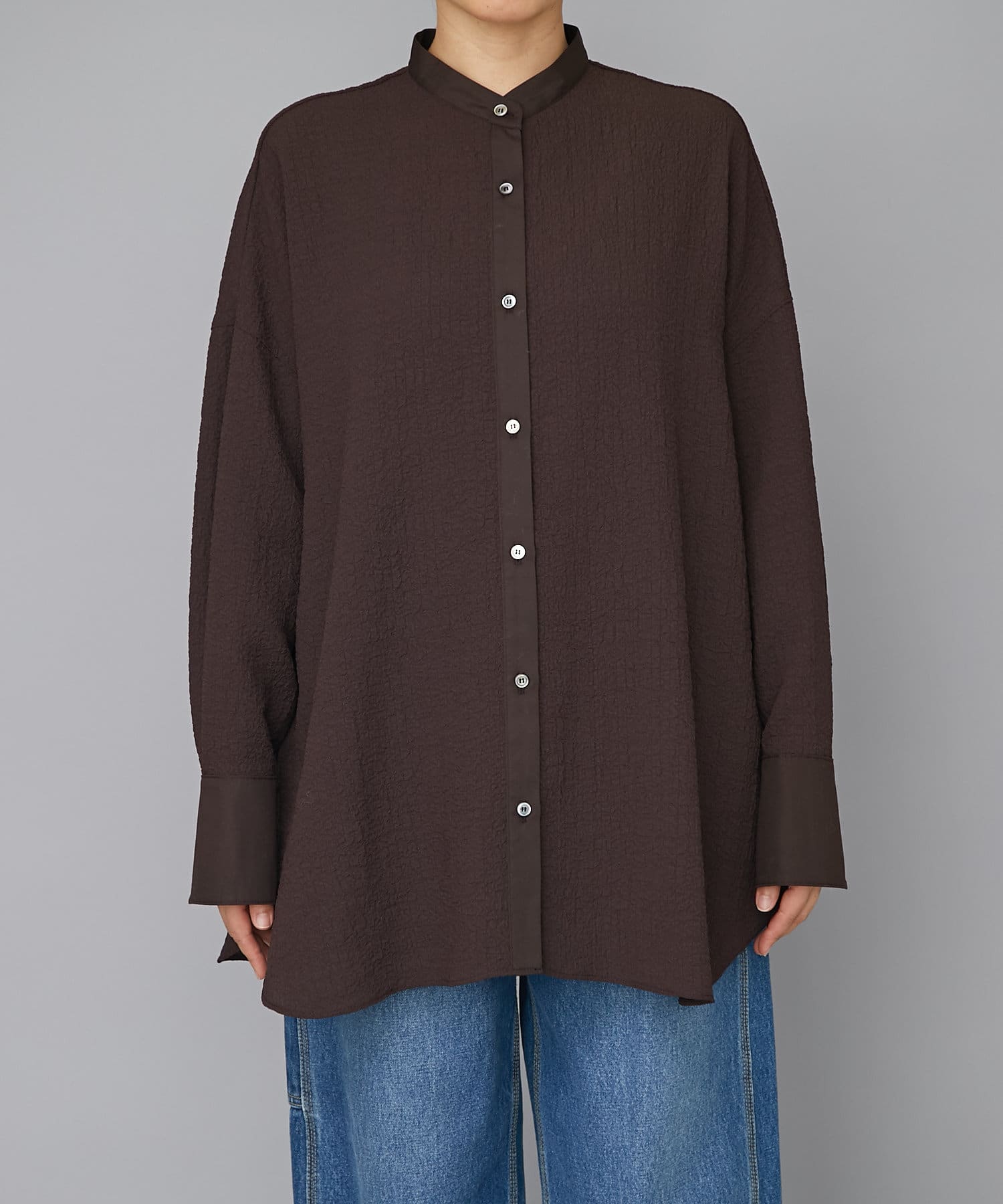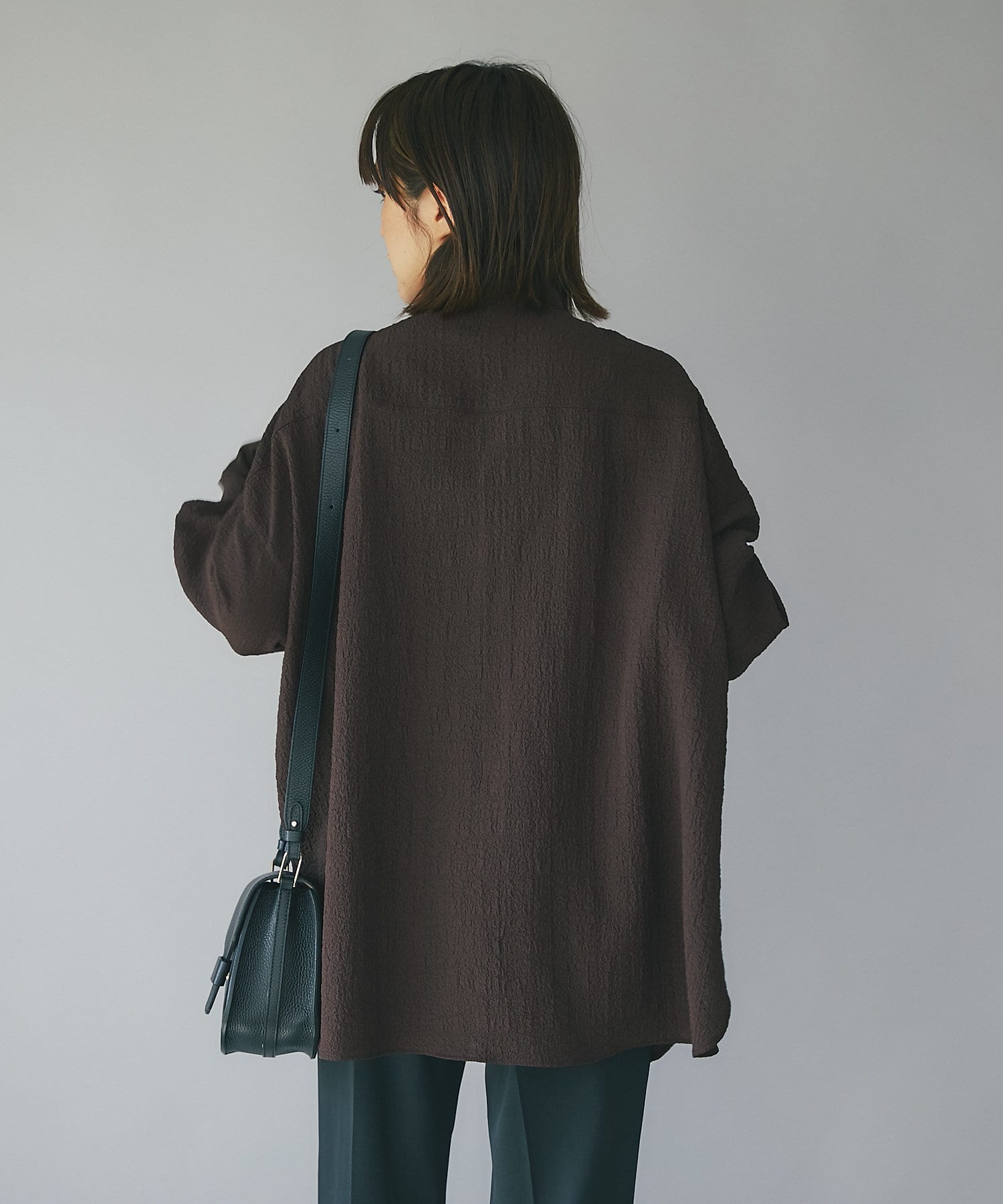 ポコポコとした表情豊かな素材が存在感を放つオーバーサイズシャツ。