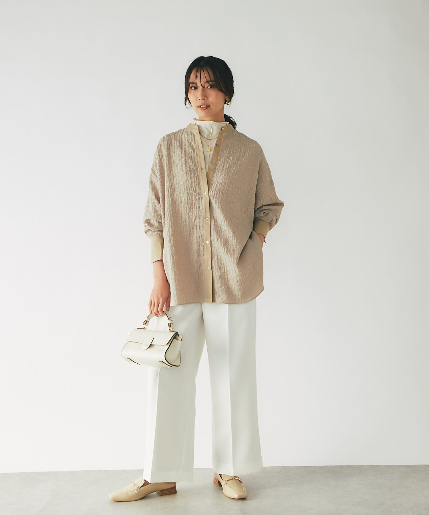 ・バンドカラーでキレイめからカジュアルまでマッチする
