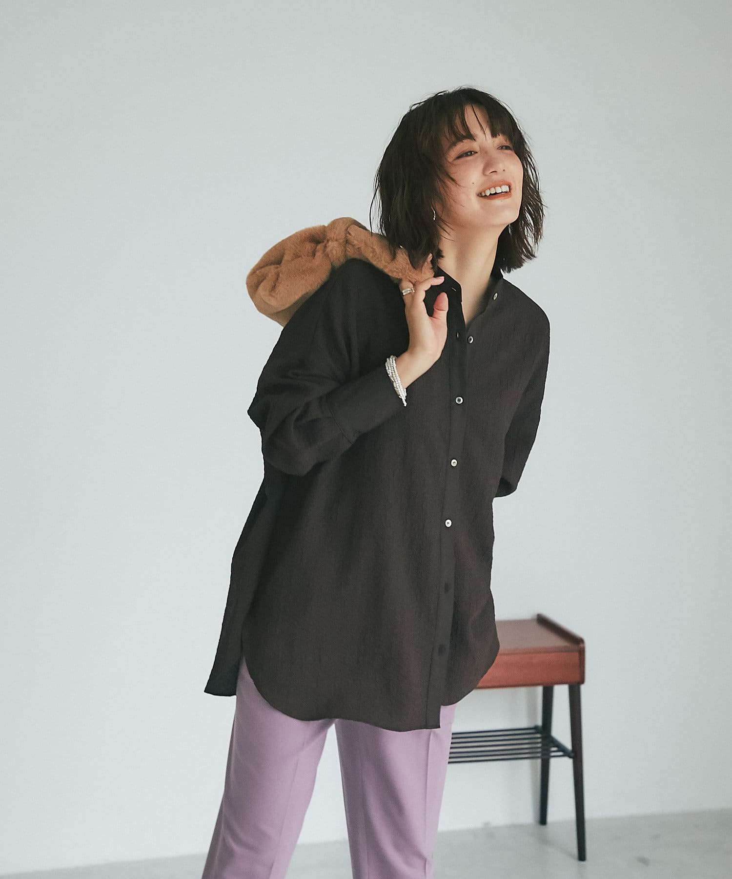 • シワになりにくくイージーケアも可能なところも魅力的なアイテム。