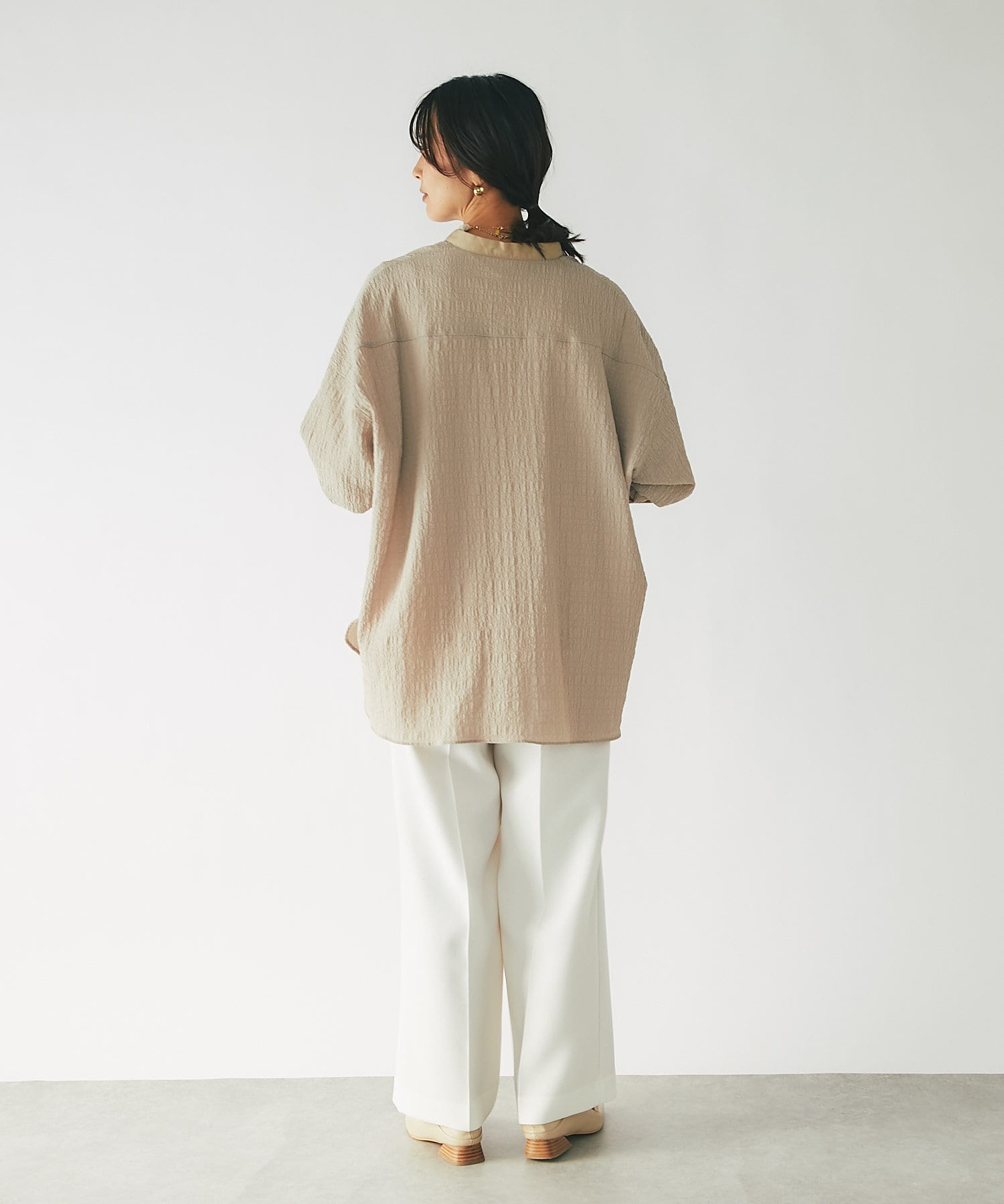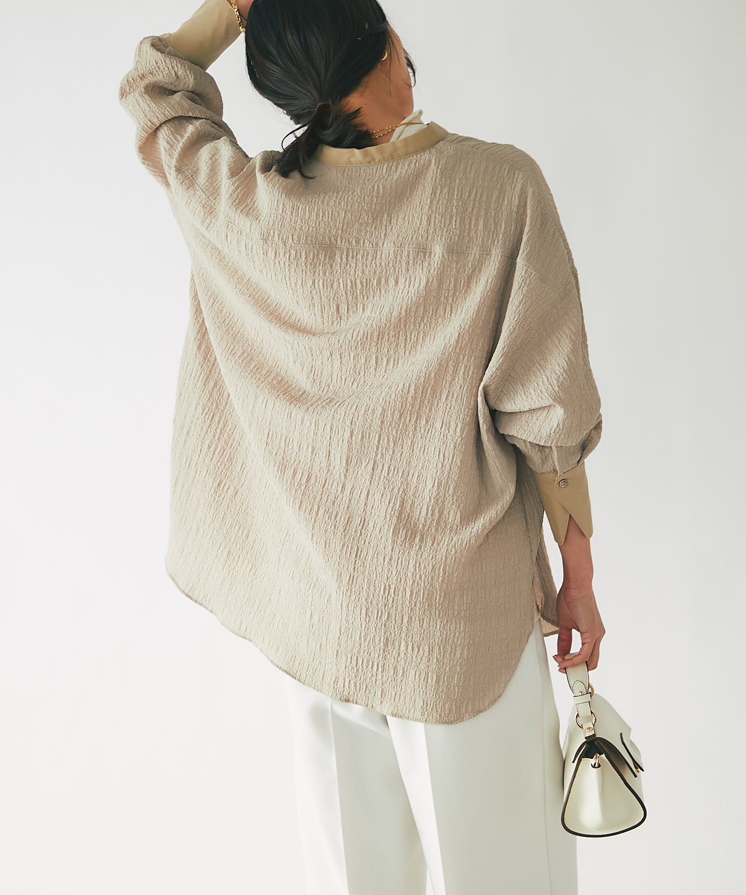 【異素材使いがアクセント!】リップルオーバーシャツ