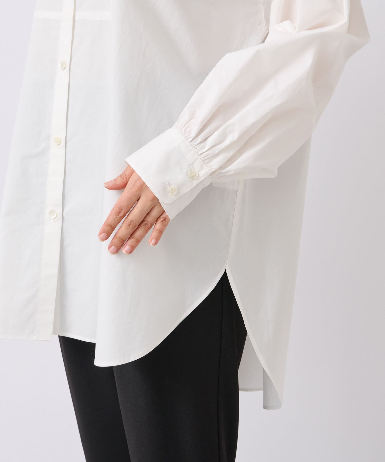 コットン100%の素材感でシーズンを問わず着用できる1着で、ご自宅でホームケアしていただけます。