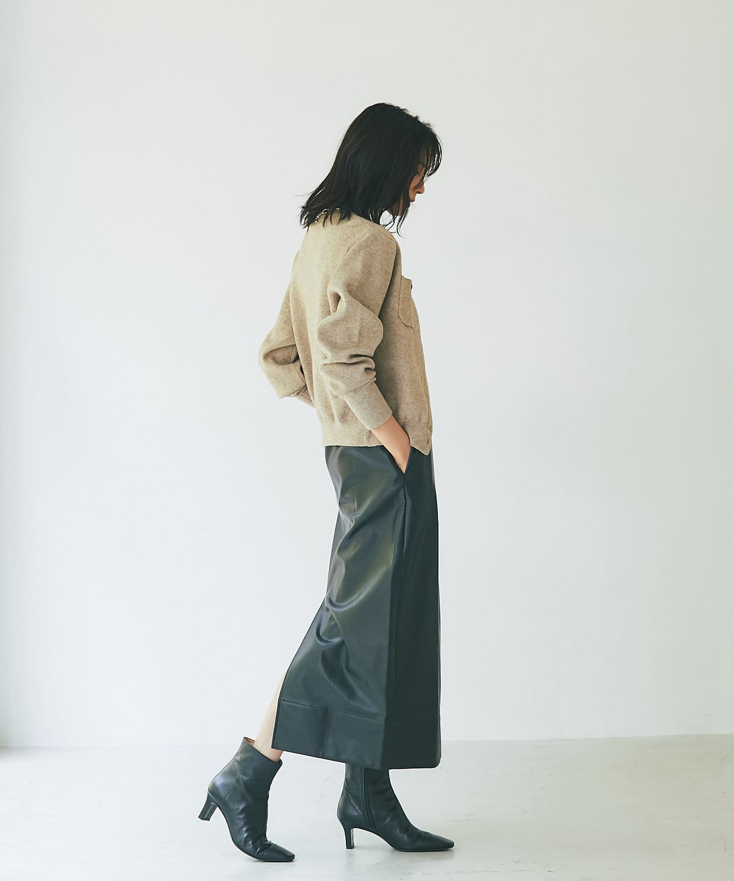 足元はスエードなどの温かみがあり、レディライクなヒールパンプスで合わせるとカジュアル過ぎず、上品な印象になります。