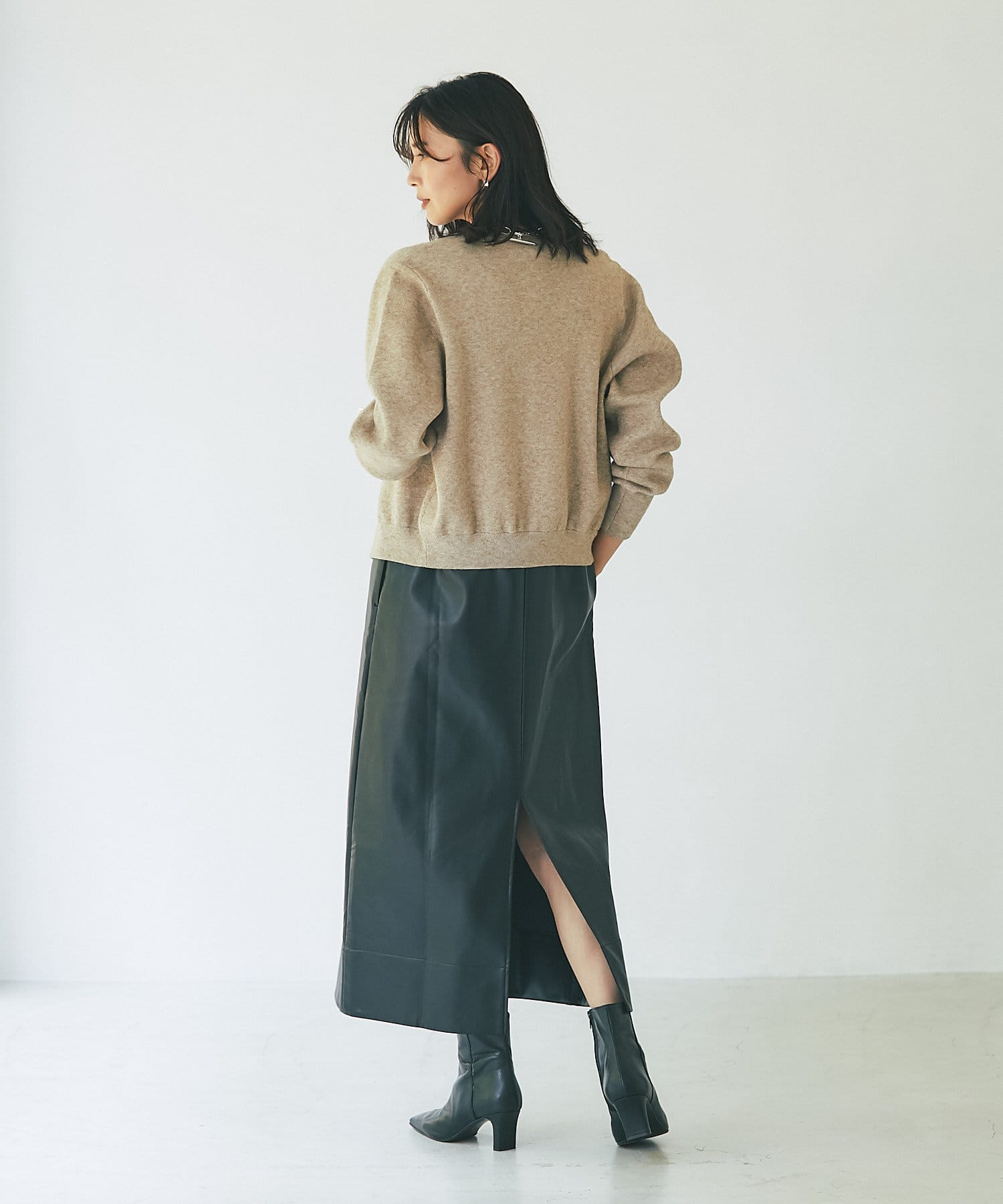 ・丸みのあるクルーネックが女性らしさを引き立てる