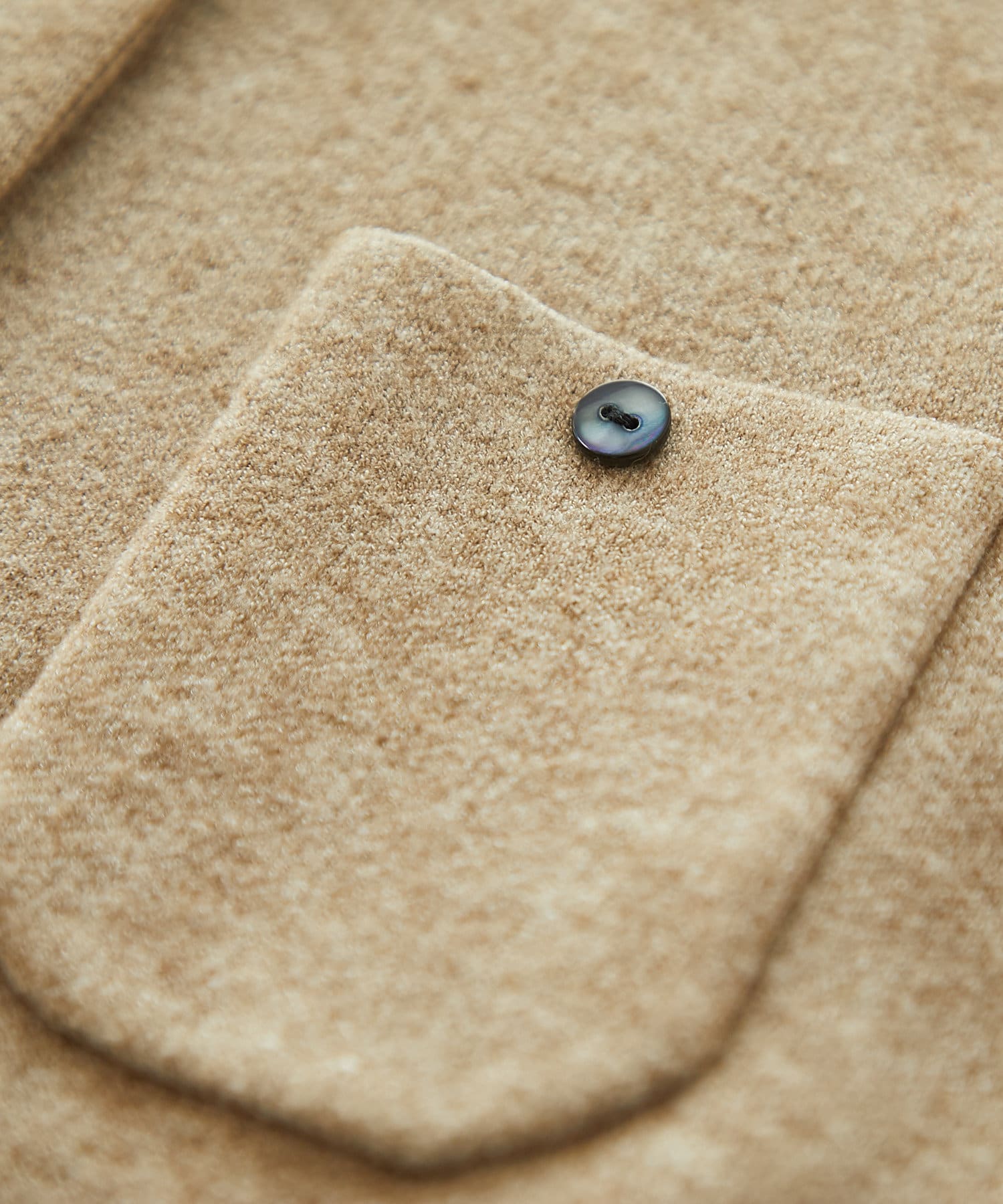 胸元のポケットディティールがシンプル過ぎず、コーディネートにアクセントを加えます。
