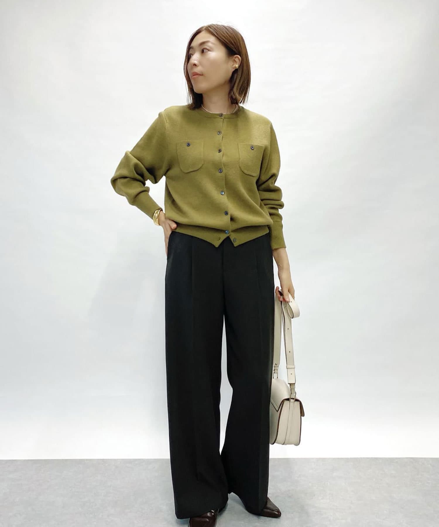 インせずに着れる短めな丈なので安心感もありつつ、スッキリとしたシルエットになります。