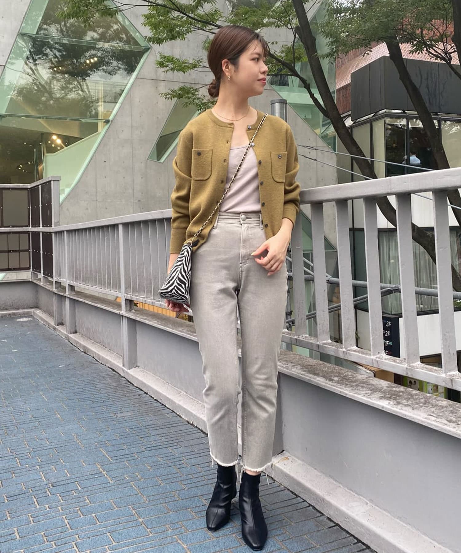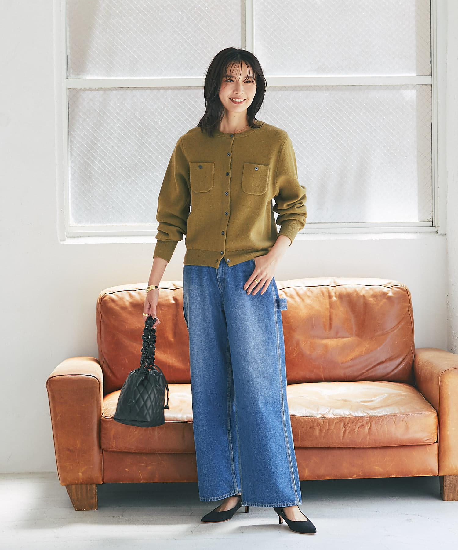シンプルなデニムを合わせた秋のキレイめカジュアルなスタイルがオススメ。