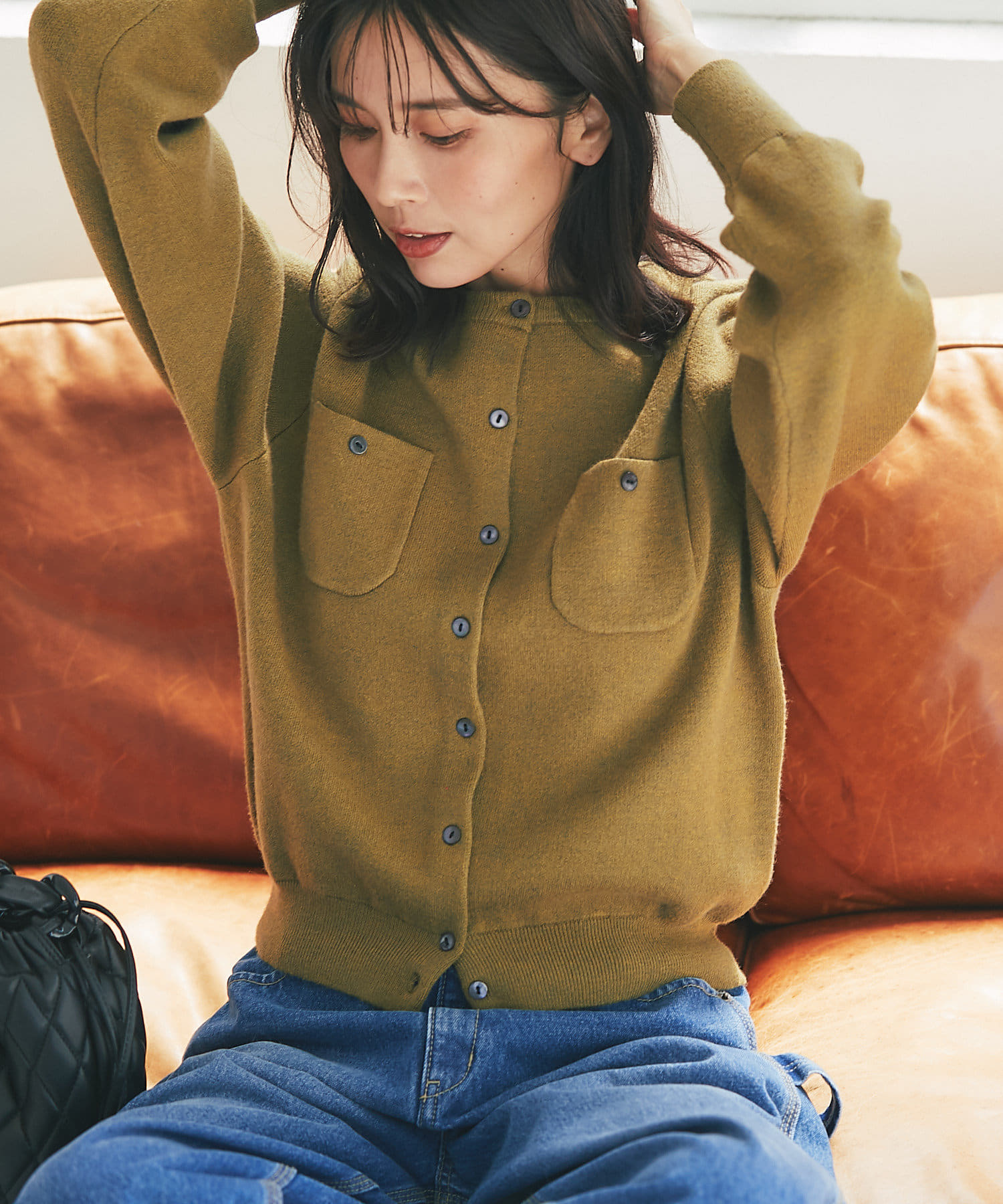 今季らしいやや短めな丈感と丸みのあるクルーネックが女性らしさを引き立てる新鮮ニット。