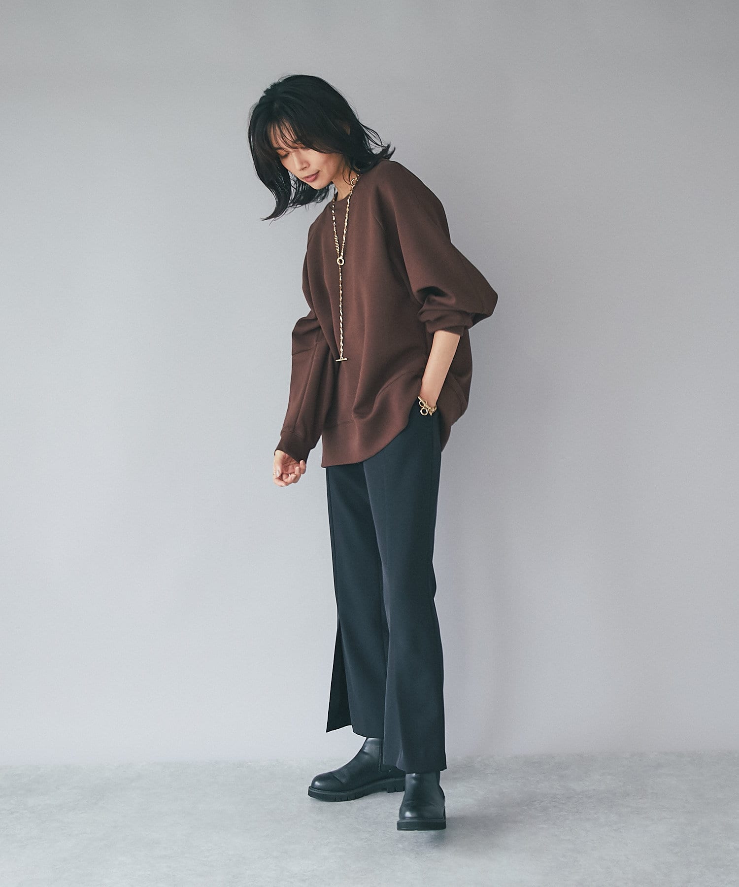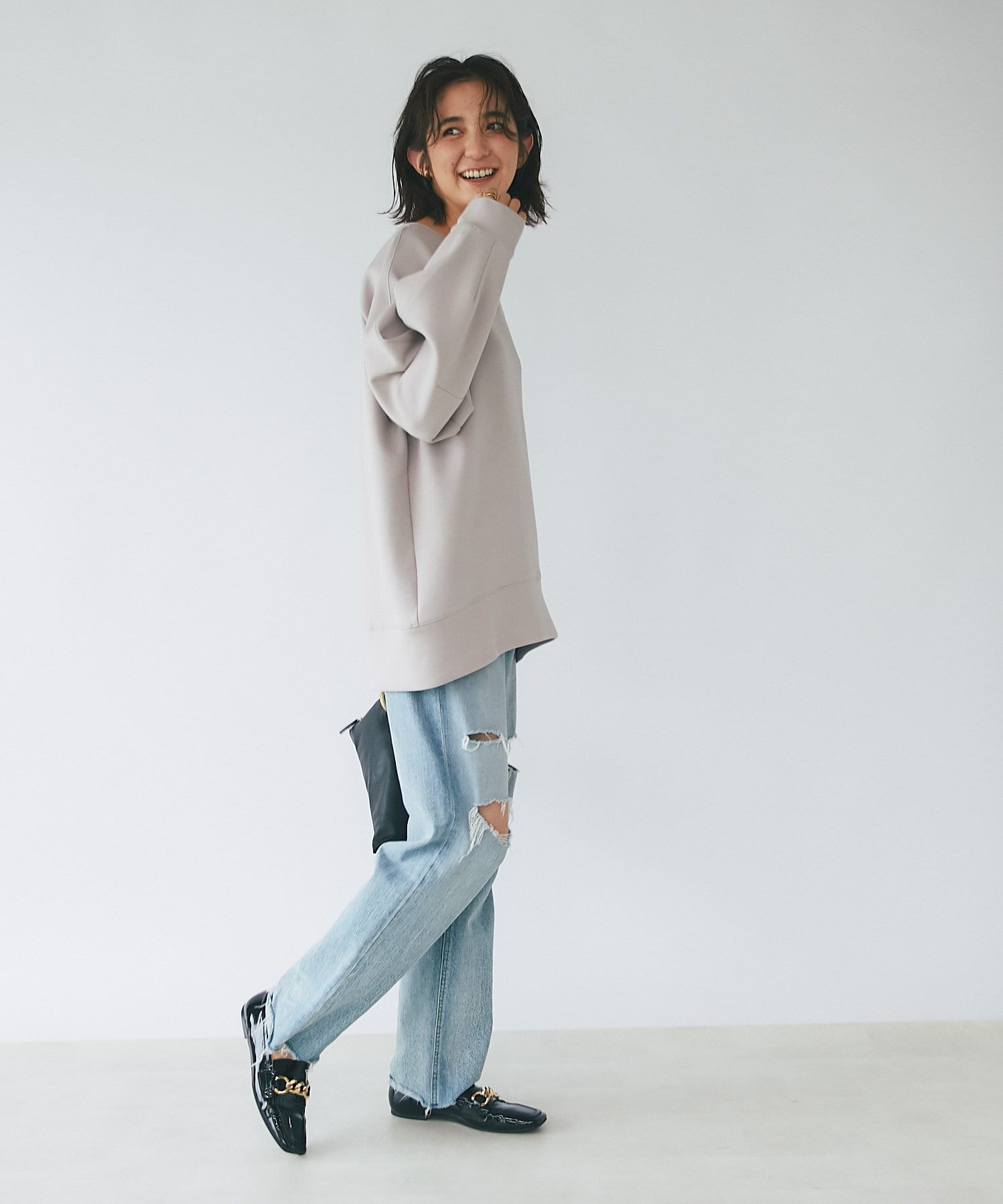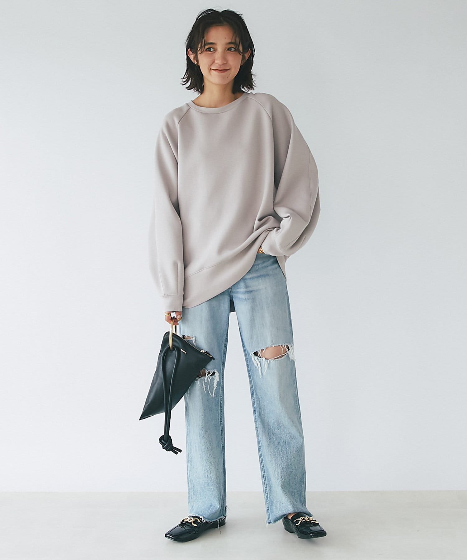 大人カジュアルにマッチする柔らか素材のダンボールオーバーカットソー