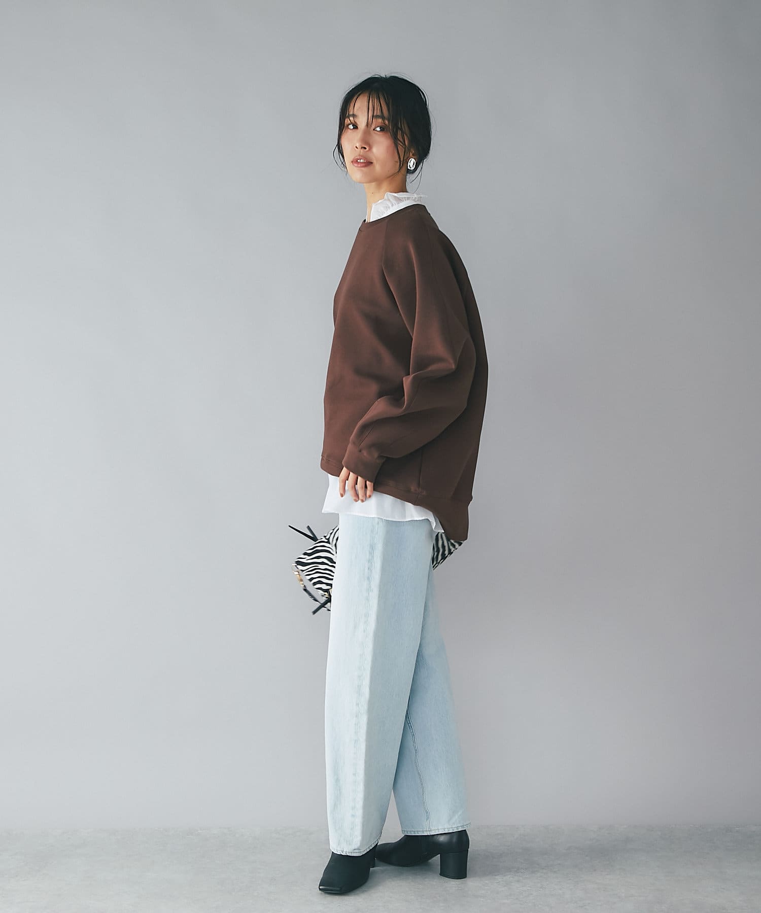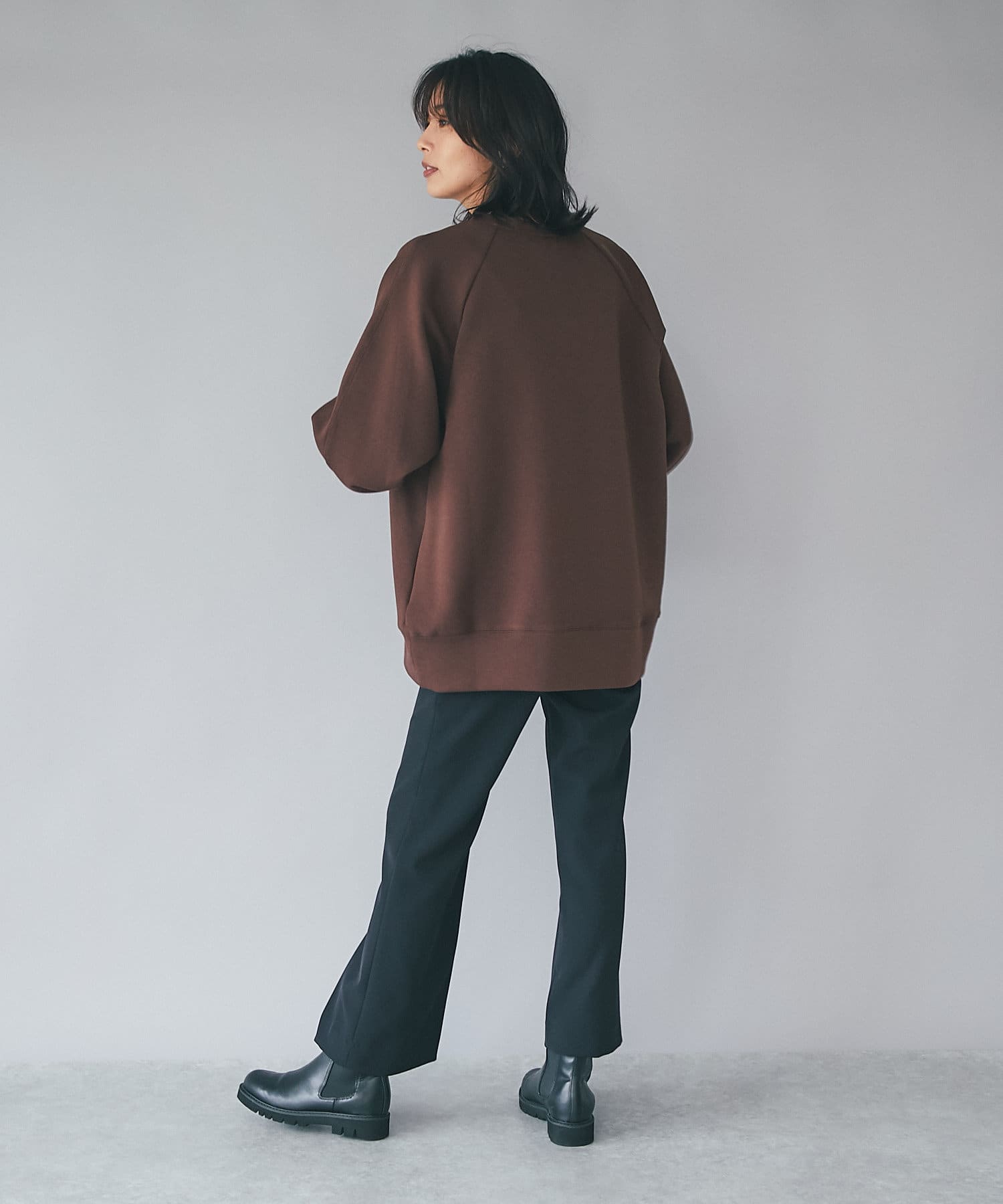 人気のダンボール生地を使用し、軽量で程良い弾力となめらかな肌触りに仕上げたクルーネックスウェット。
