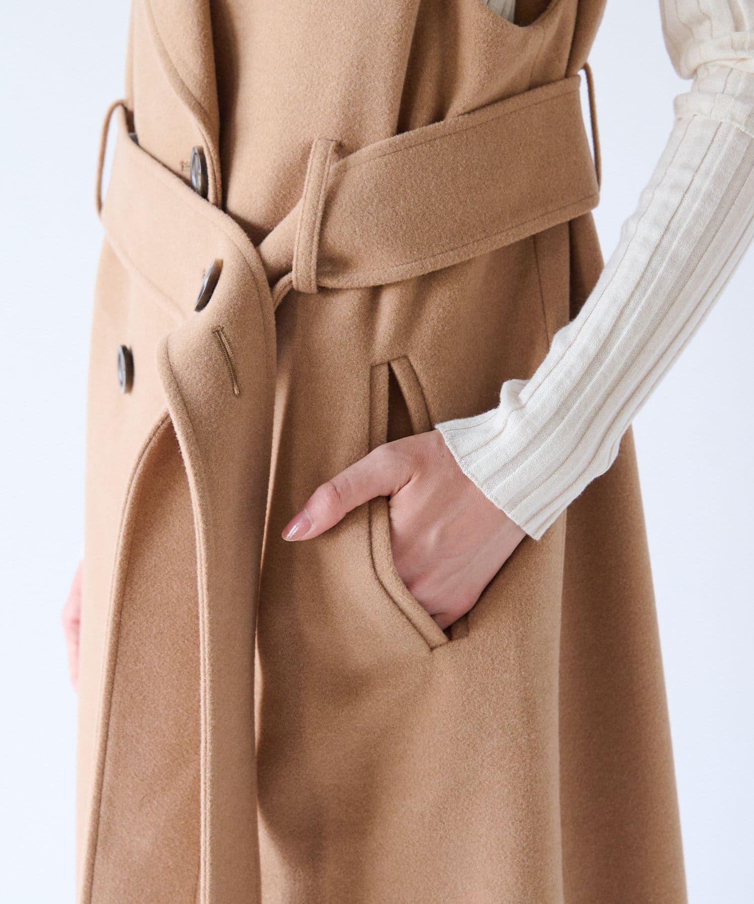 ウエストベルト付きでメリハリを付けたコーディネートにもオススメ。