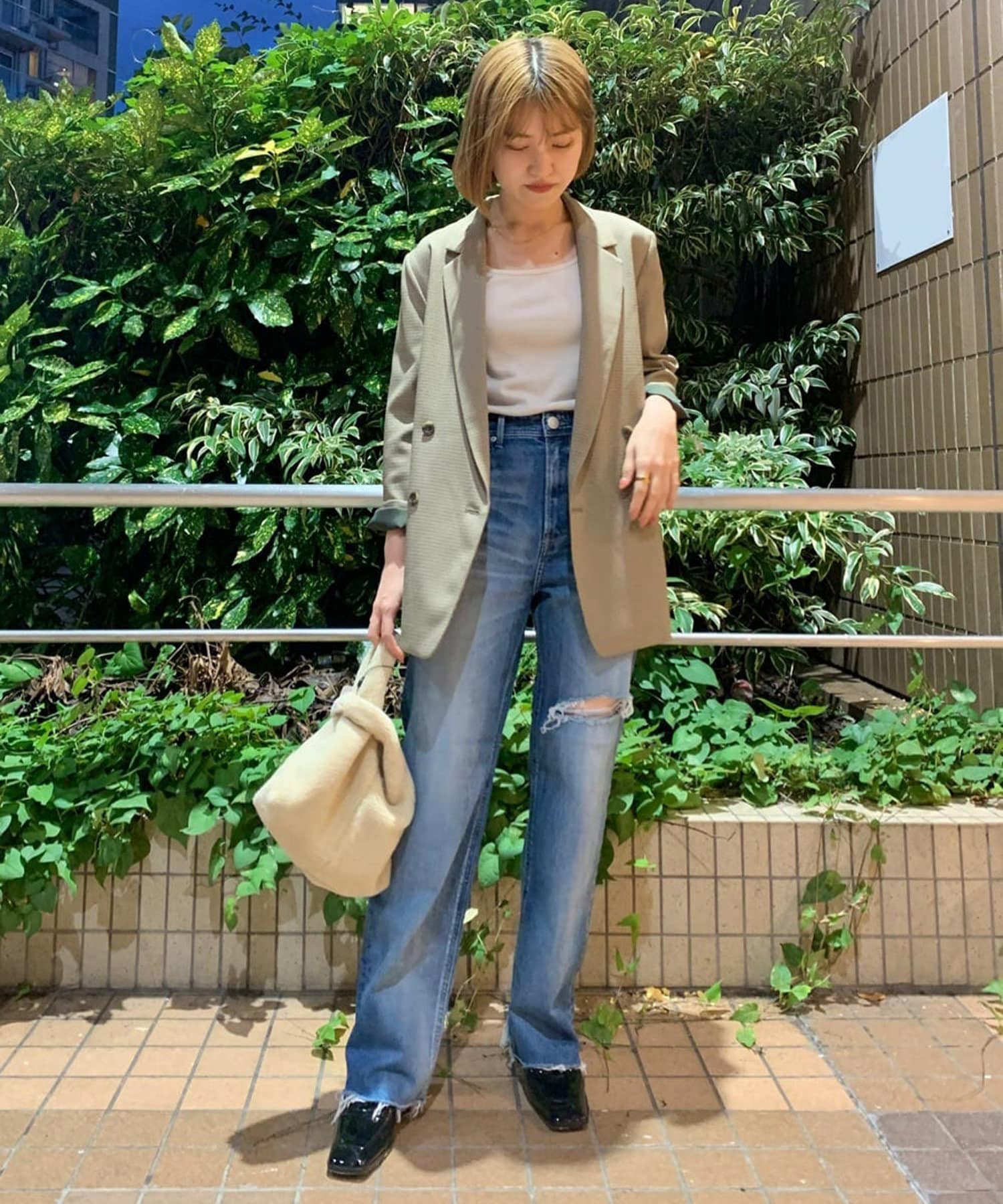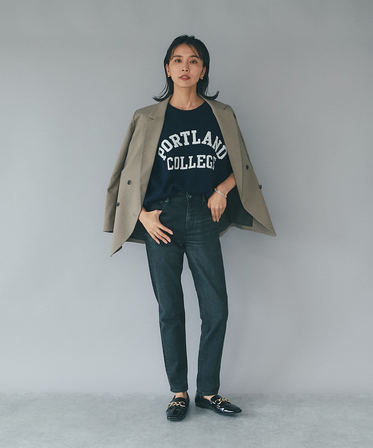 シンプルなデニムのスタイリングもモードでトレンドライクな着こなしを叶えるアイテム。