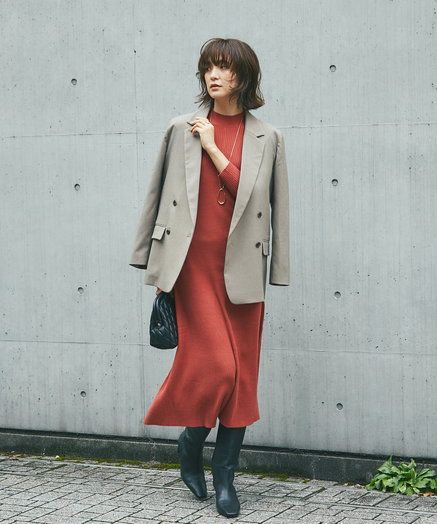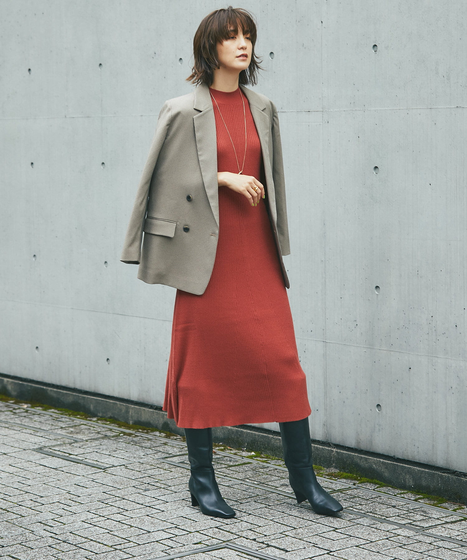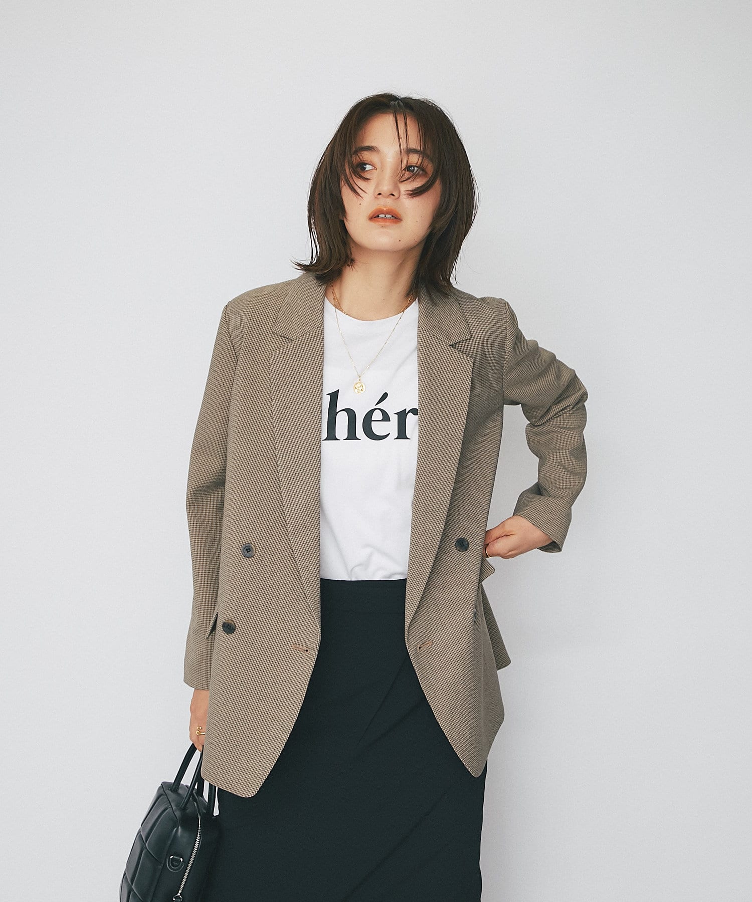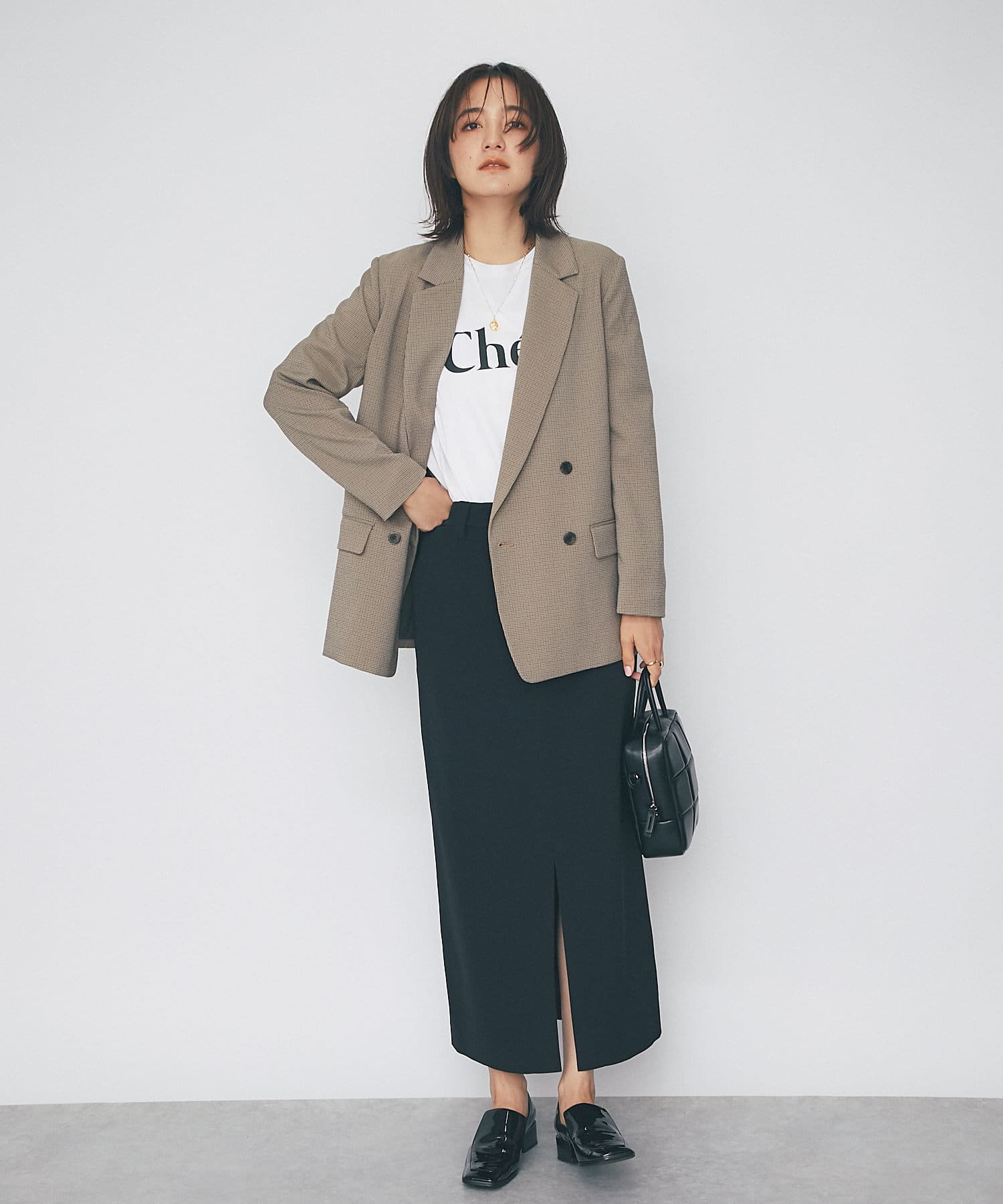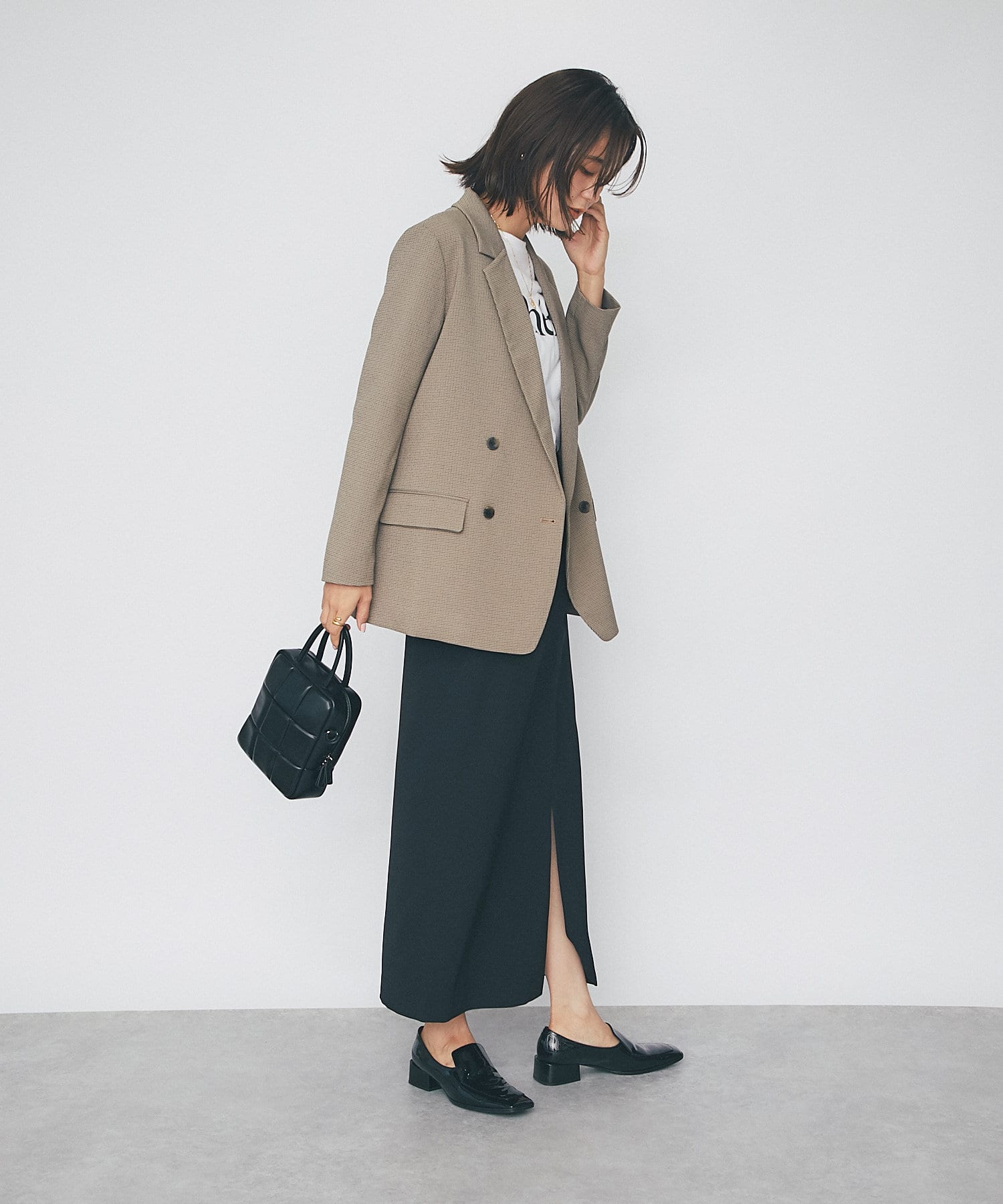 レディライクなタイトスカートなども相性がよく、ガンクラブチェックがコーディネートのアクセントになります。