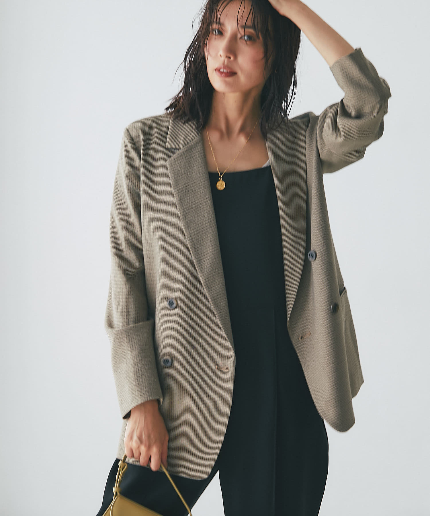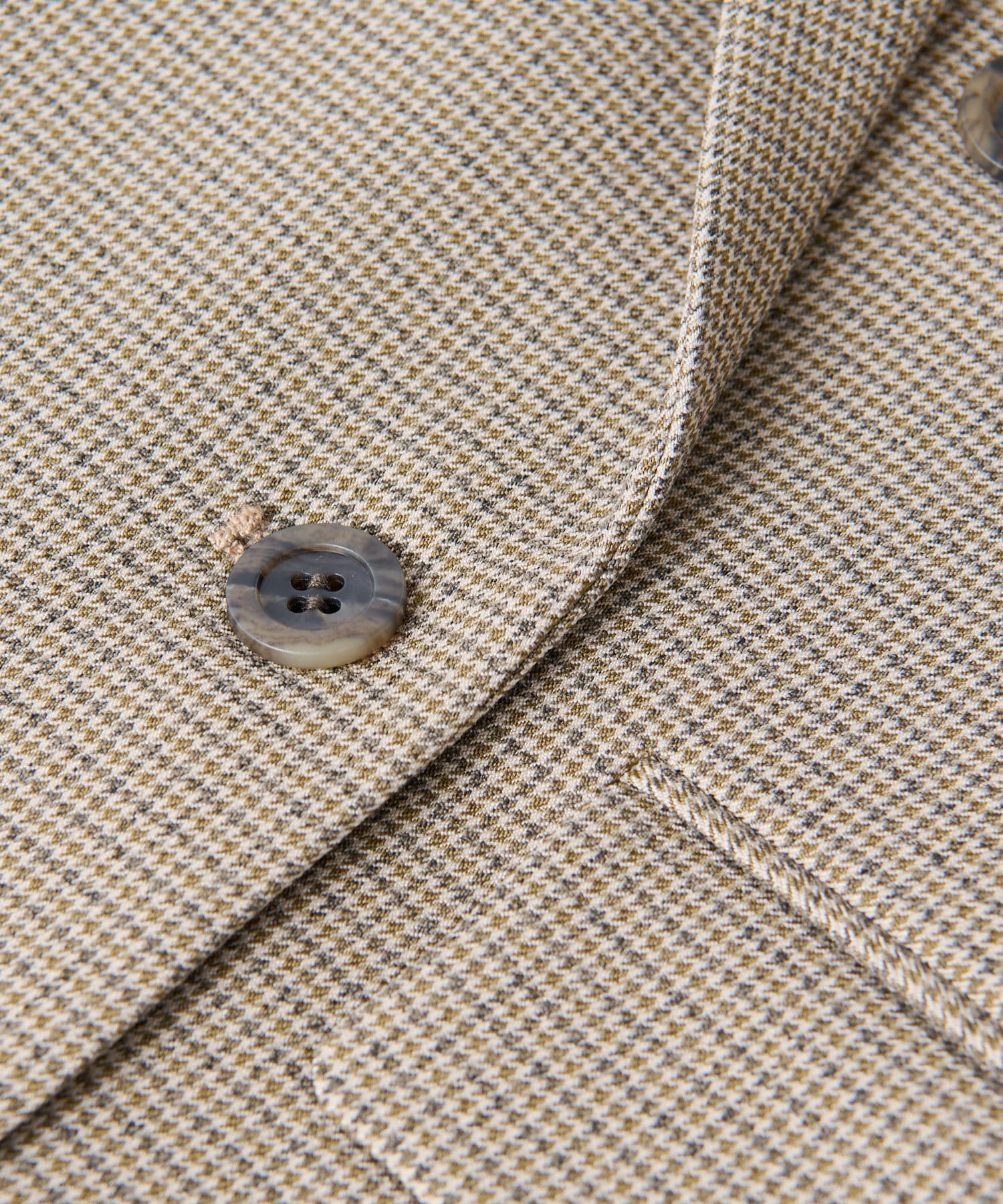 ドライタッチで独特な表情のある素材を使用した総裏仕立て。インナーを選ばずに着用でき、滑りも良いため、長いシーズン着用可能です。