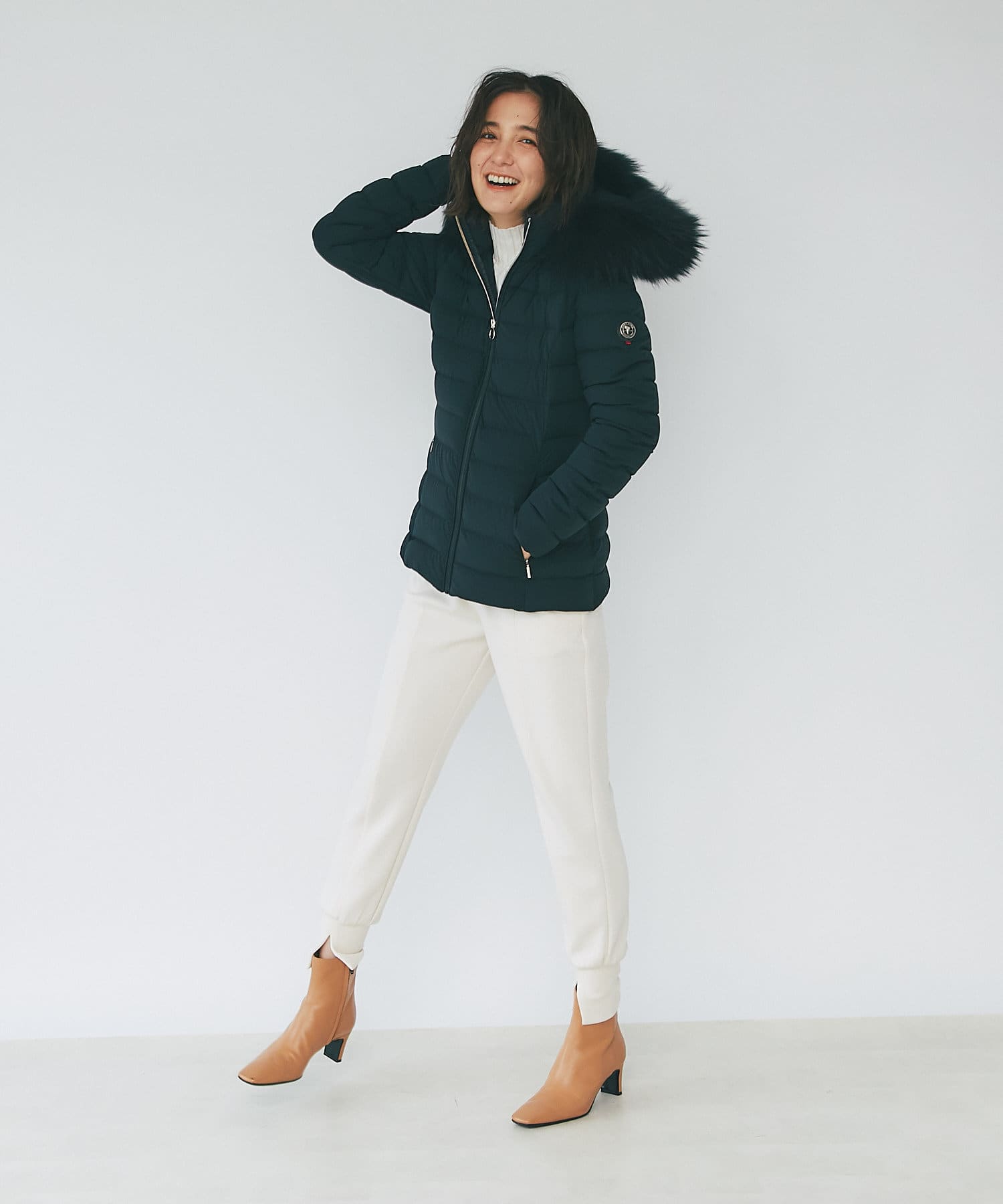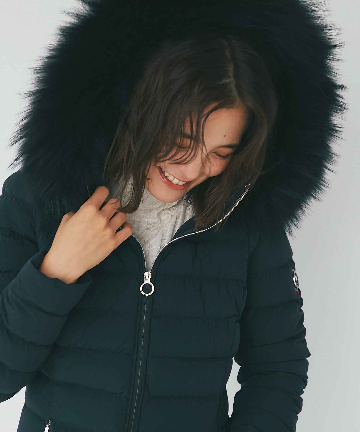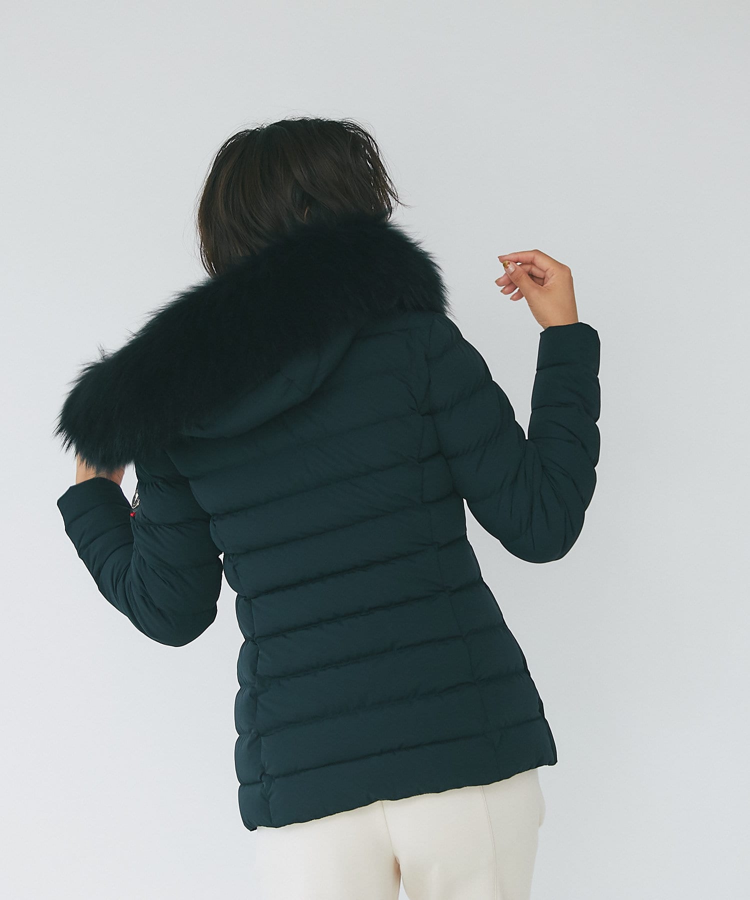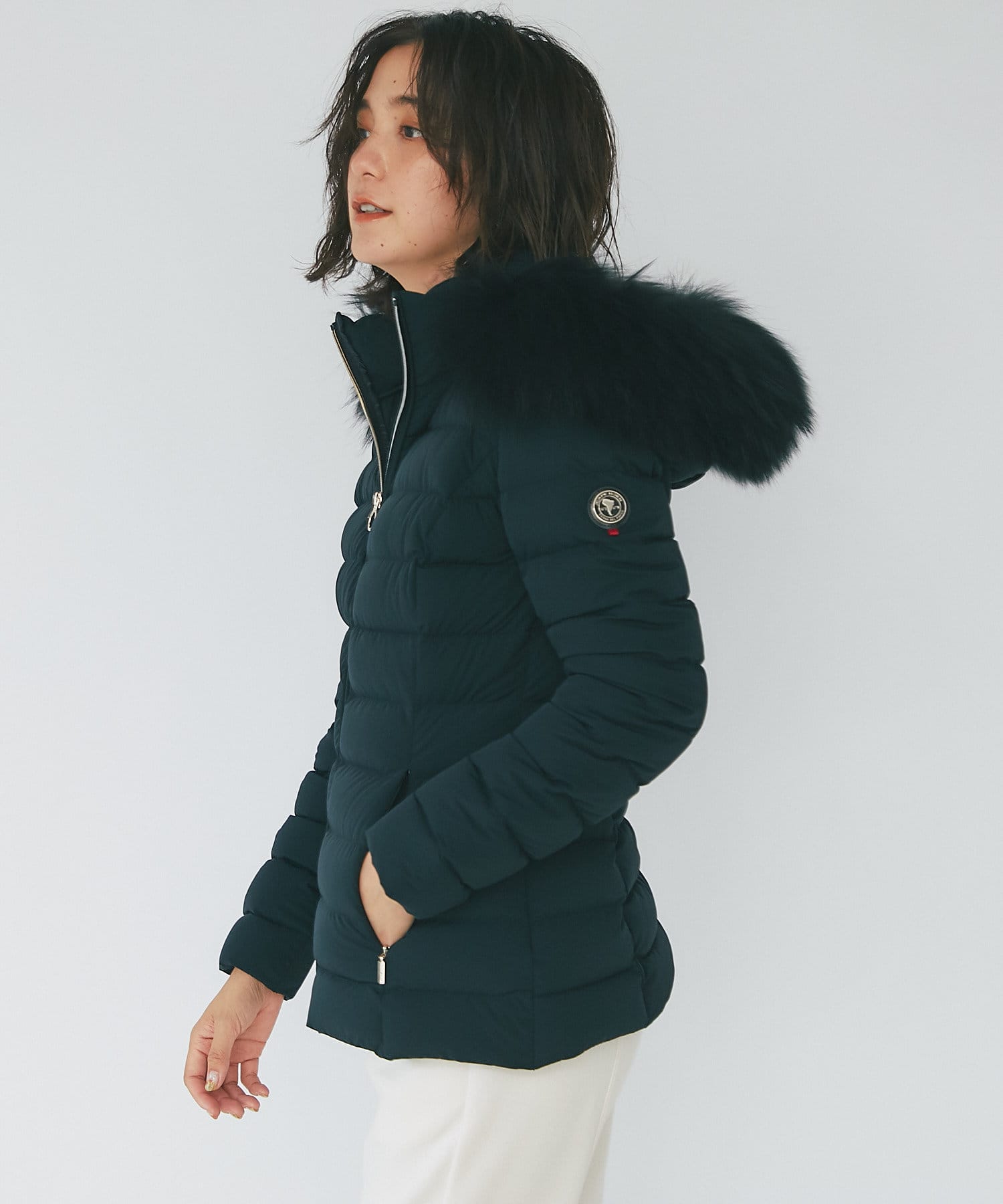 -10°C対応(ダウン800フィルパワー)。ポケット裏地はスーパーマイクロファイバー仕様で、フードとファーは取り外し可能です。