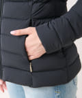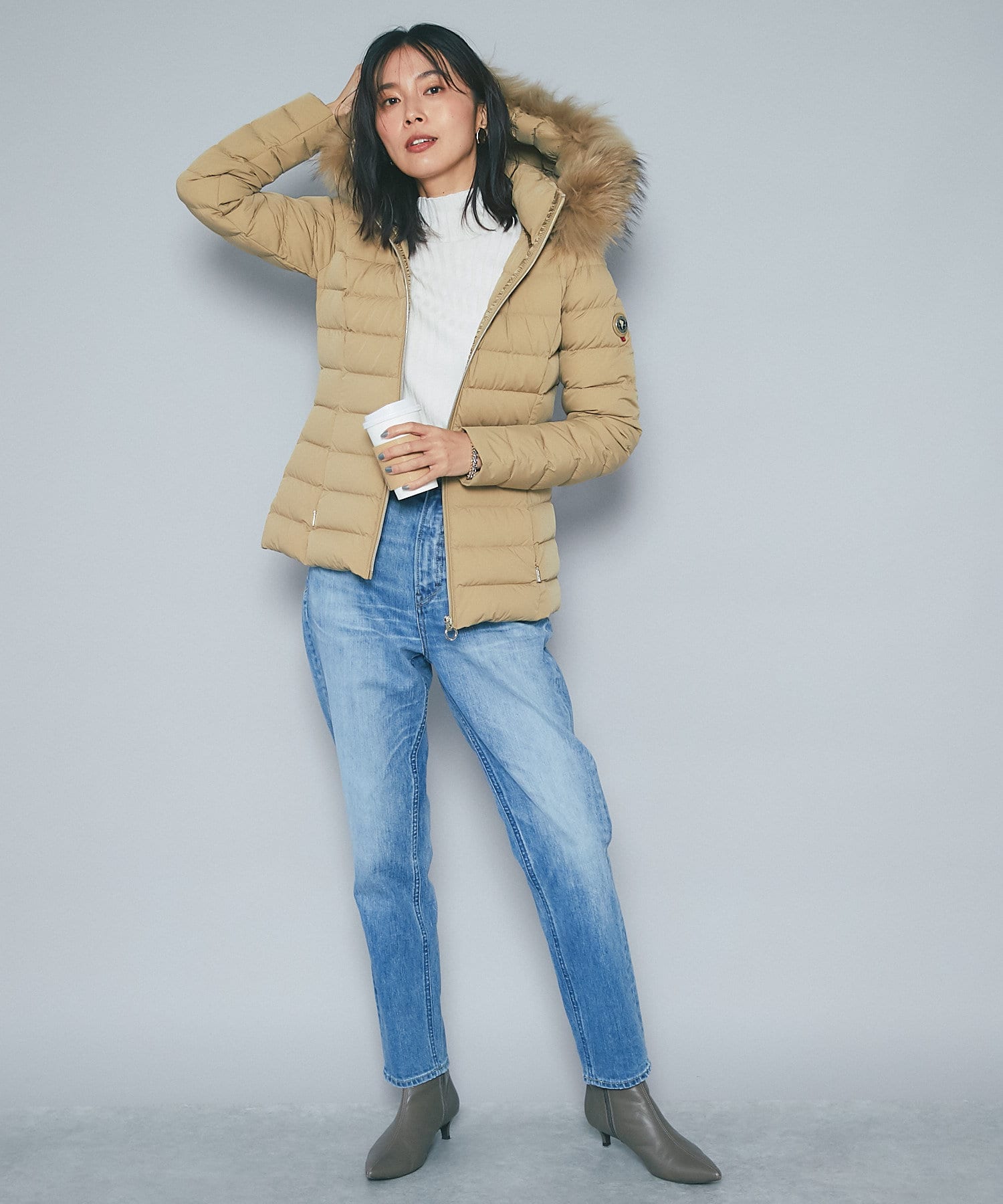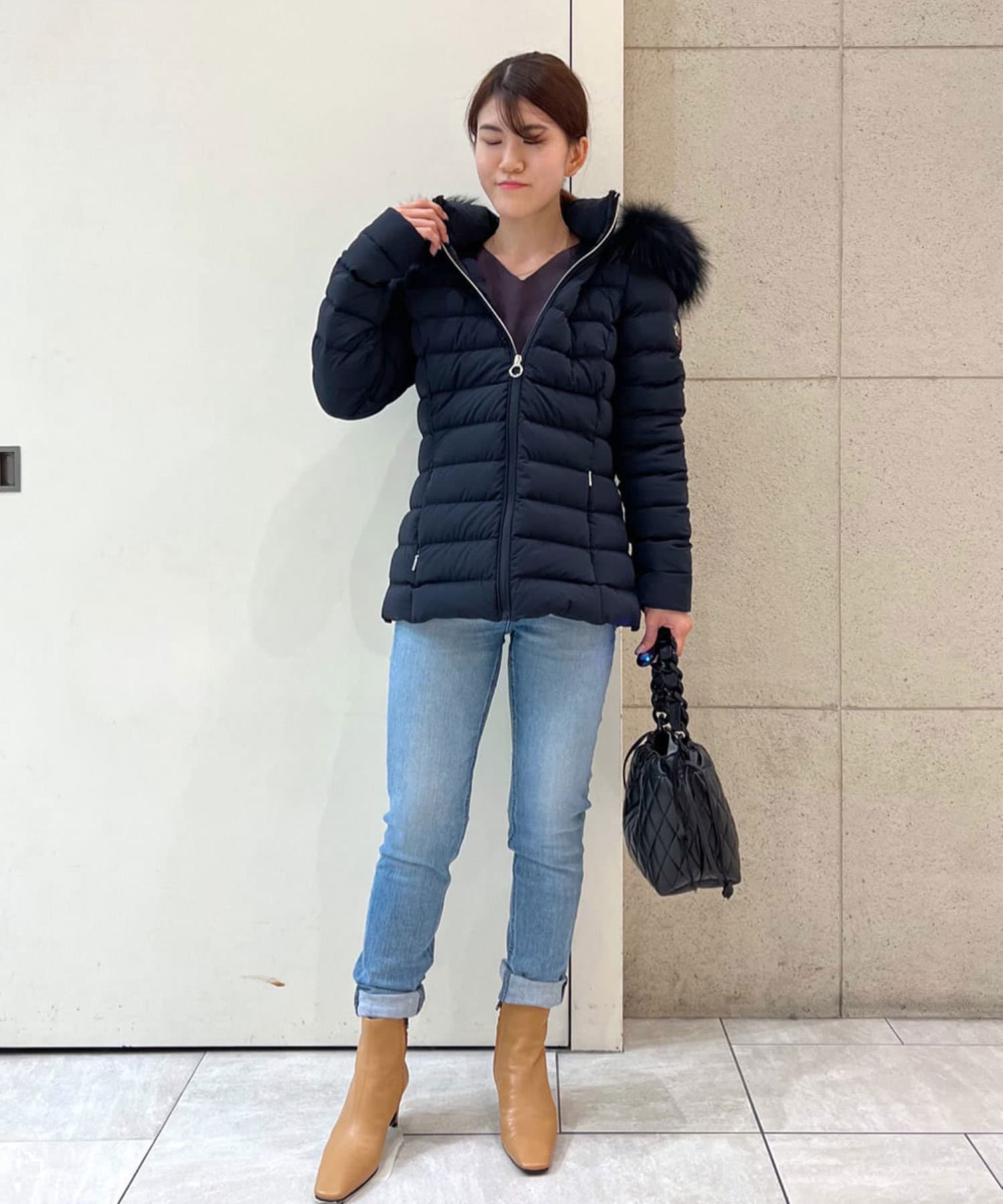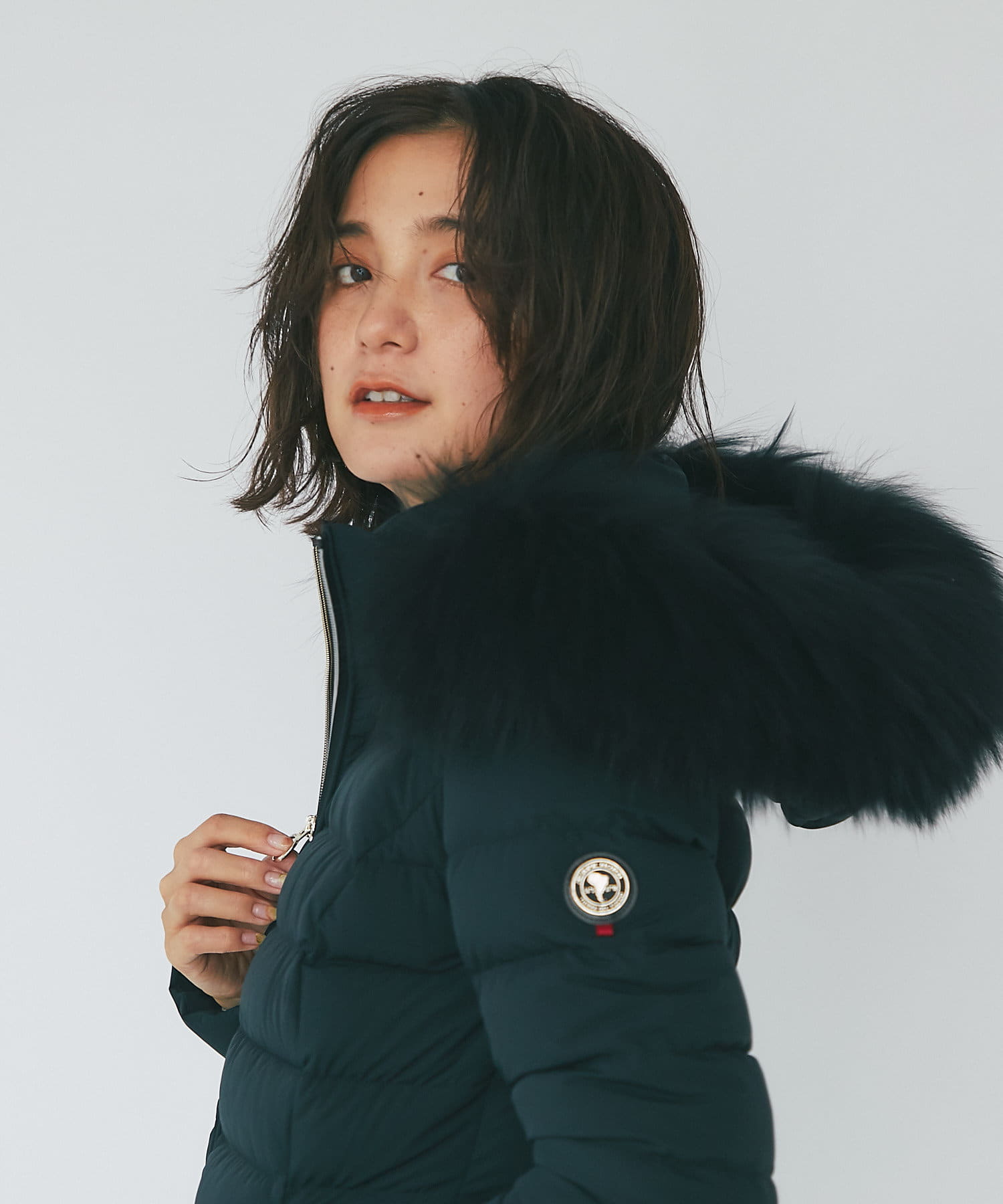 -10°C対応(ダウン800フィルパワー)。ポケット裏地はスーパーマイクロファイバー仕様で、フードとファーは取り外し可能です。