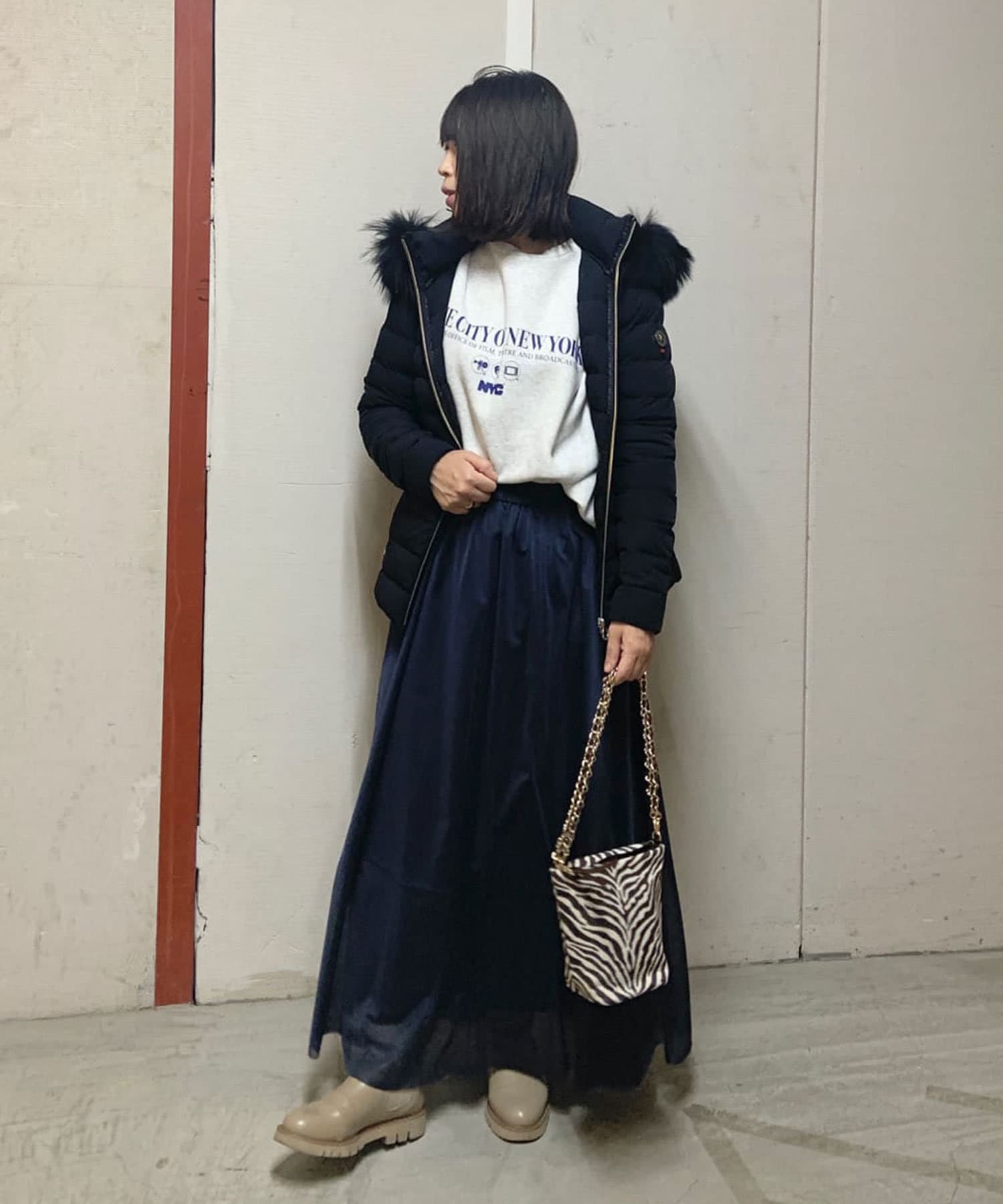 ヒップの半分までカバーされており、ショートながらも十分な暖かさをキープします。