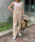 雰囲気のあるコットン素材を使用したトレンドライクな着こなしを楽しめるサロペットパンツ。