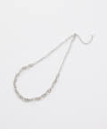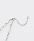 首の後ろに来るチェーンがシンプルなチェーンに切り替わっており、シンプルなスタイリングにプラスして頂くだけでスタイリングのアクセントになり◎