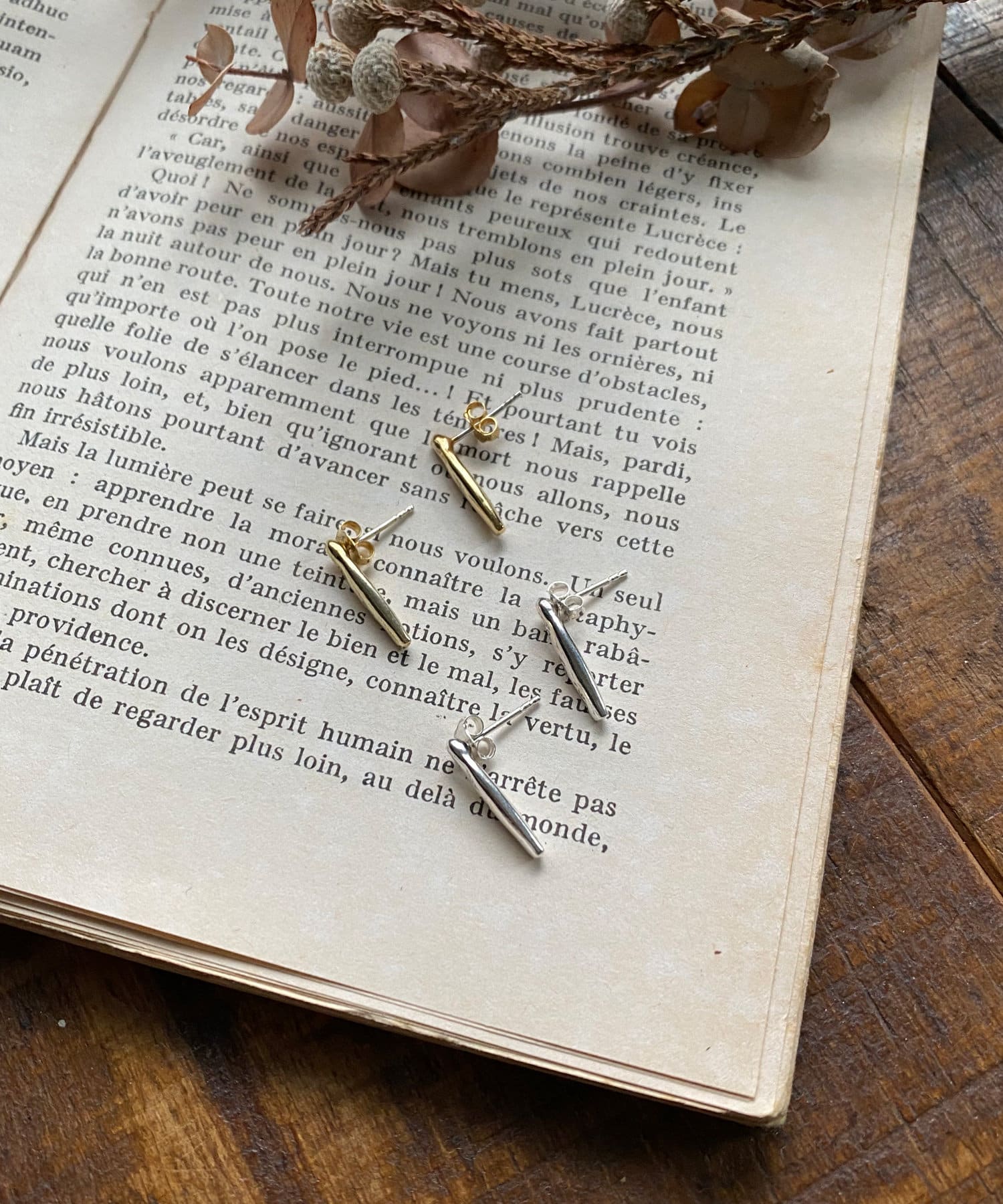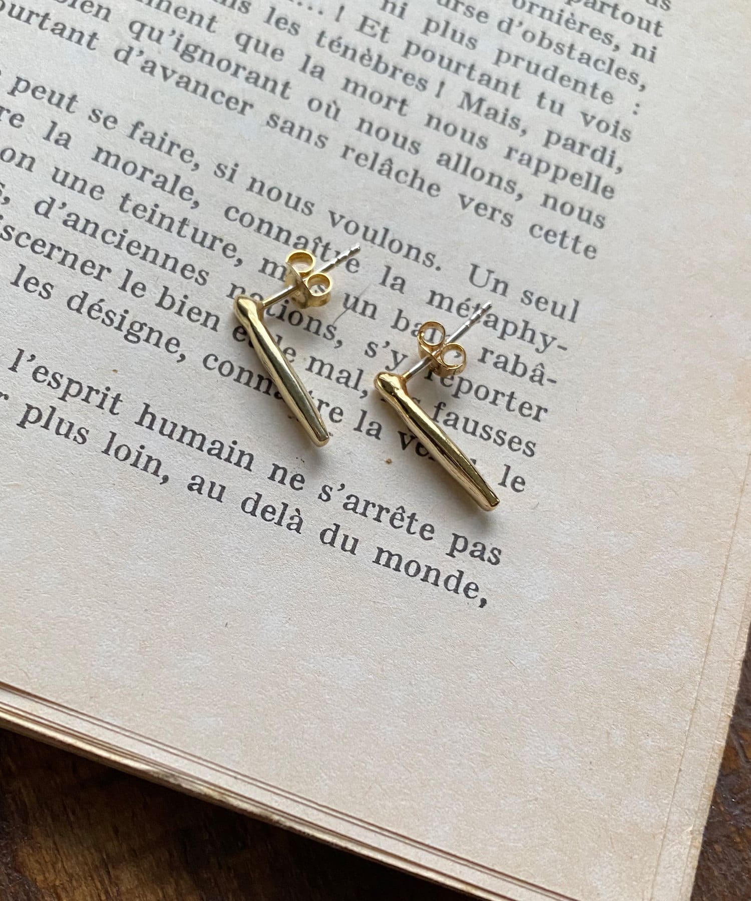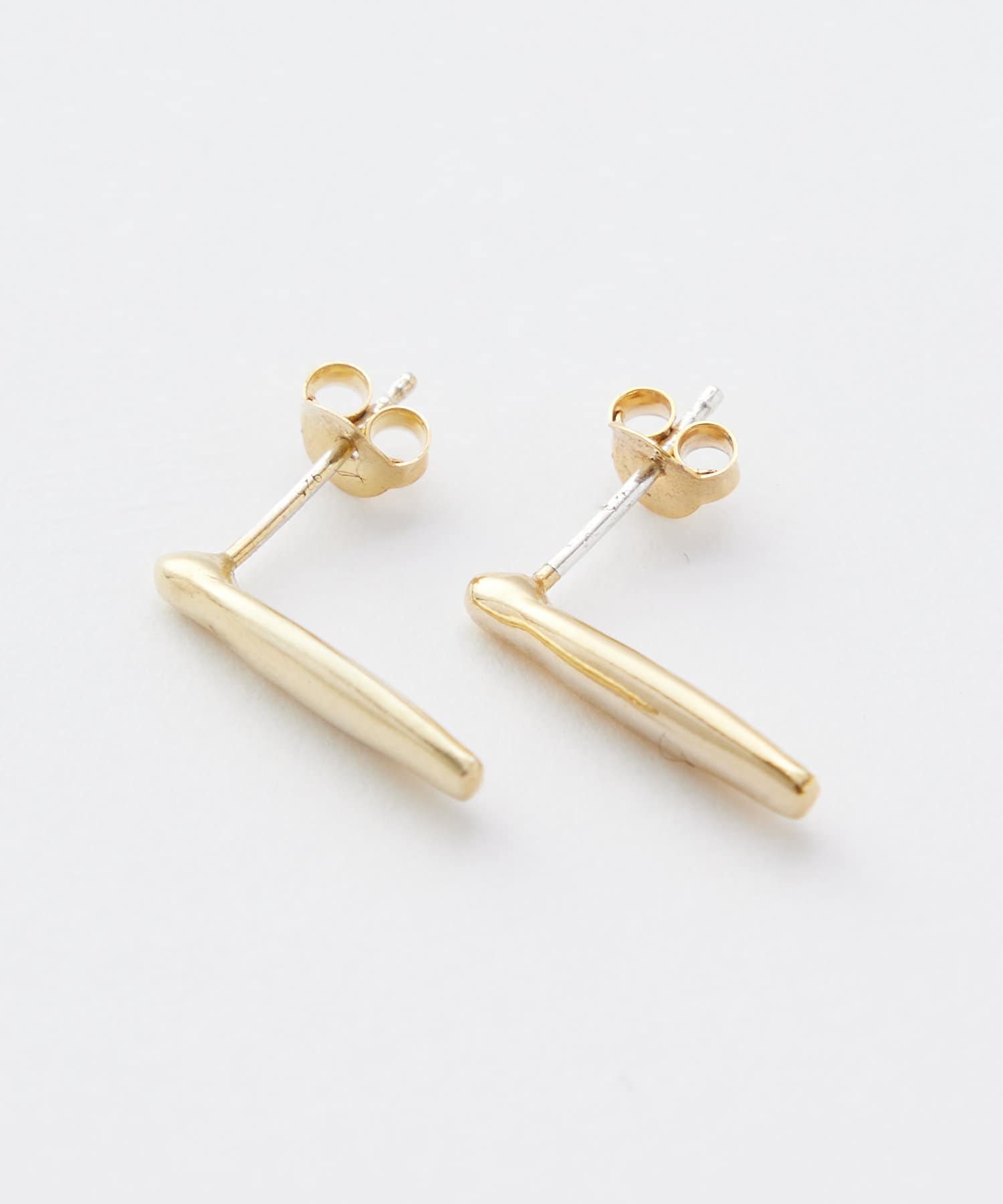 • 歪な表面感のバーモチーフが顔周りをスッキリとした印象に演出してくれるシンプルピアス