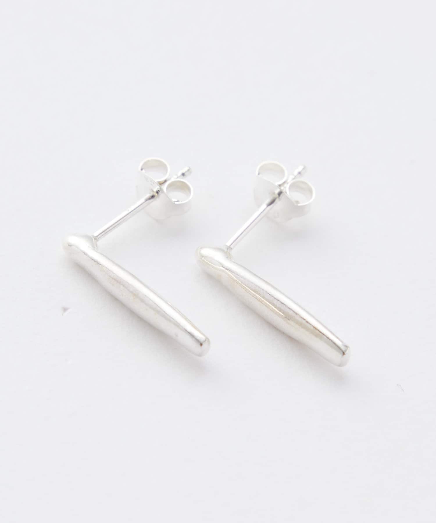 歪な表面感のバーモチーフが顔周りをスッキリとした印象に演出してくれるシンプルピアス。