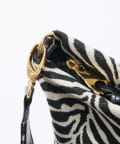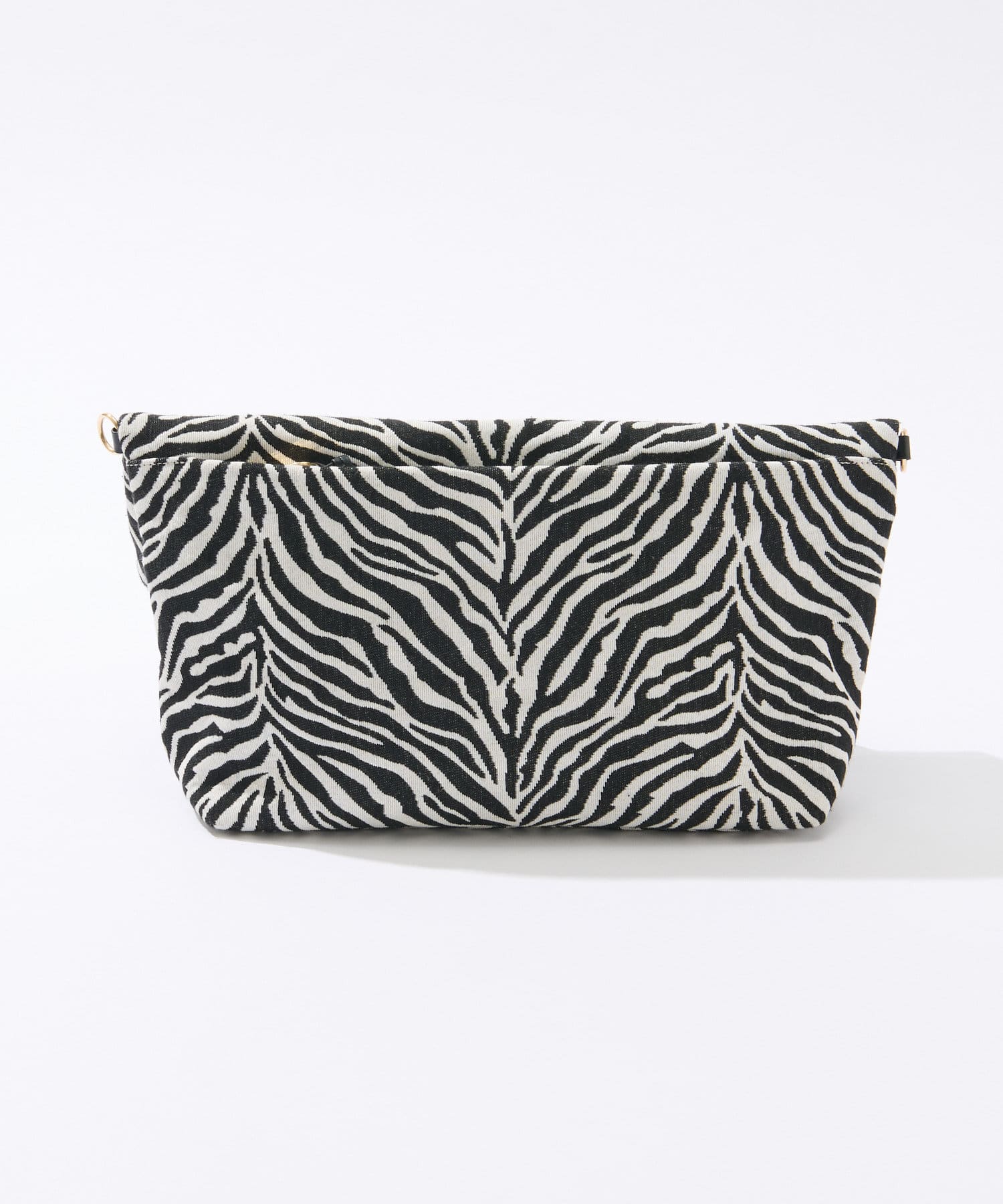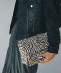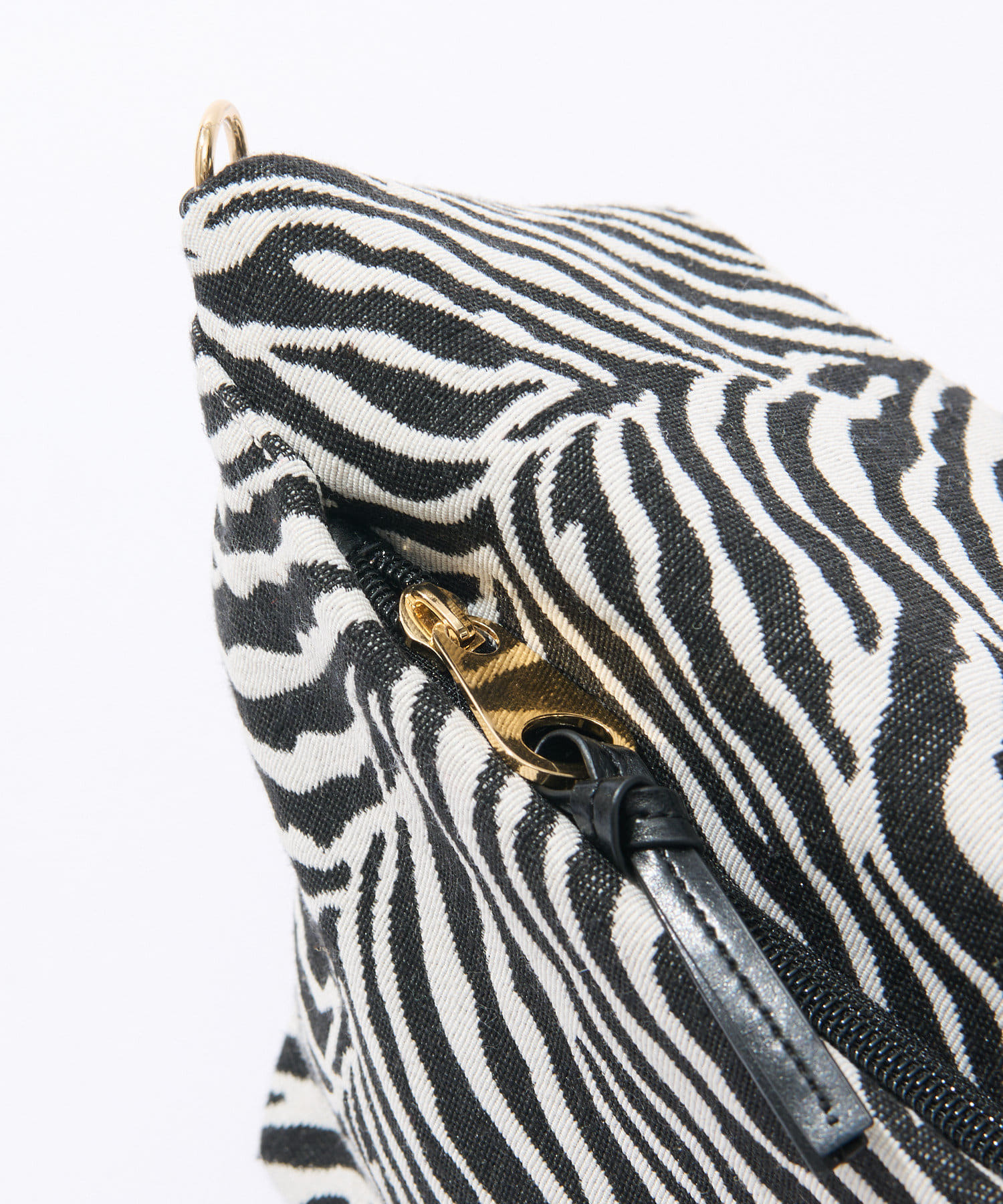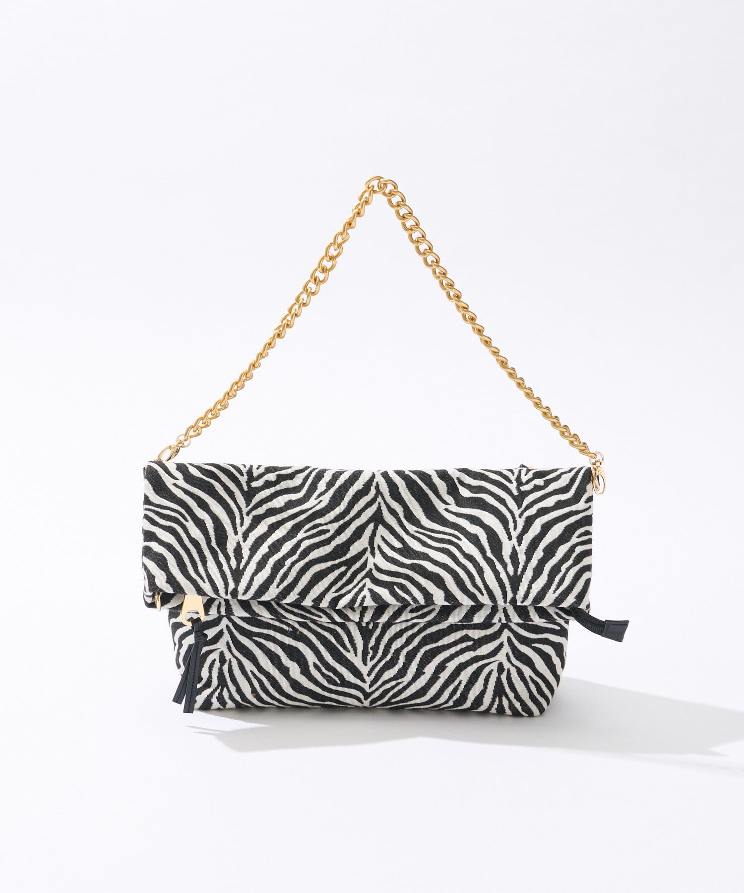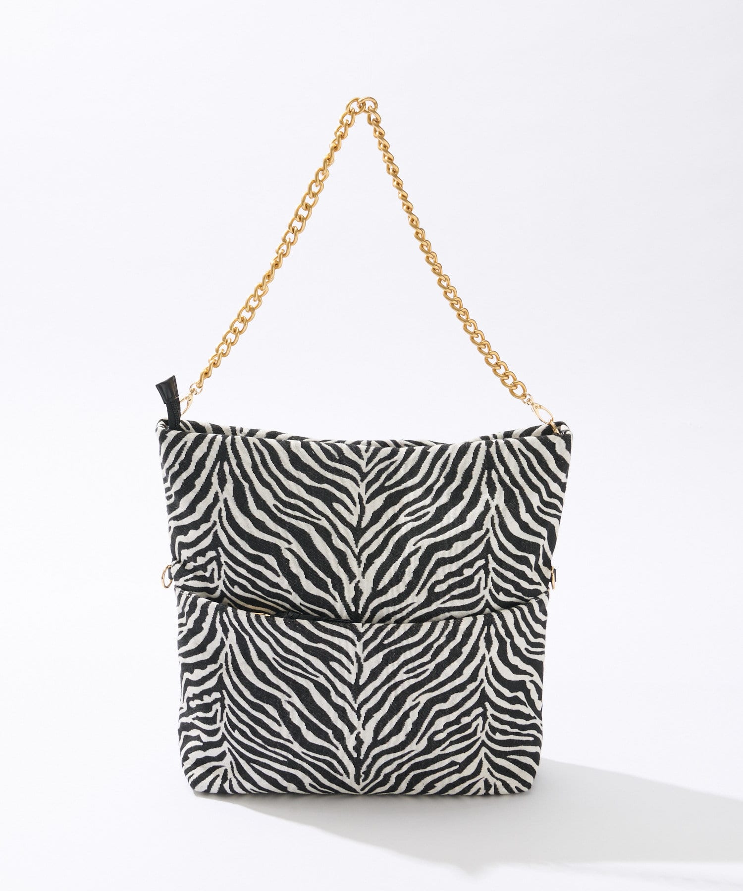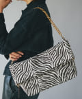 キャンバス地のゼブラ柄とゴールドチェーンの金具が目を惹く主役級アイテムです。