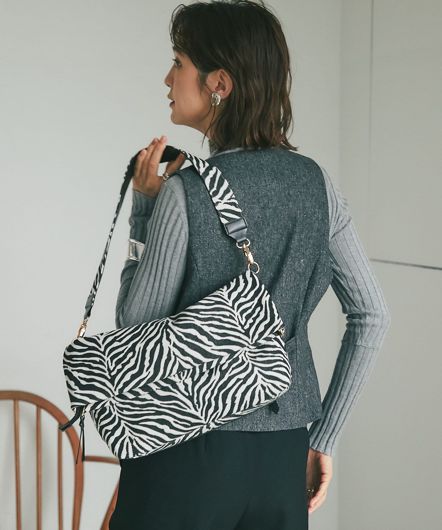 【小山田早織さん着用】4WAYゼブラジャガードバッグ