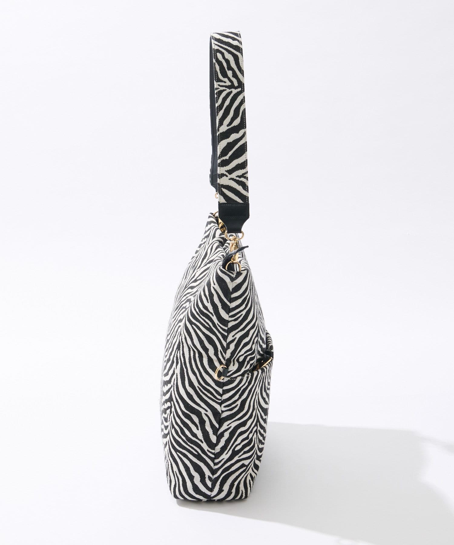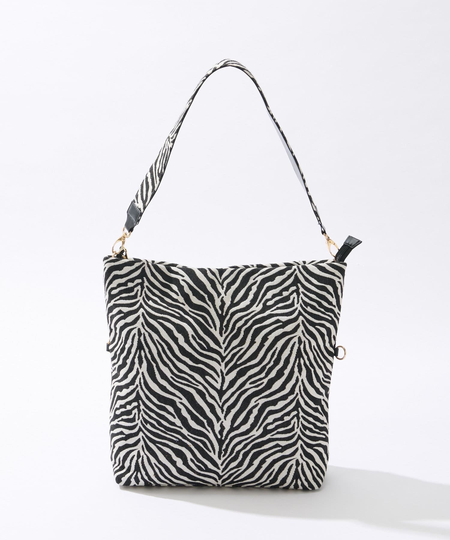 様々な持ち方で楽しめる遊び心のあるゼブラ柄トートバッグ。
